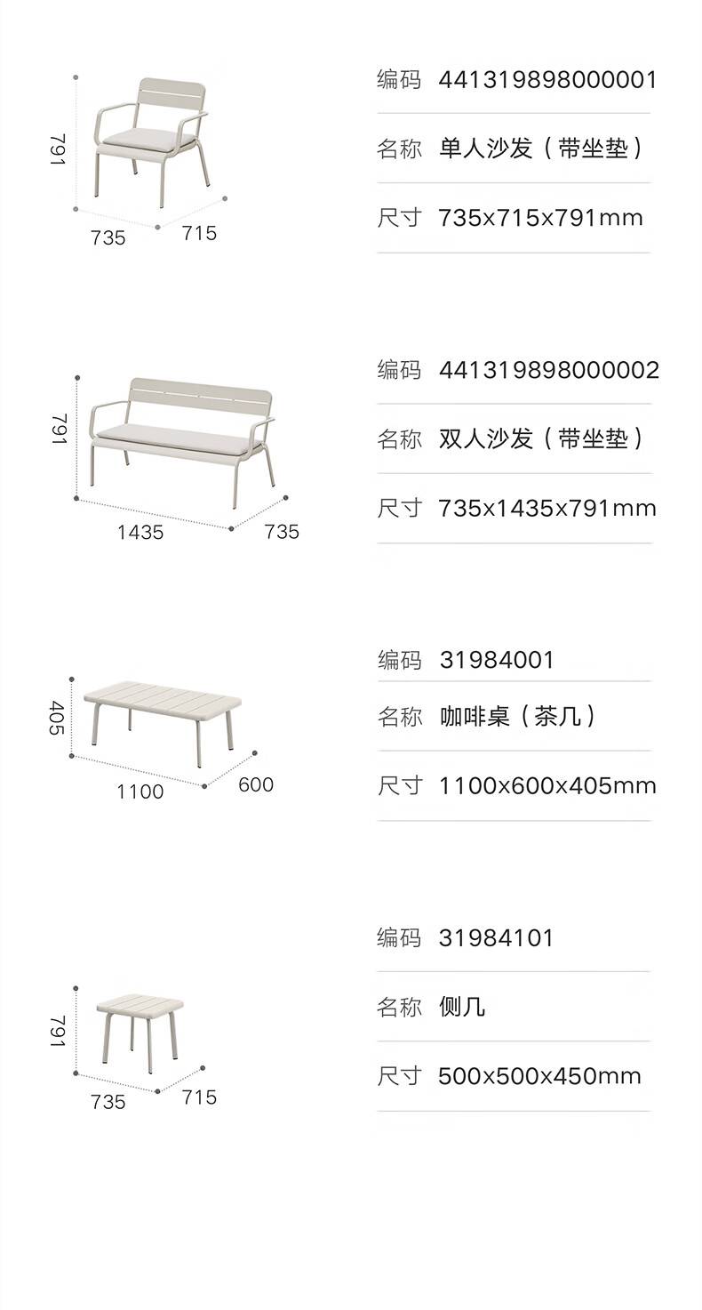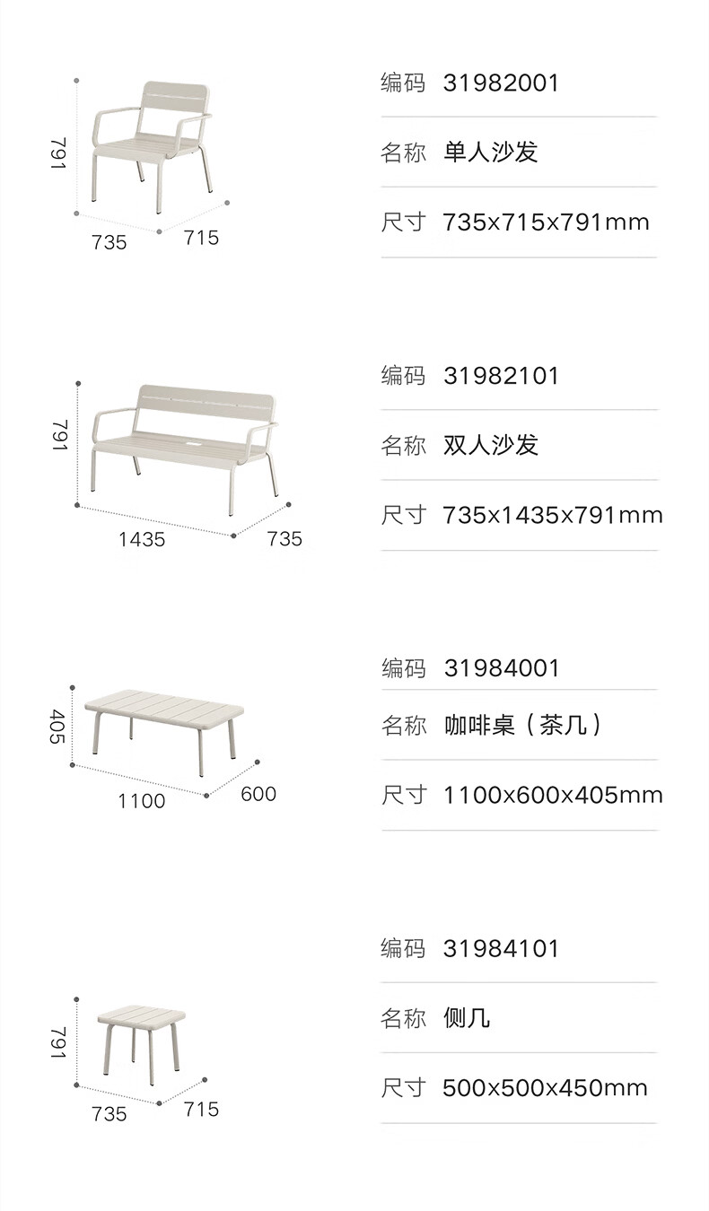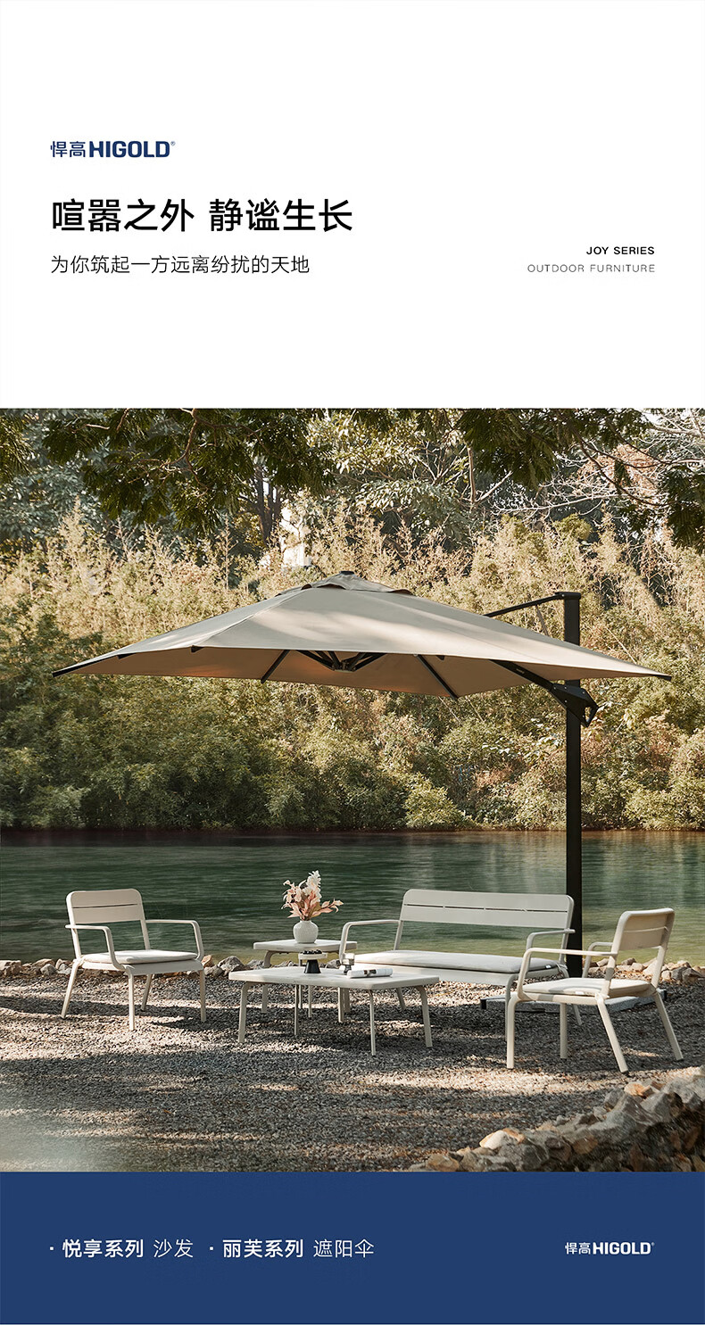 悍高(HIGOLD)户外桌椅室外别墅阳台花园庭院休闲喝茶餐桌椅组合铝合金防雨防晒 1+1+2+茶几+侧几
