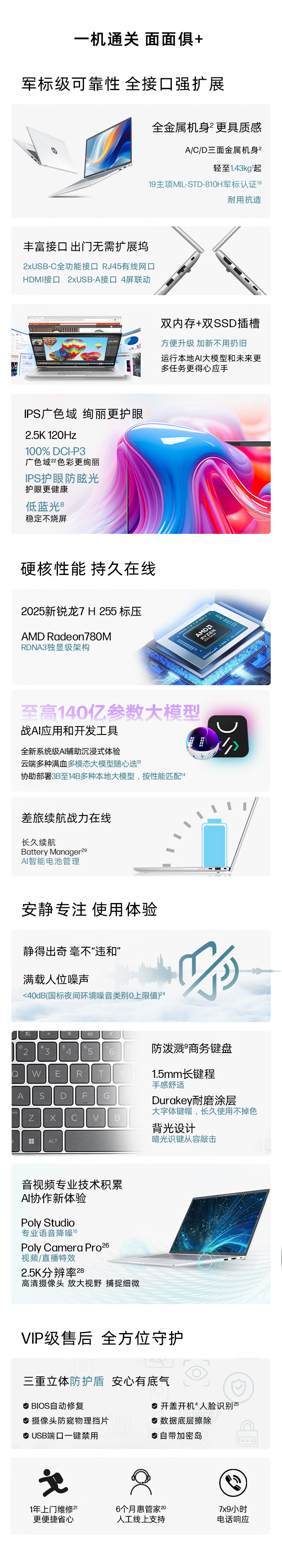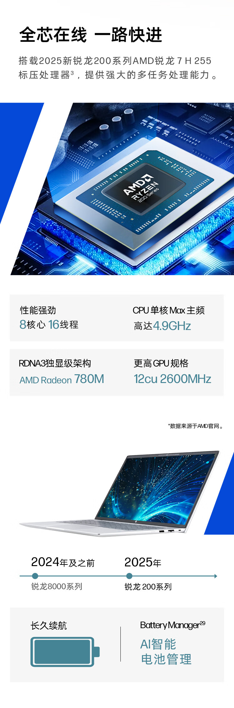 惠普(HP)战66 16英寸2025轻薄办公笔记本电脑 标压锐龙7 H 255 24G 1T 2.5K屏 1年上门【国家补贴】