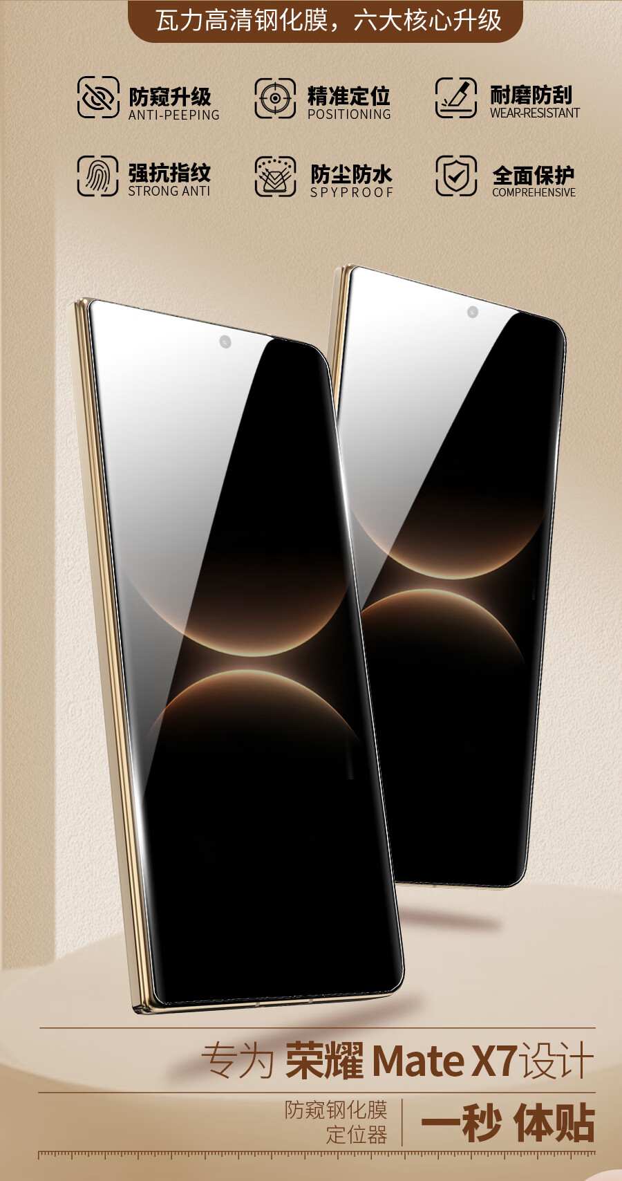 瓦力【全胶防窥3d热弯膜】适用华为matex7全胶钢化膜Matex7典藏版手机膜自营外屏防偷窥抗指纹无尘舱