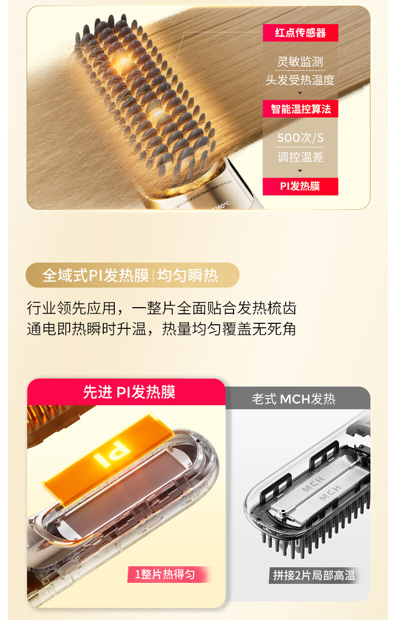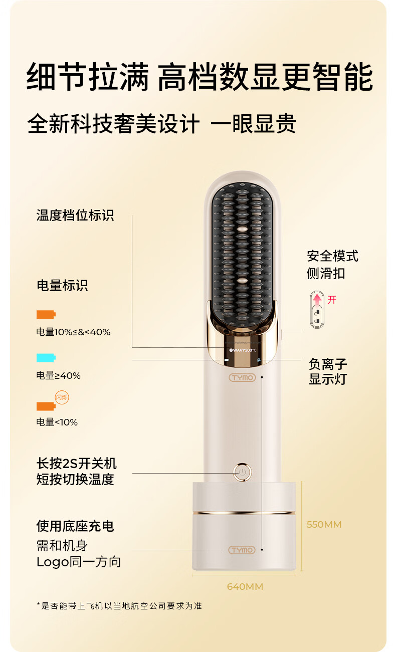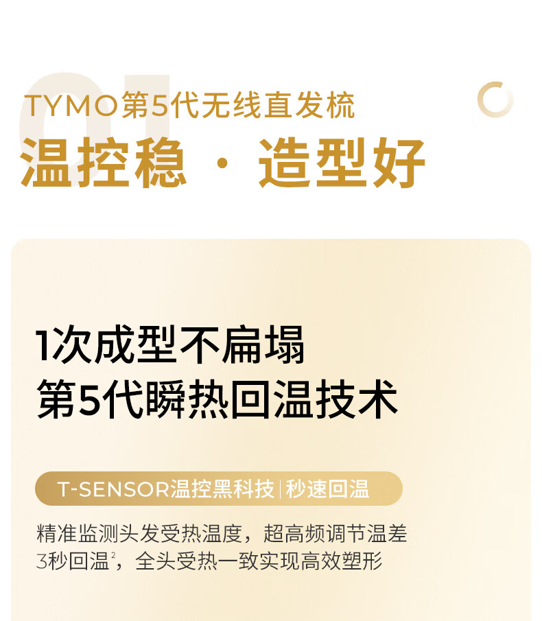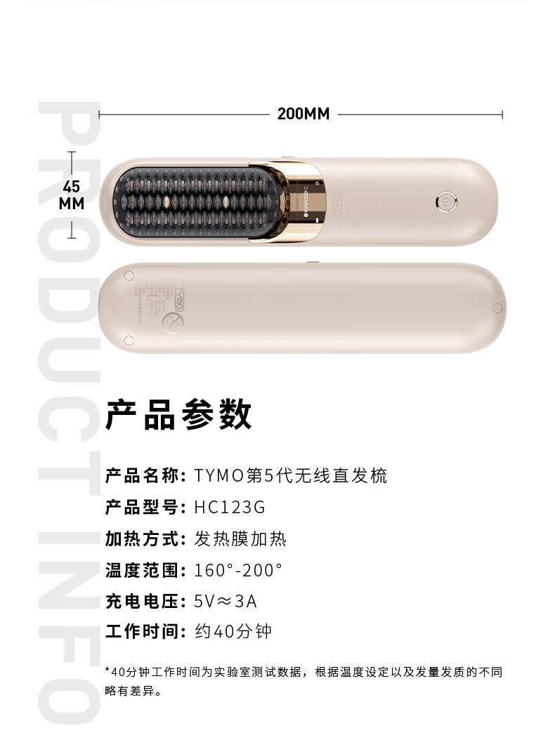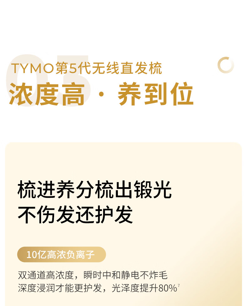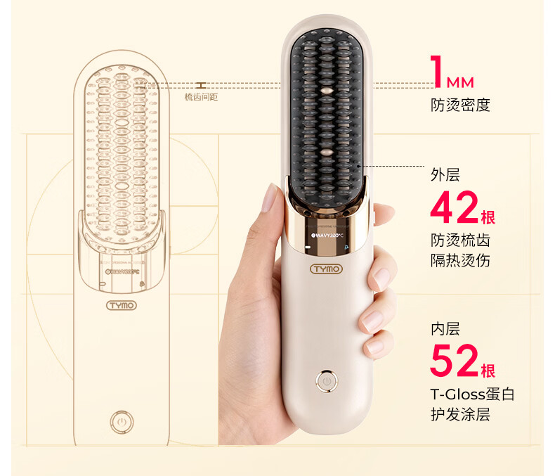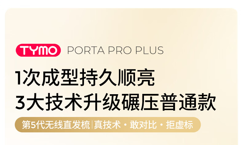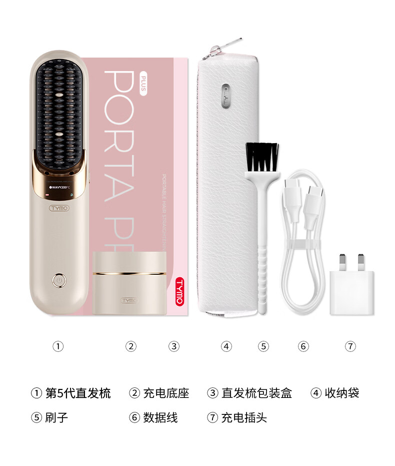 TYMO第5代无线直发梳直板夹10亿负离子不伤发恒温续航更持久一梳即顺高颅顶改善毛躁 情人节礼物送女生