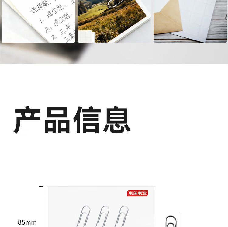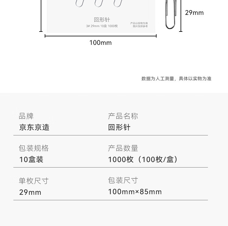 京东京造3#金属回形针别针 29mm镀镍防锈曲别针办公室文具办公用品 10盒装100枚/盒