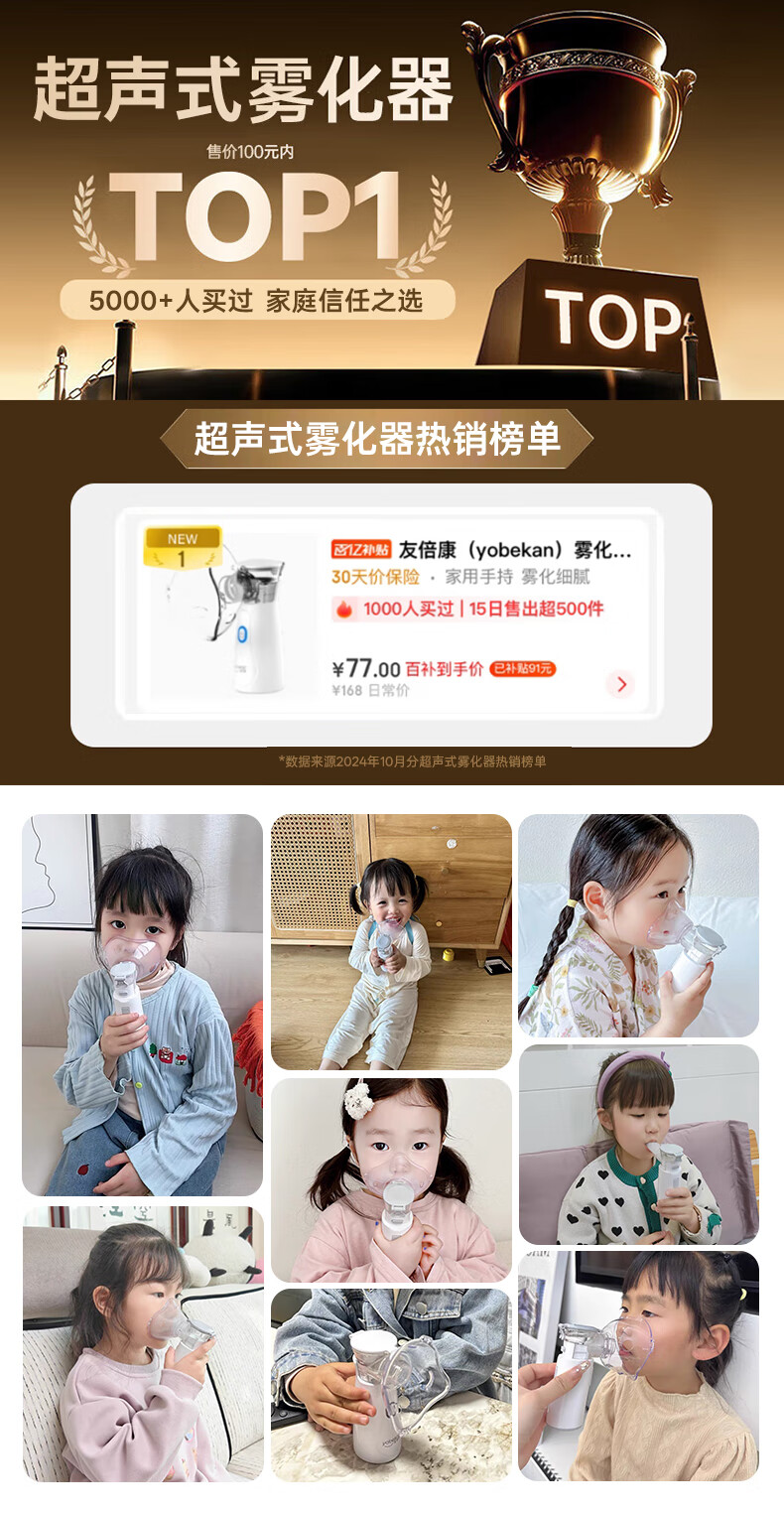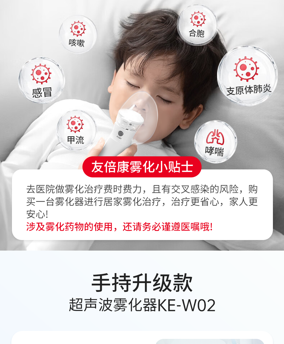 友倍康(yobekan)雾化器家用手持雾化机成人儿童医用雾化仪便携雾化小型轻音KE-W02 【TOP热销】医用轻音便携热卖款