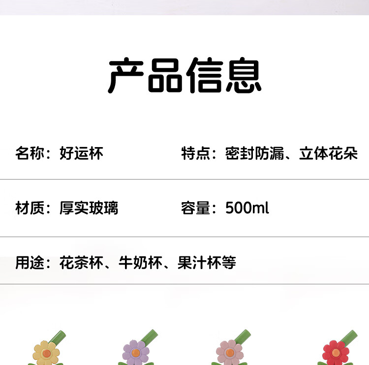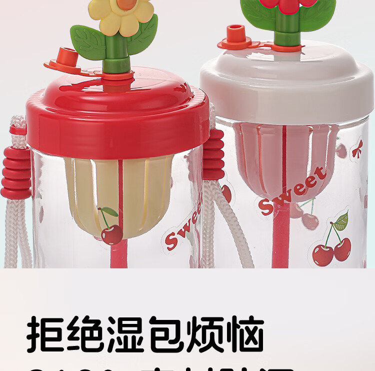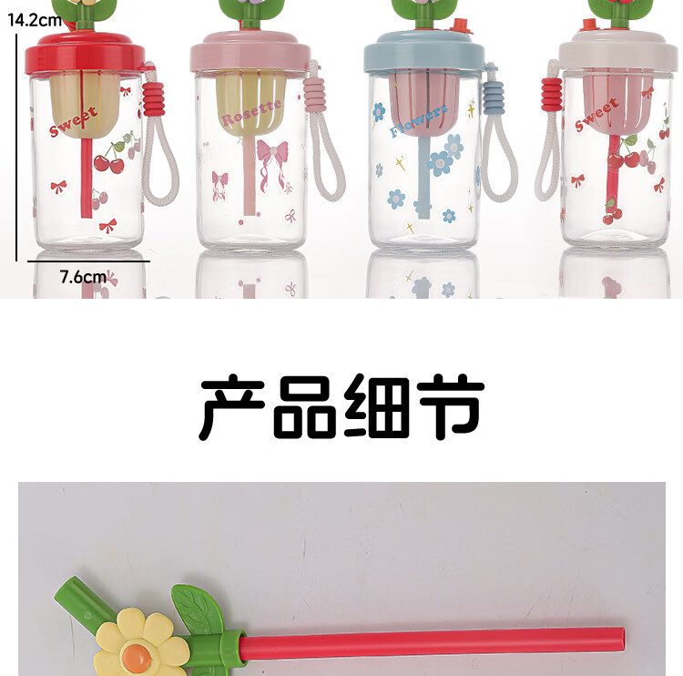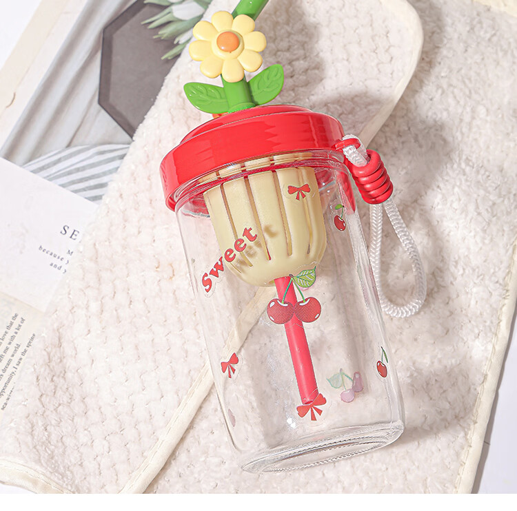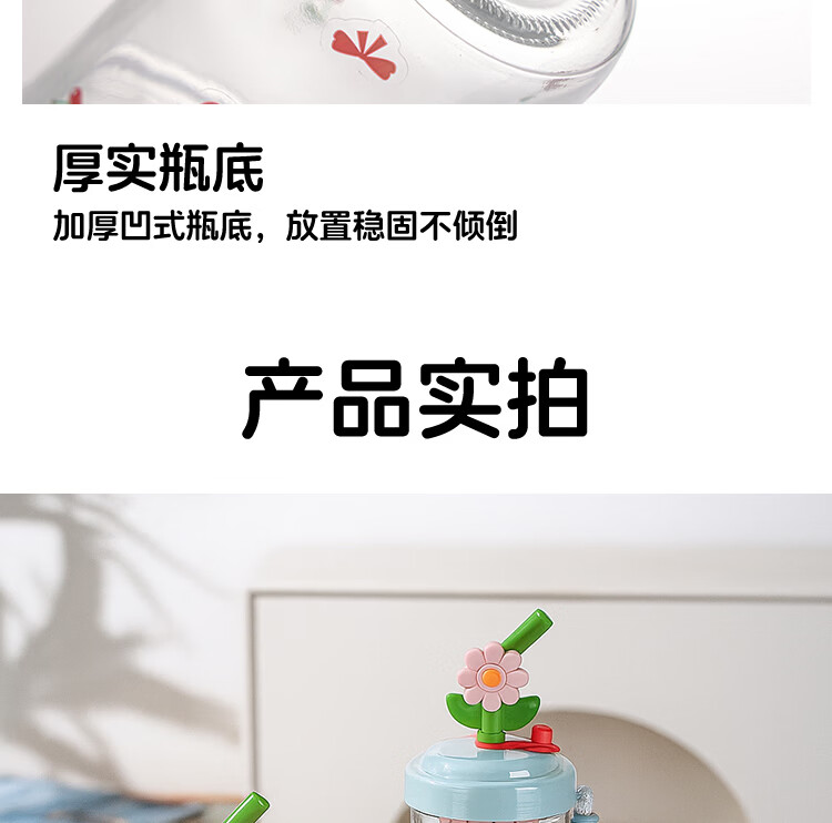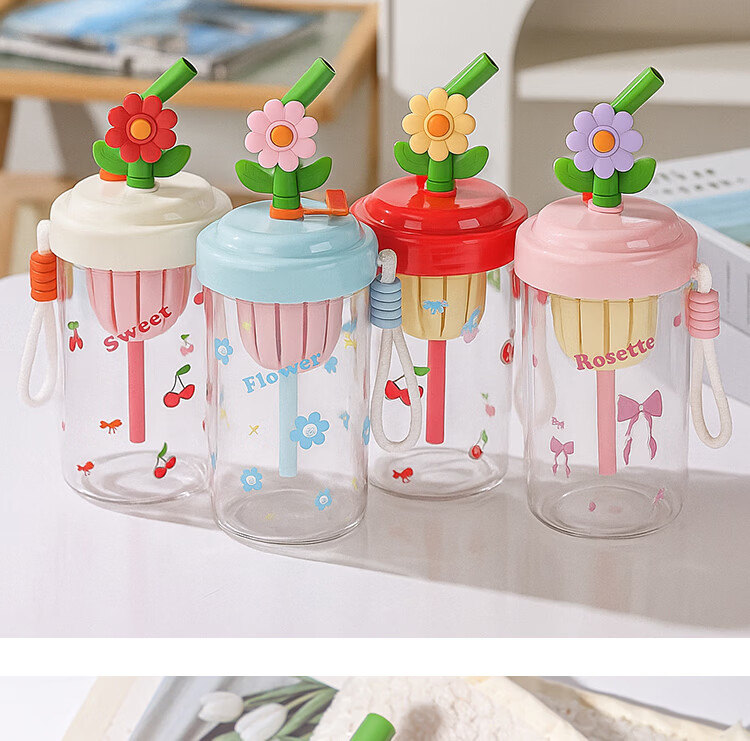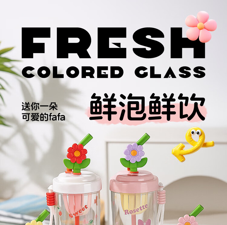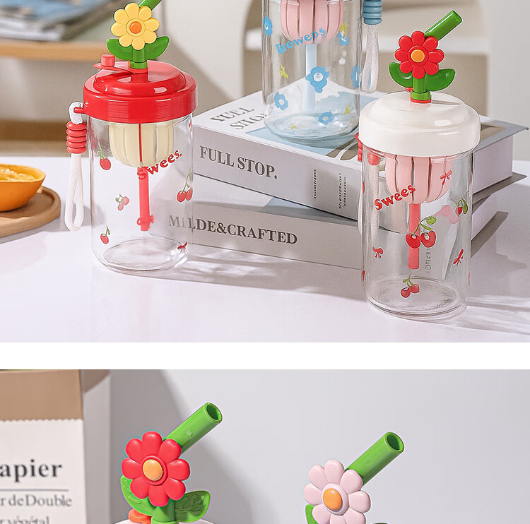 网红吸管杯便携式茶水分离杯带提绳玻璃杯高档花茶杯新款果汁杯子 蓝色杯子送DIY贴纸 单只装500ml