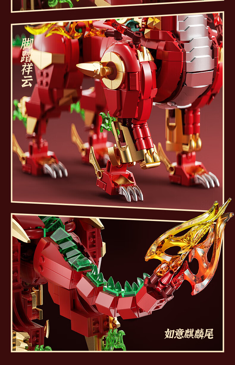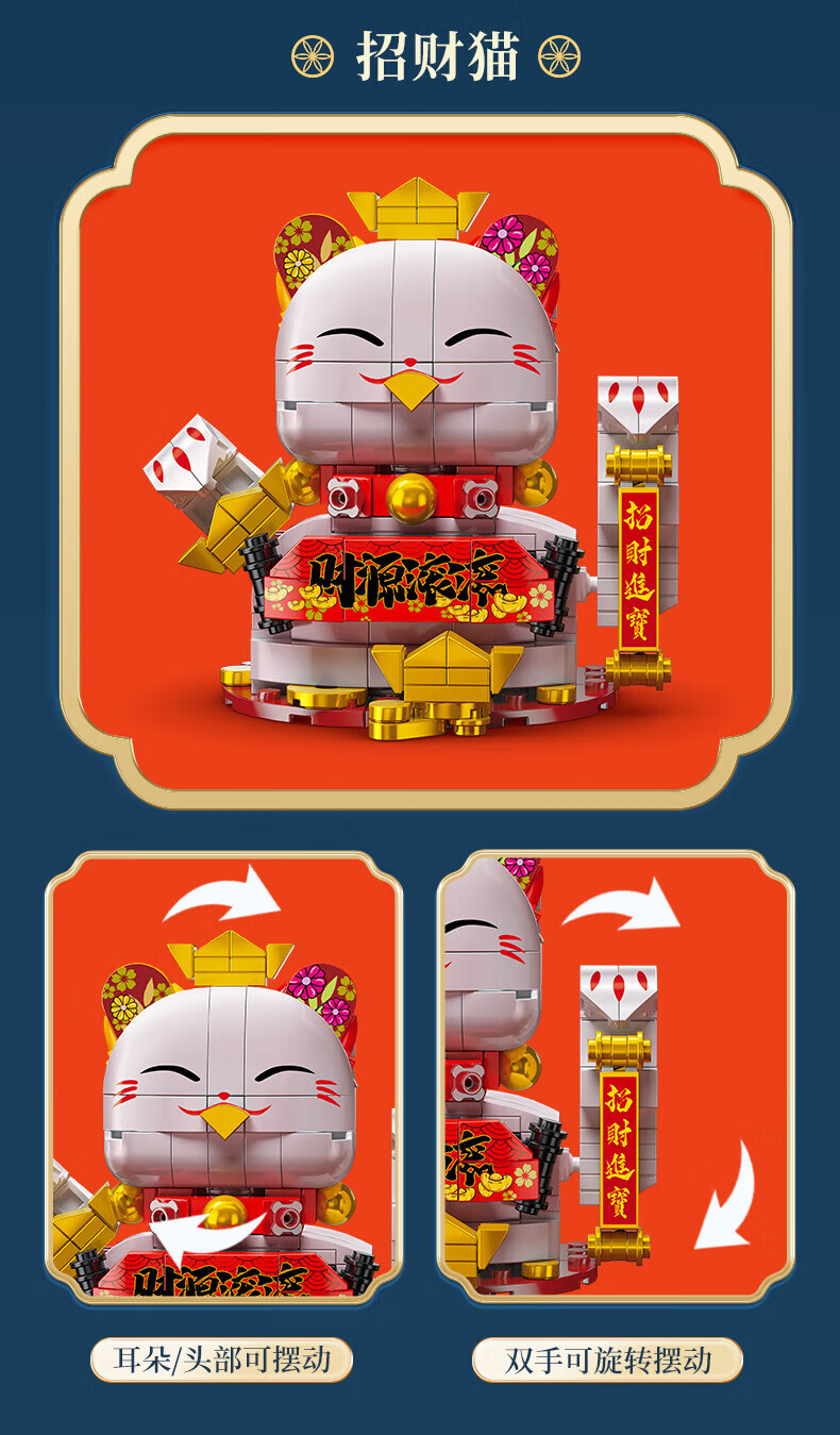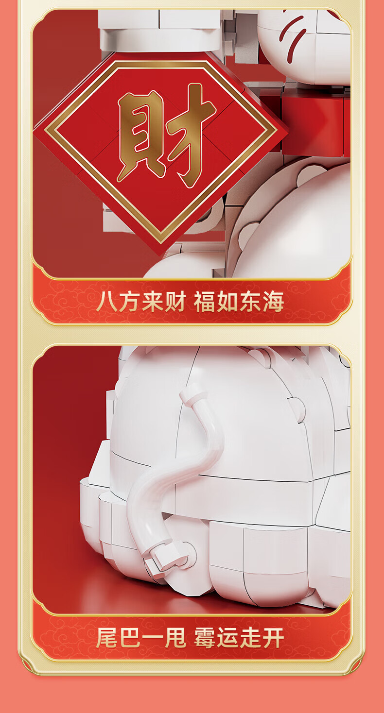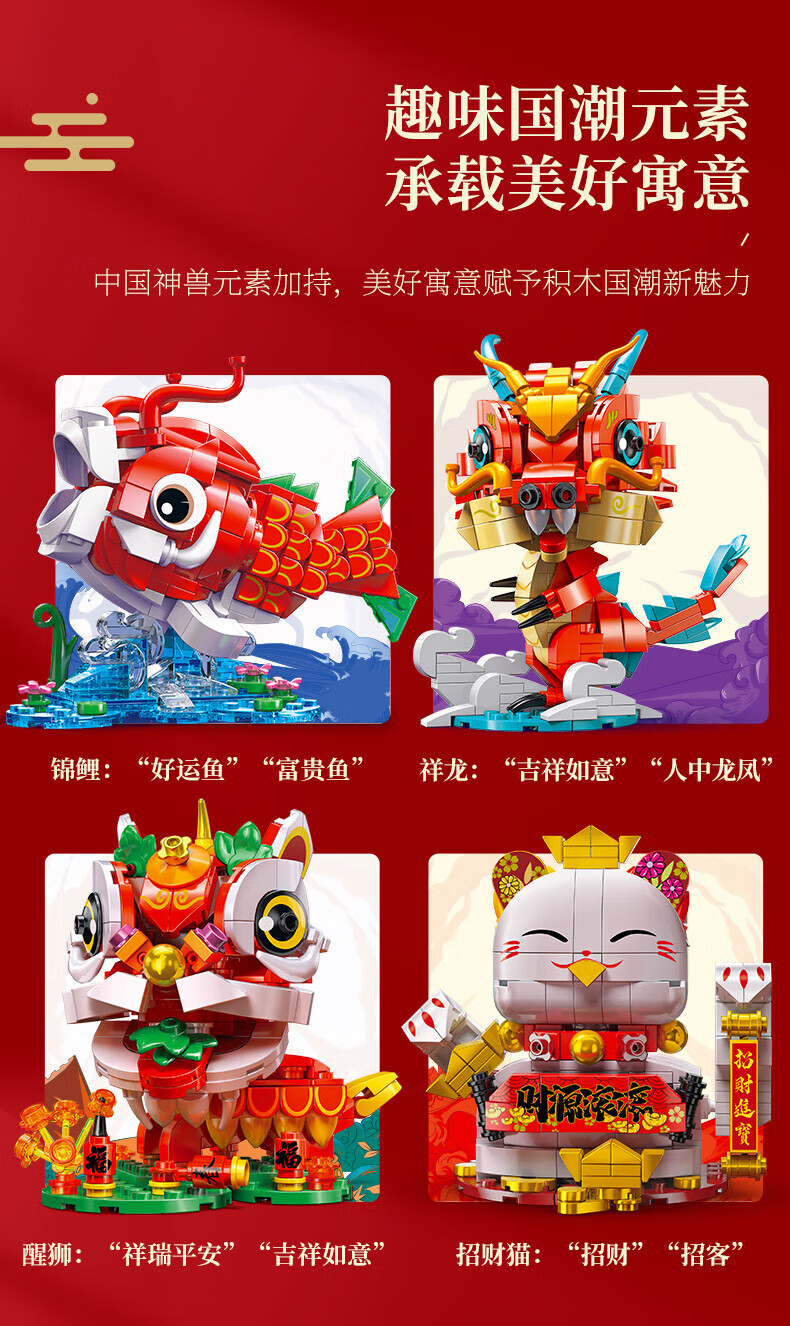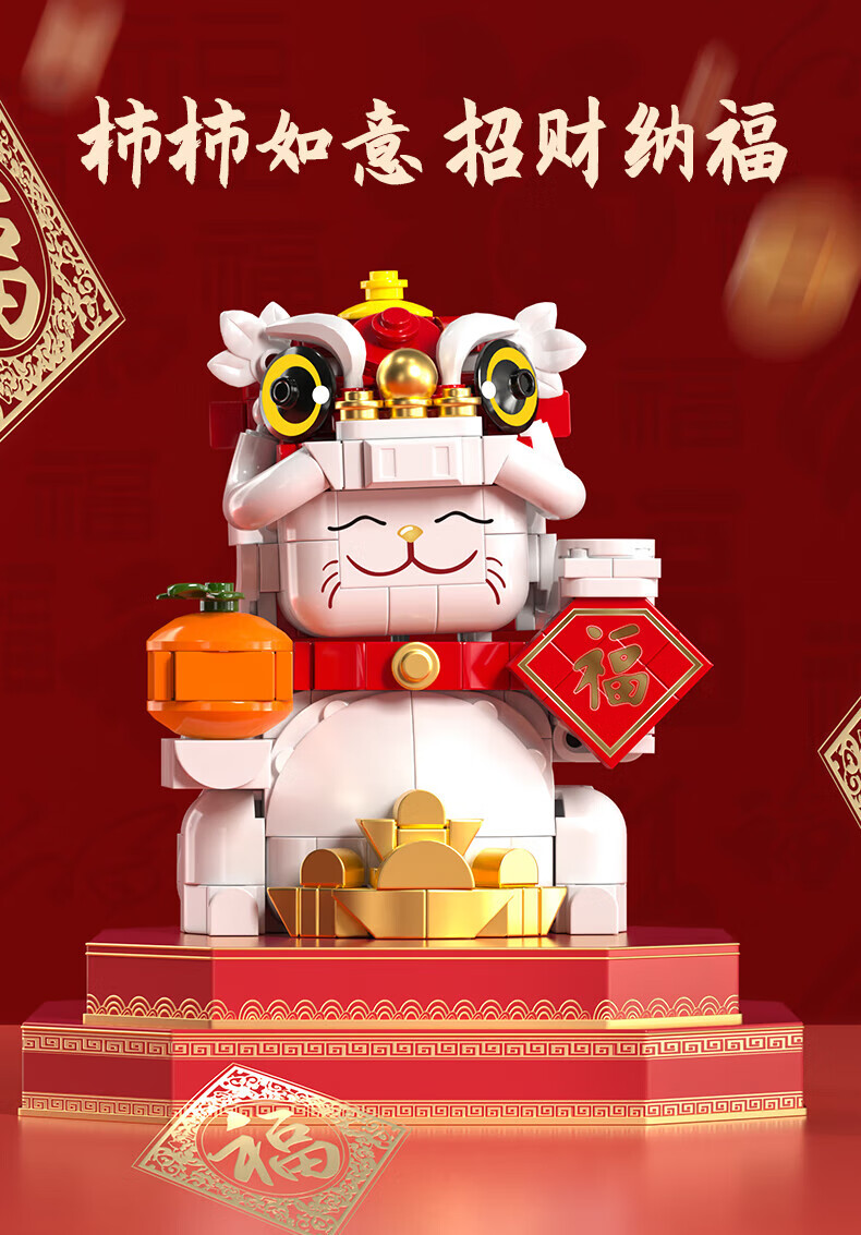 乐凑(L)中国四大神兽积木拼装模型儿童玩具摆件男孩6-12岁过年礼物礼盒 醒狮招财猫800+Pcs