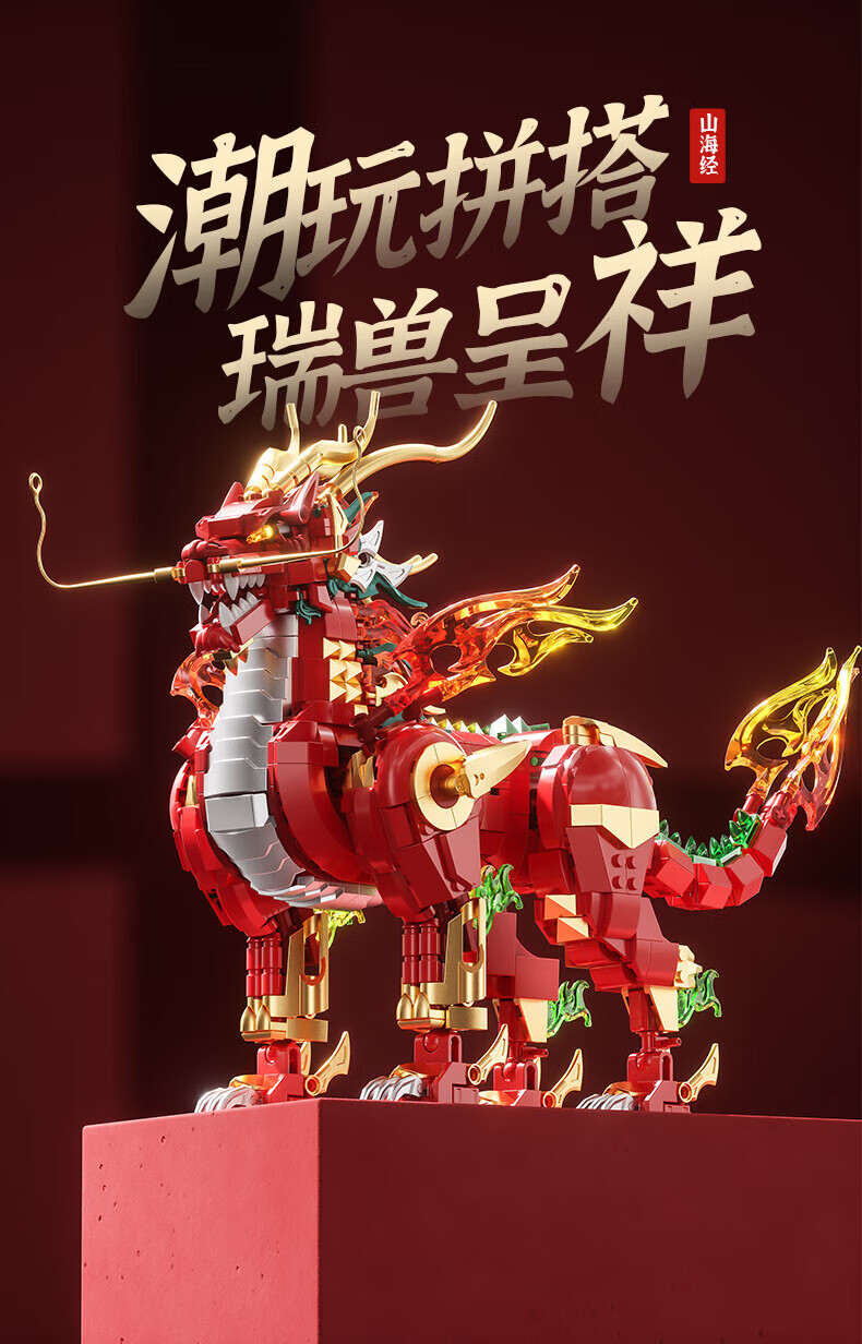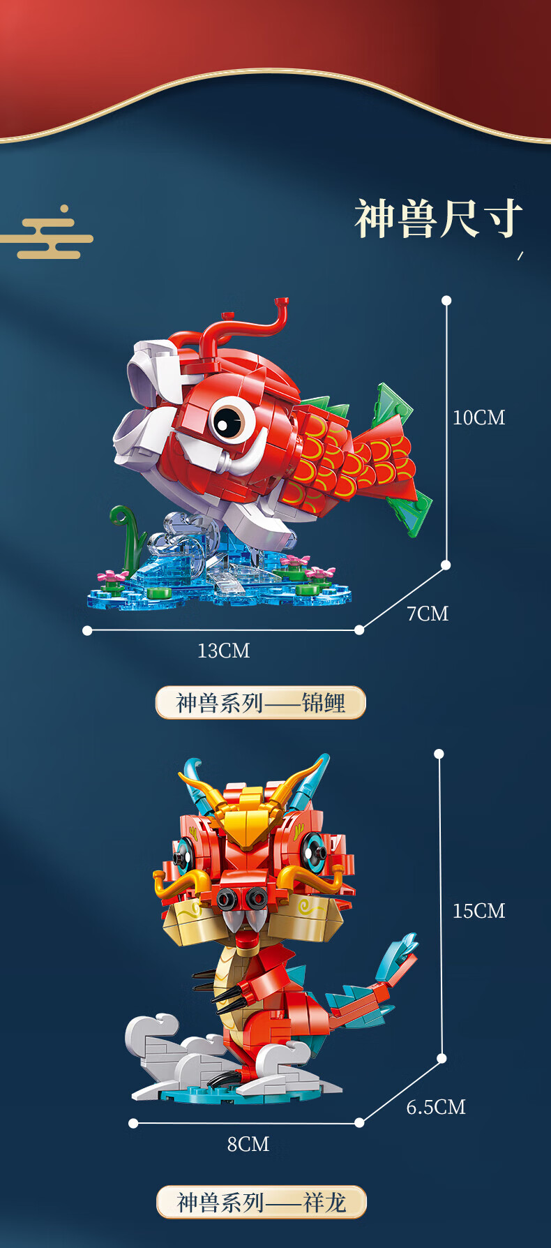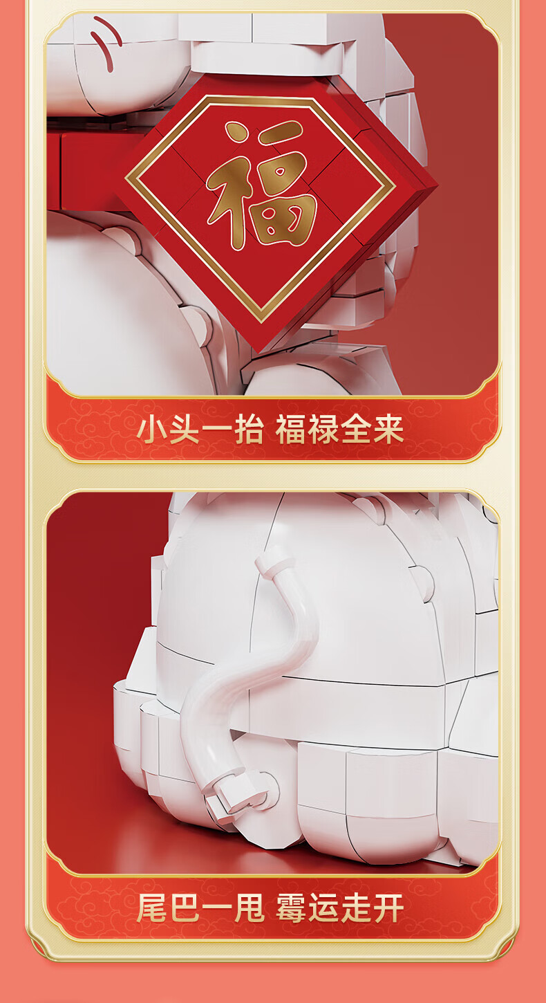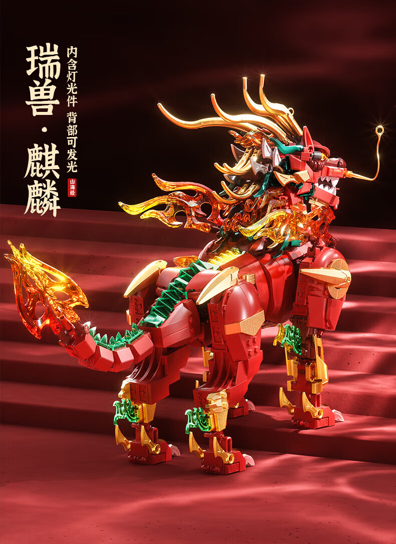 乐凑(L)中国四大神兽积木拼装模型儿童玩具摆件男孩6-12岁过年礼物礼盒 醒狮招财猫800+Pcs