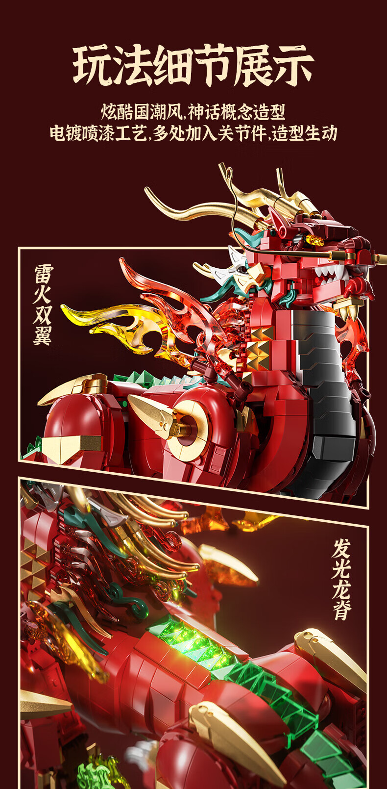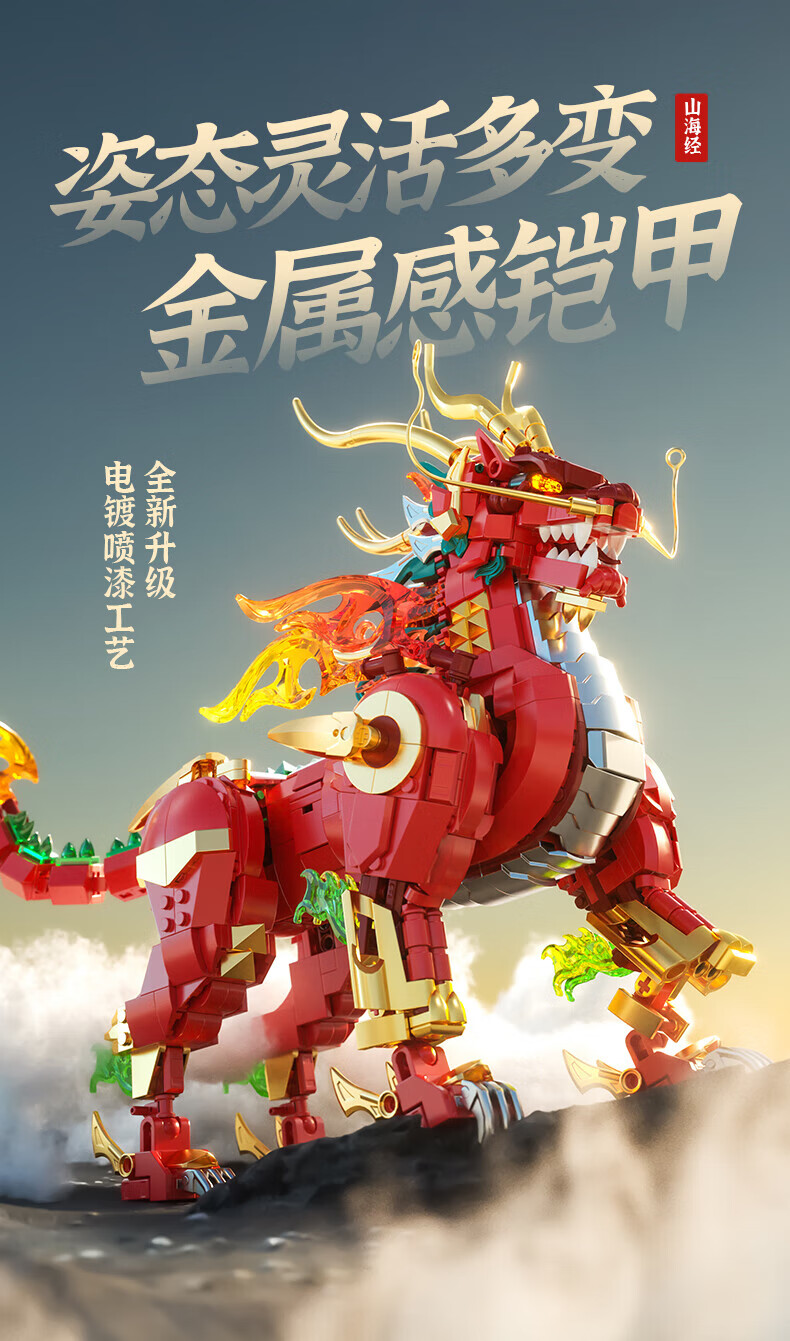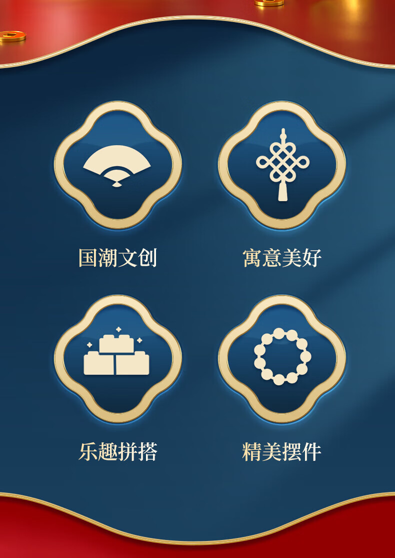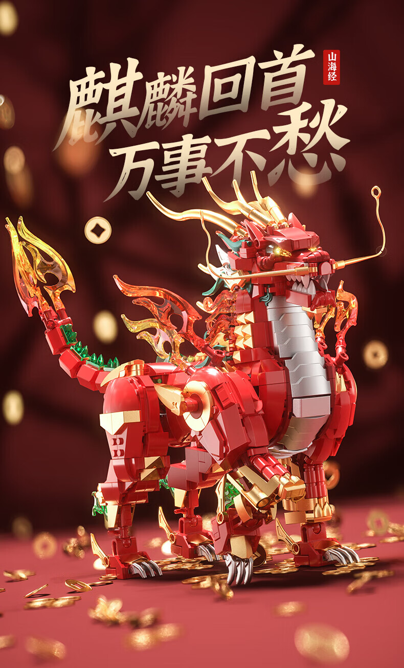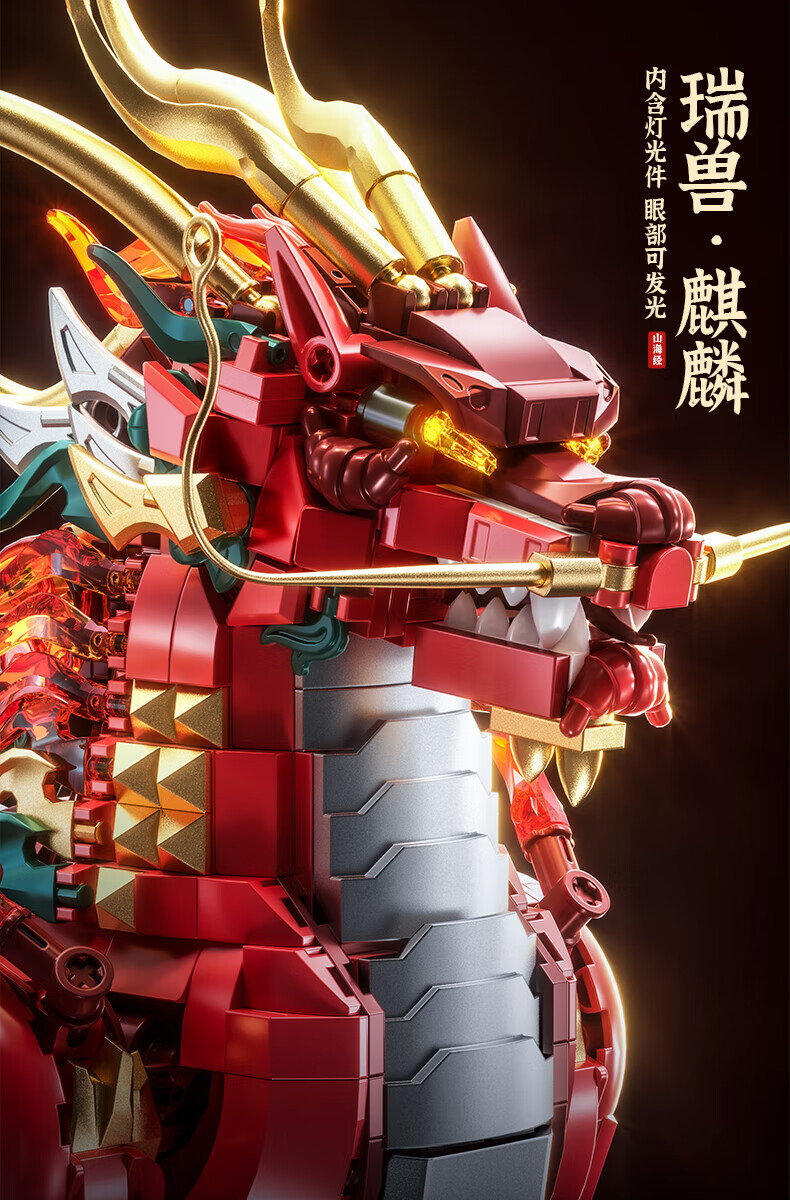 乐凑(L)中国四大神兽积木拼装模型儿童玩具摆件男孩6-12岁过年礼物礼盒 醒狮招财猫800+Pcs