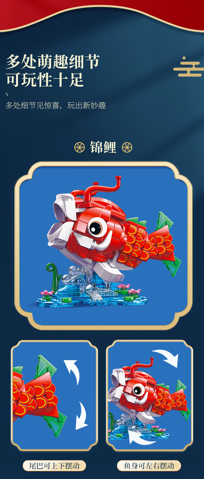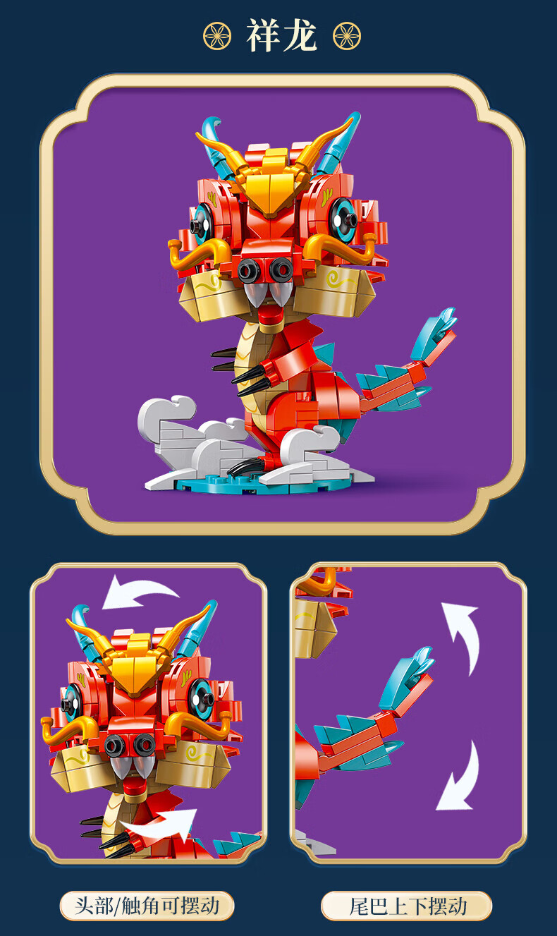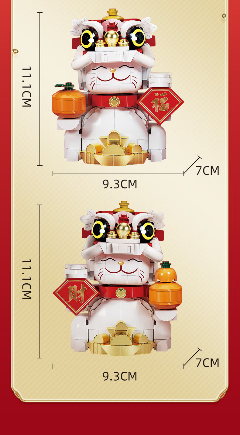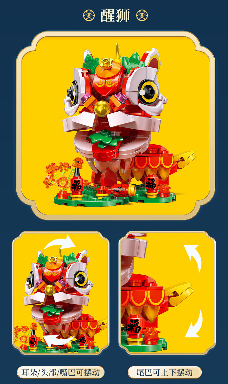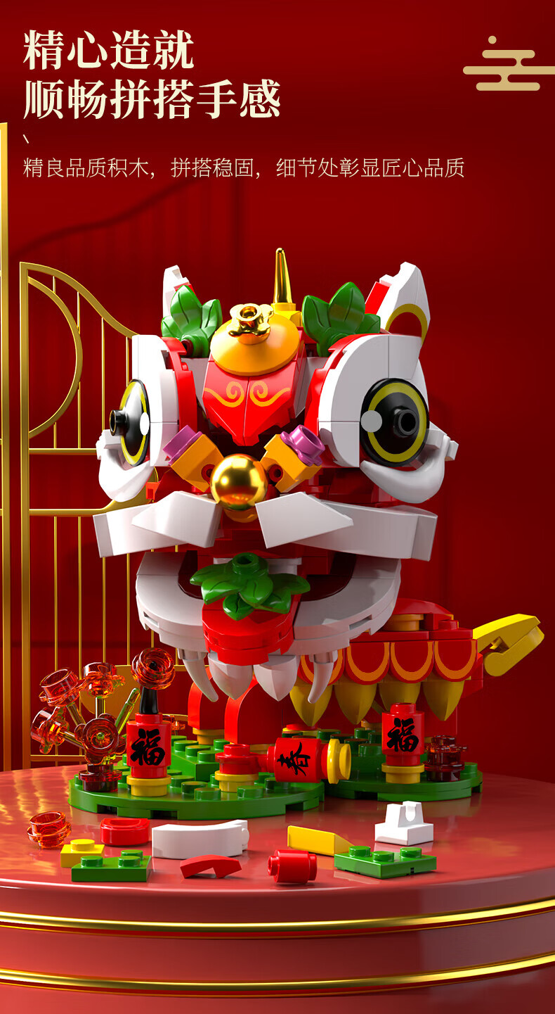 乐凑(L)国潮神兽积木拼装新年装饰品摆件醒狮锦鲤招财猫玩具儿童节礼物 【醒狮】9.2*7.2*10cm