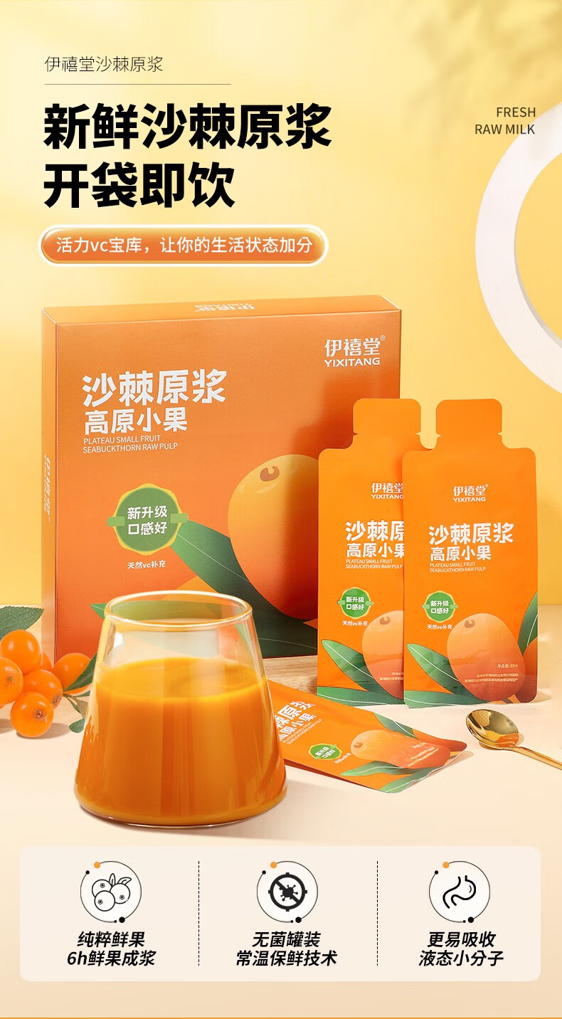 青海伊禧堂优选高海拔小果沙棘原浆礼盒装300ml(30ml*10) 正宗鲜榨沙棘汁满满VC送礼送长辈 【尝鲜礼盒装】30ml*10/盒