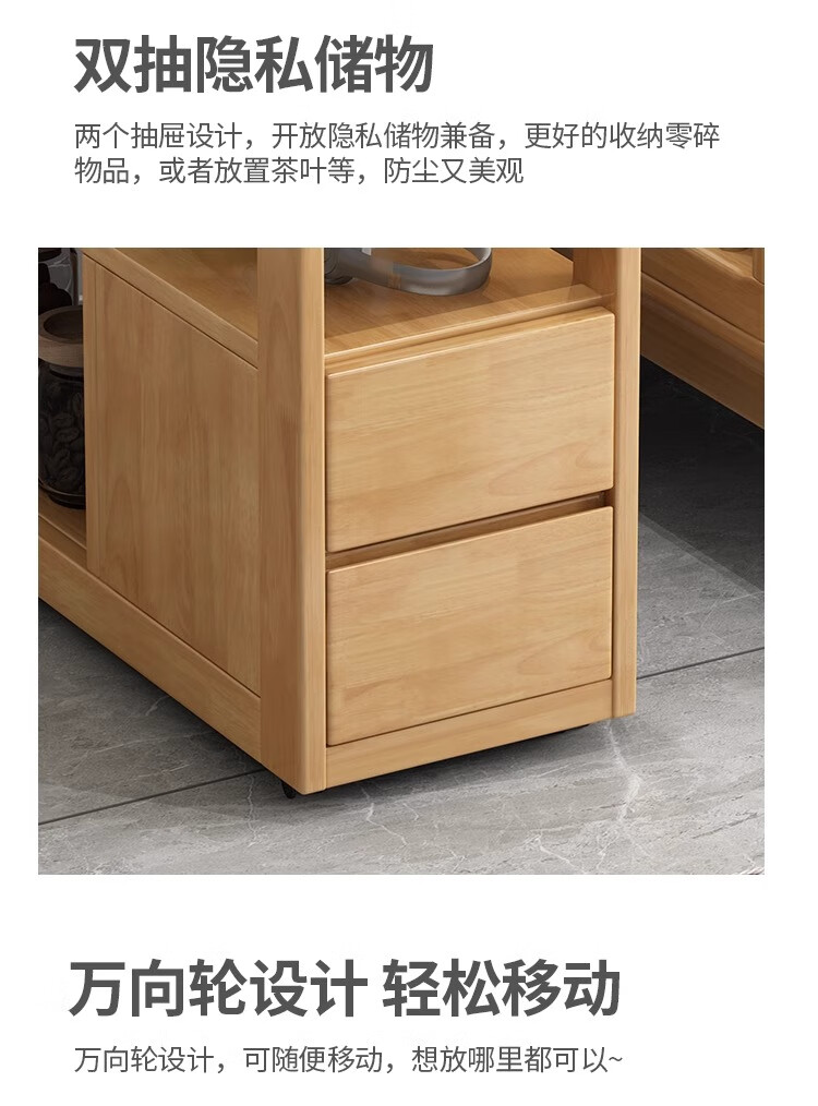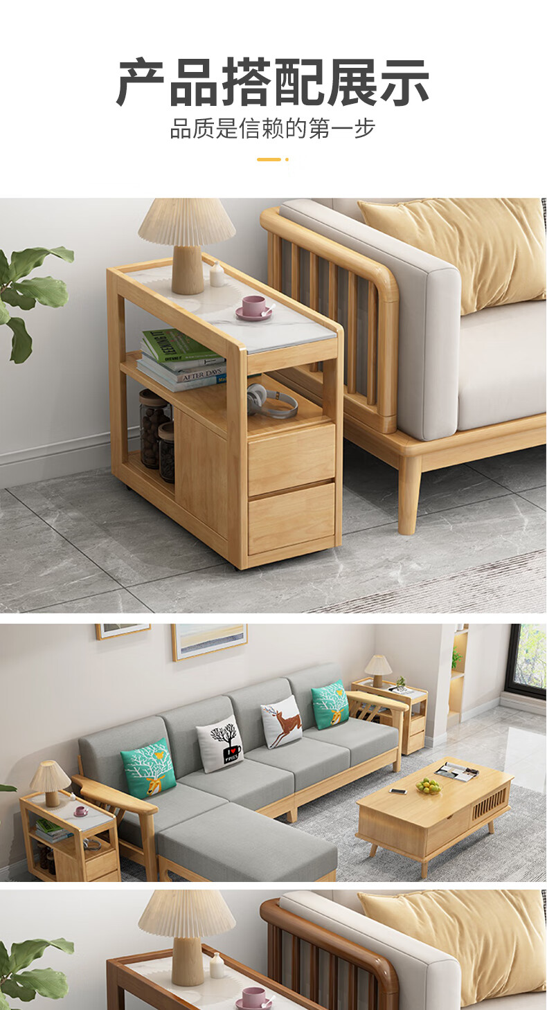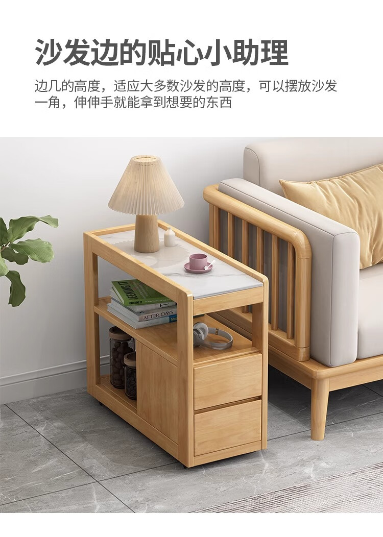 木尔雅实木沙发边几侧边柜小户型岩板茶几移动边几带轮子客厅茶台边柜 胡桃色【实木移动边几】 整装【送货上门】