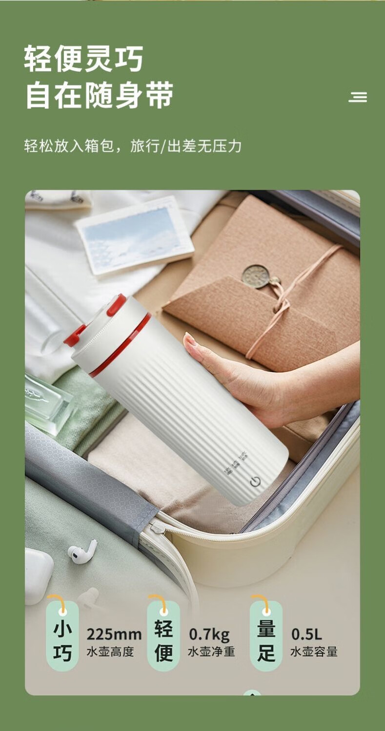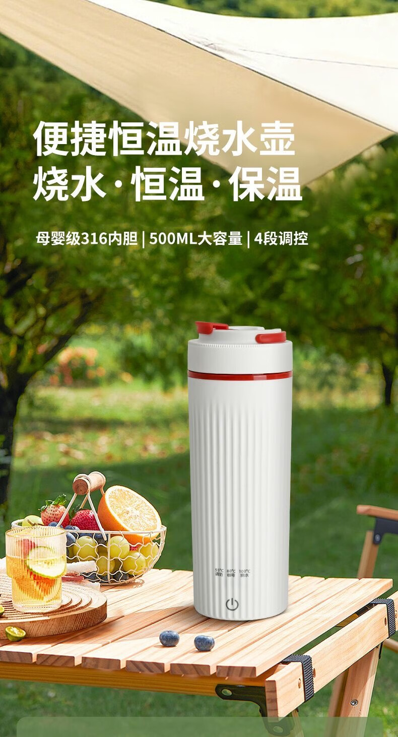 贰贰伍R便携式电热烧水杯 烧热水壶多段恒温壶加热保温杯旅行 0.4L 【316内胆】智能三档调温