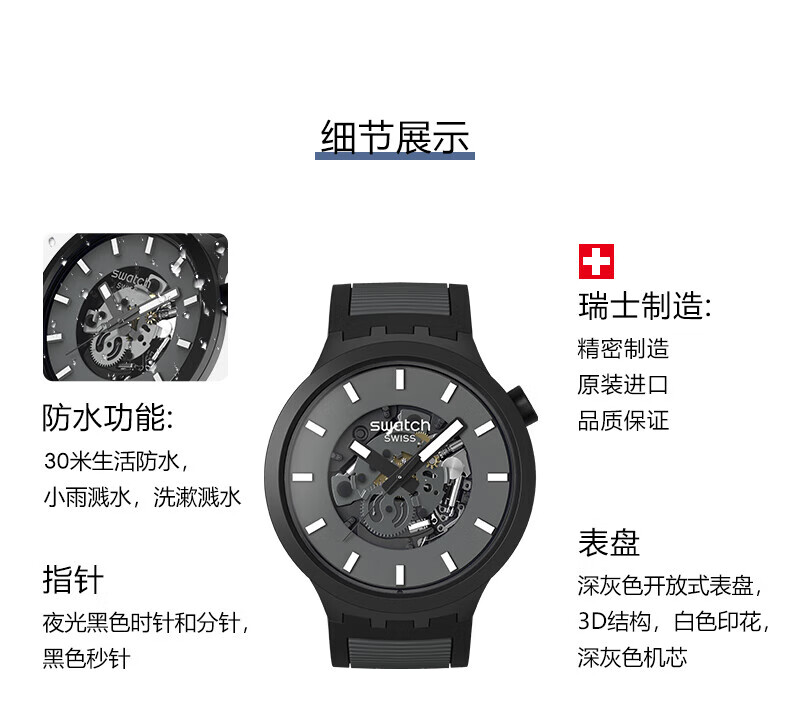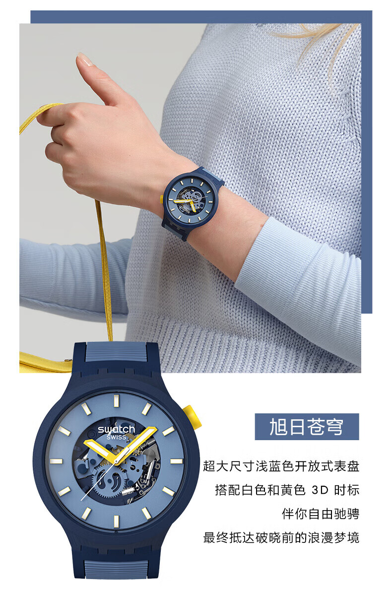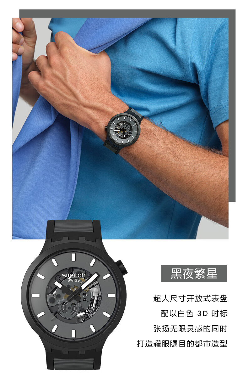 斯沃琪(Swatch)瑞士手表 黑夜繁星 男女时尚石英手表 黑夜繁星 SB05B113 47mm