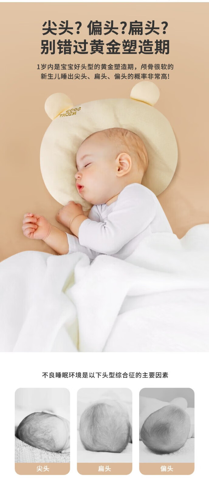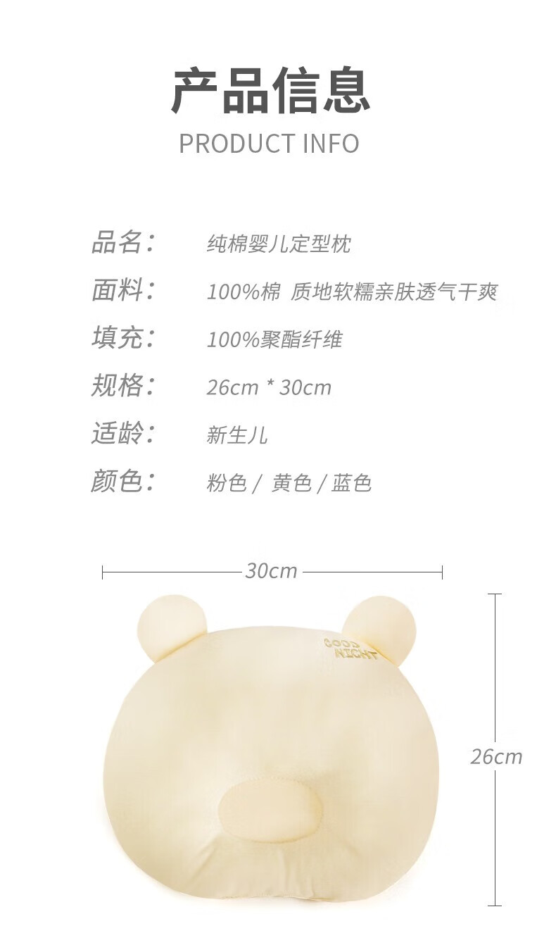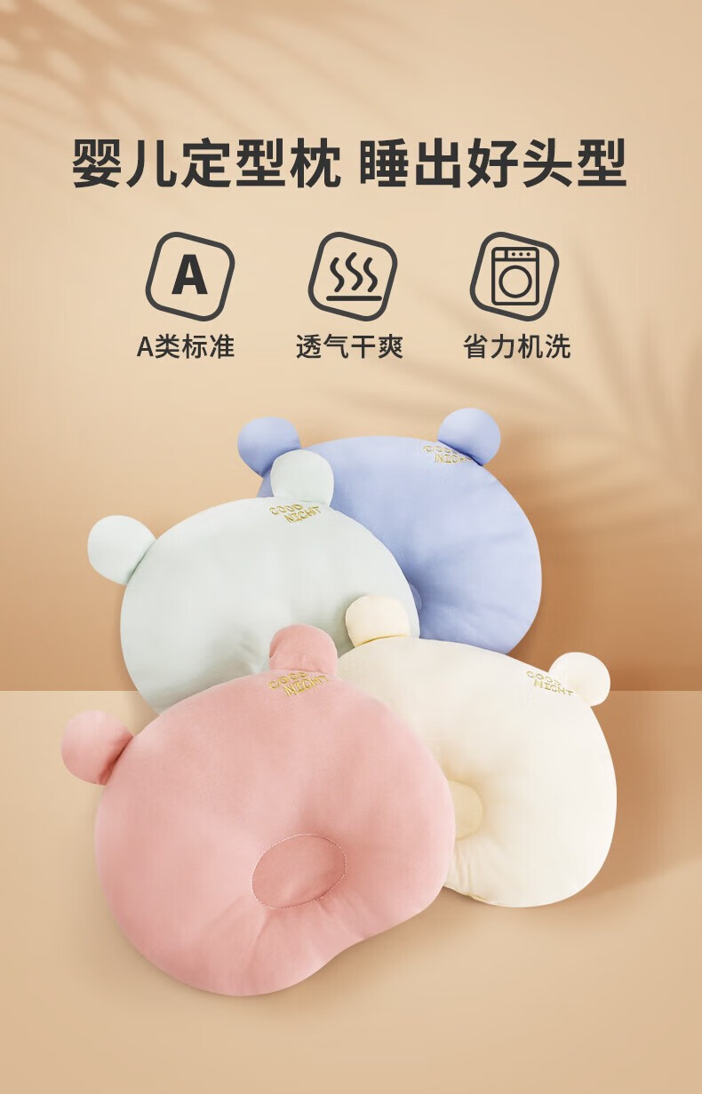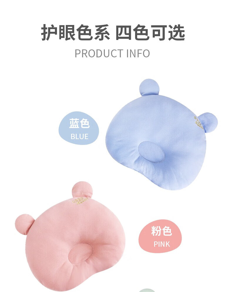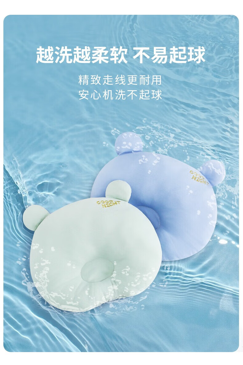 班杰威尔(Banjvall)新生婴儿枕头云片枕定型枕0到6个月平躺枕四季吸汗透气宝宝防吐奶 熊熊枕头蓝色 均码(0-1岁)