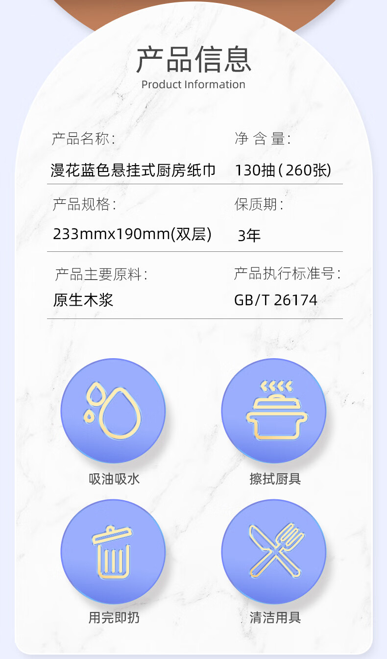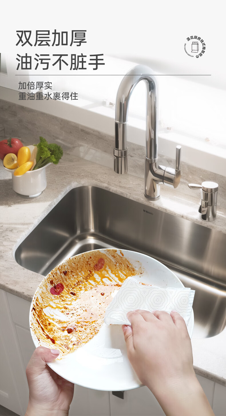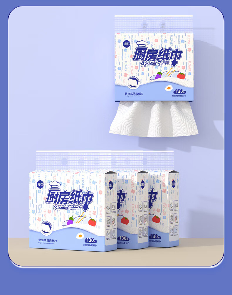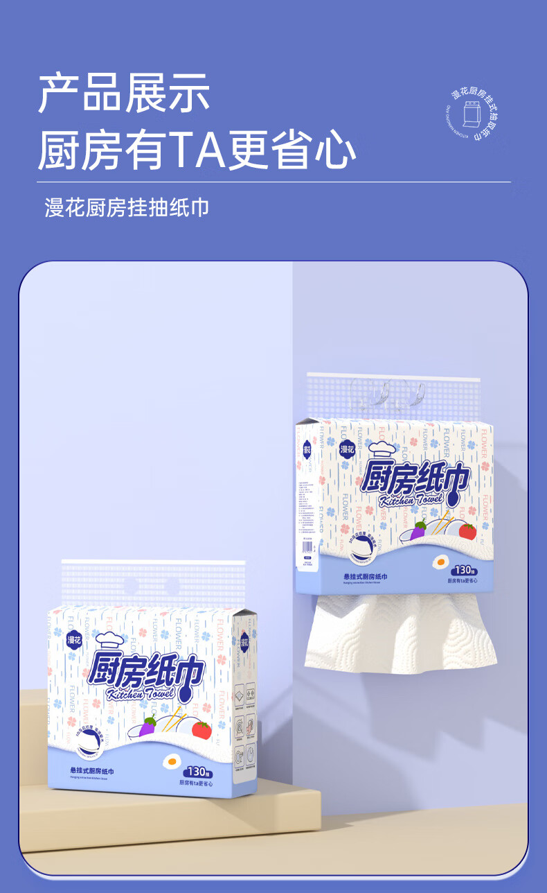 漫花厨房用纸悬挂式厨房纸巾抽纸吸油吸水加大加厚大包一次性厨房纸 【绿色】 2层 130抽*3提