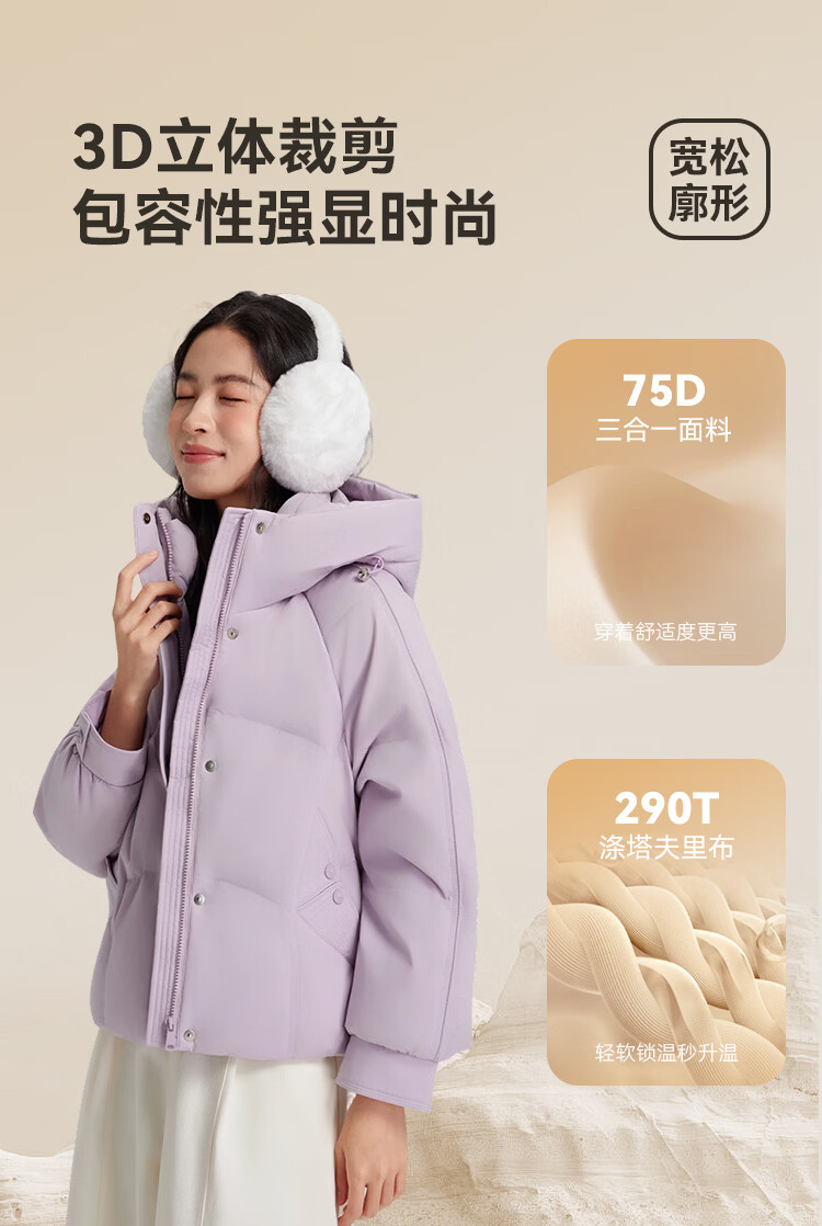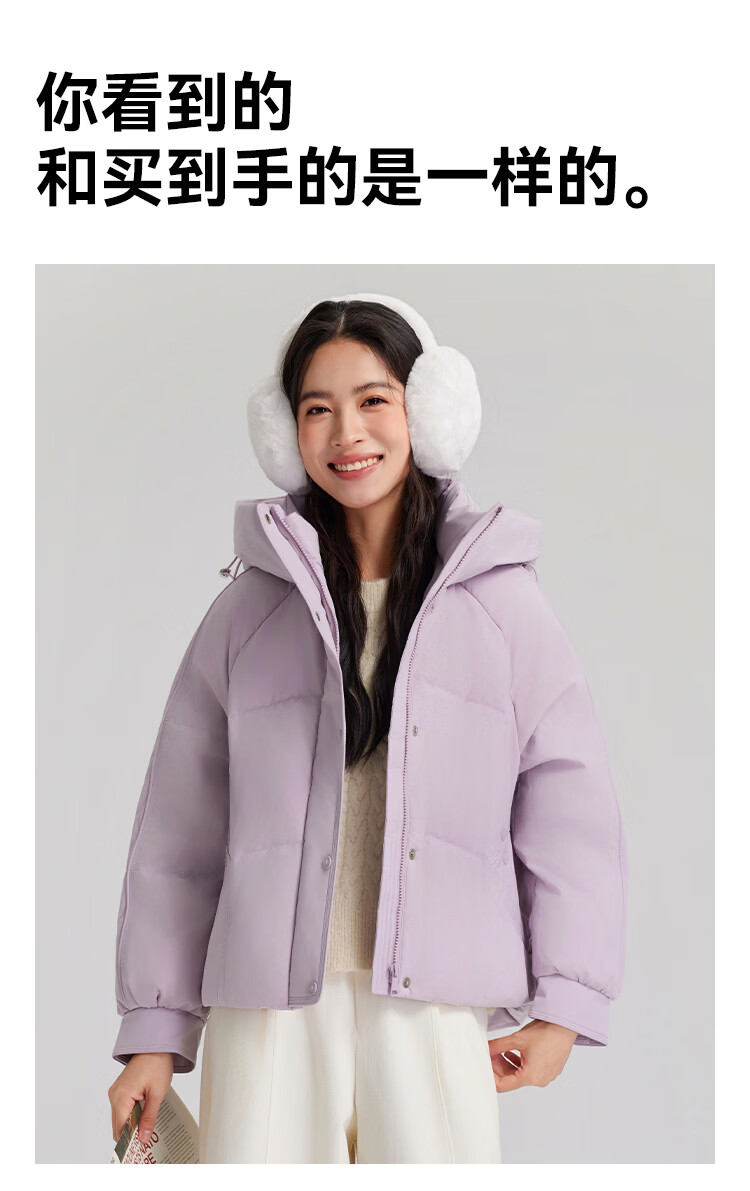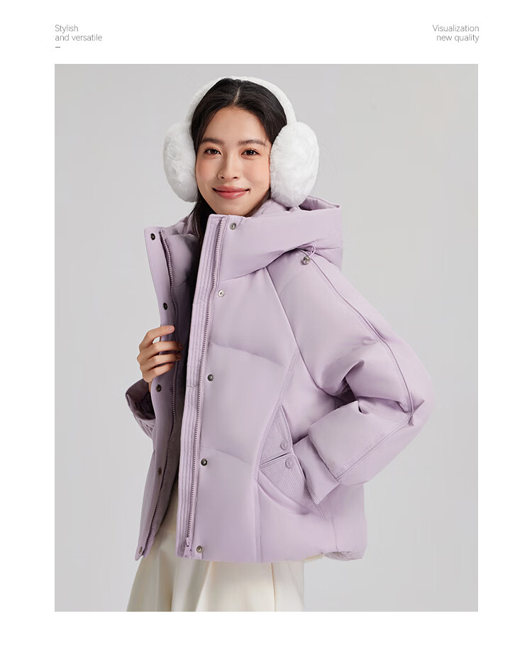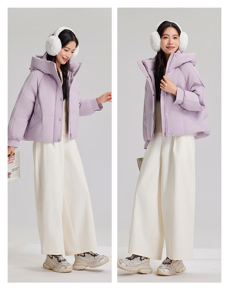【达人专属】轻潮锁温短款羽绒服女潮流休闲风韩版款小个子 紫色 M (165) 110-130斤