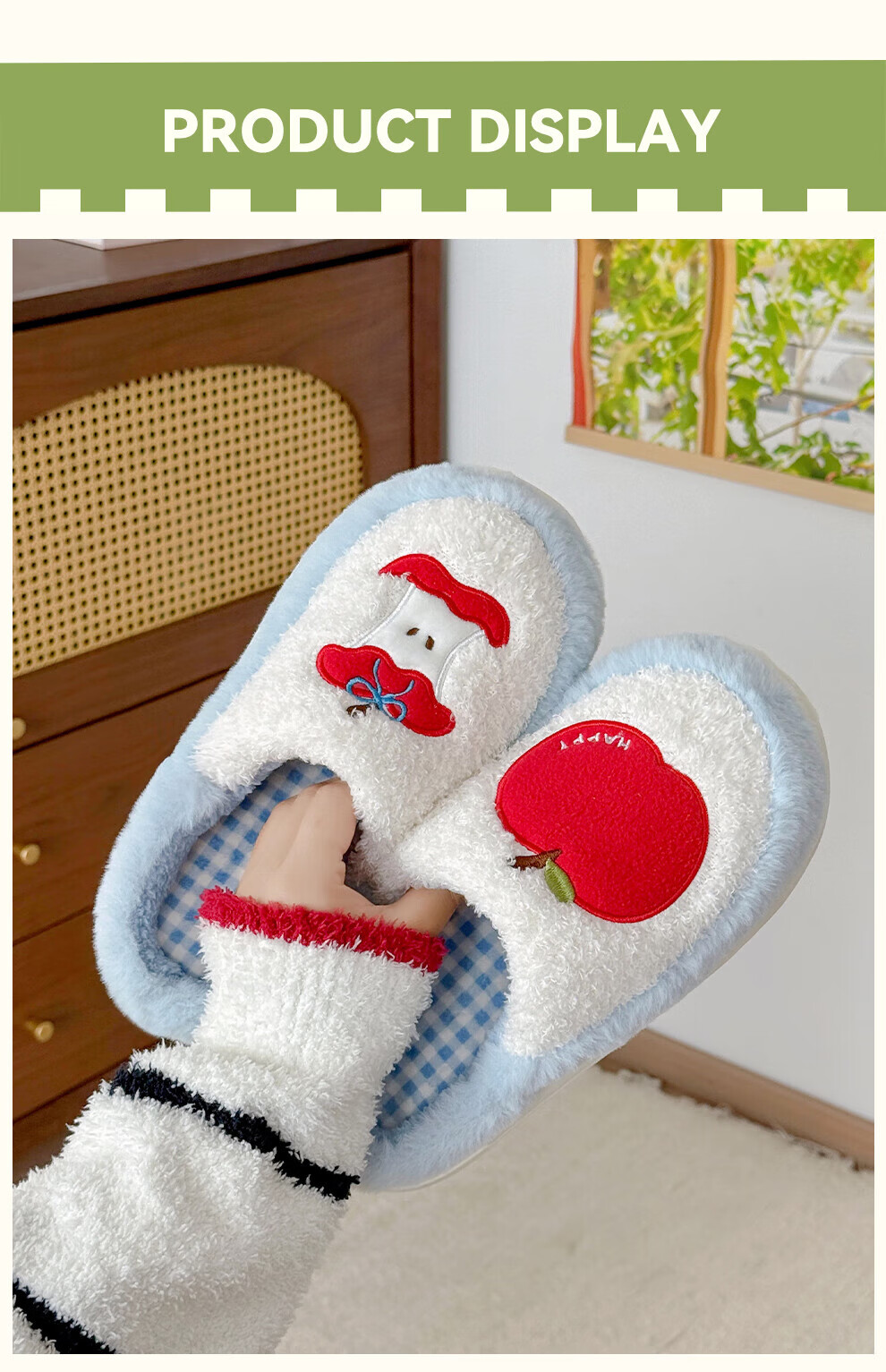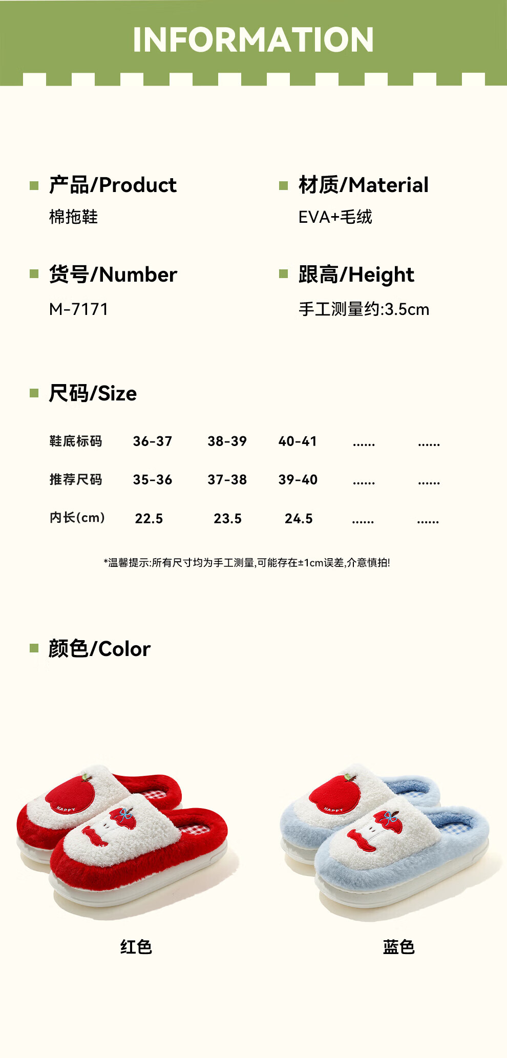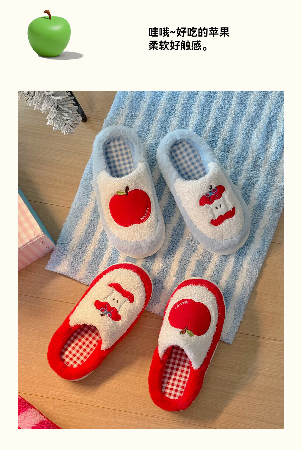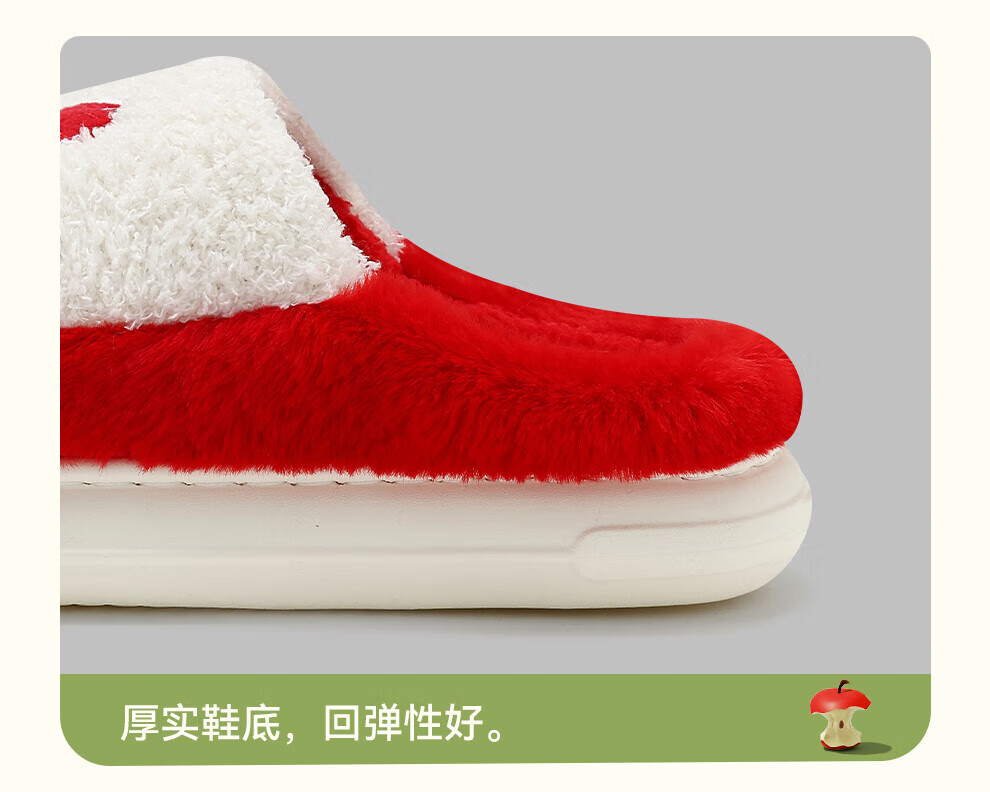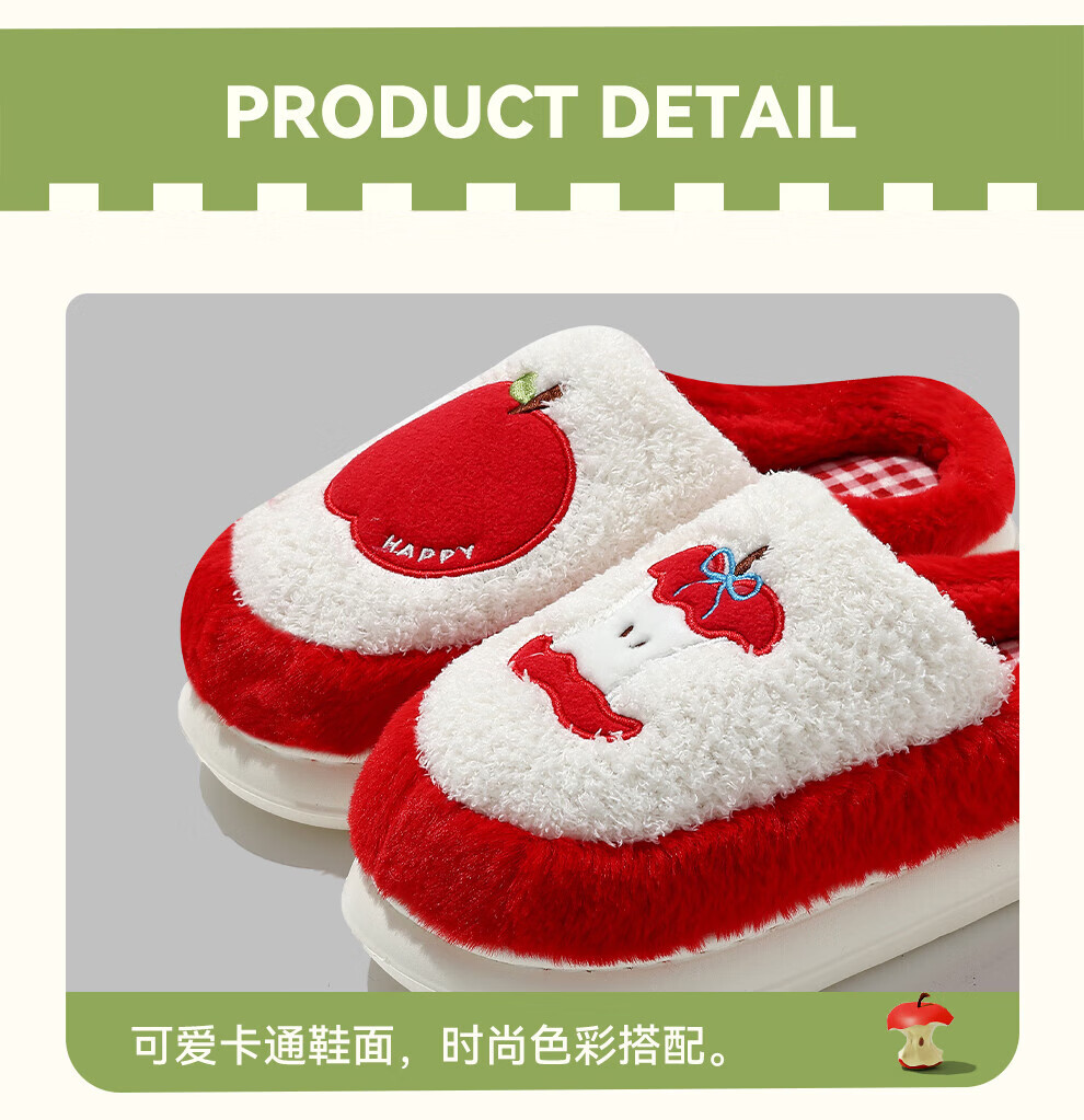 FZT棉拖鞋女款2025秋冬季新款室内家居小苹果加绒保暖厚底防滑棉拖鞋 红色 36-37 适合35-36