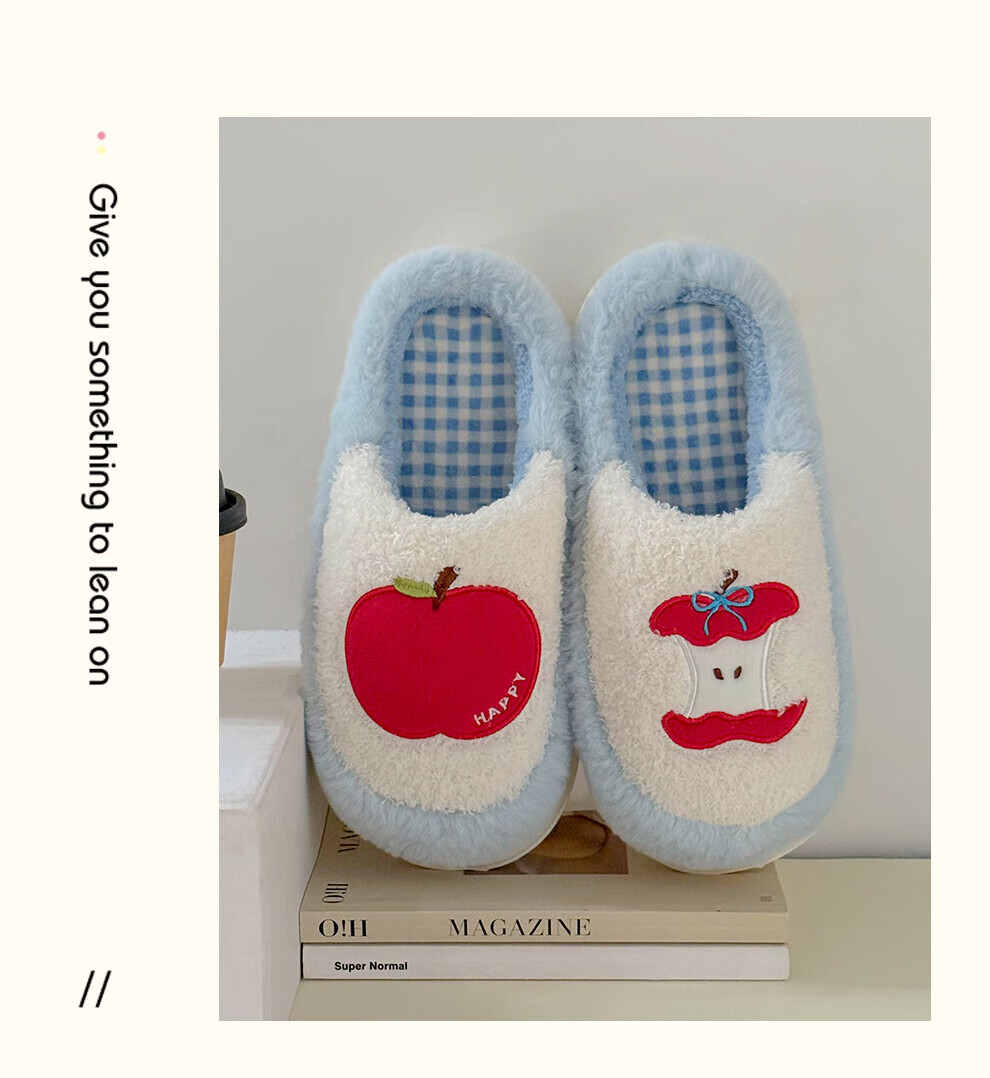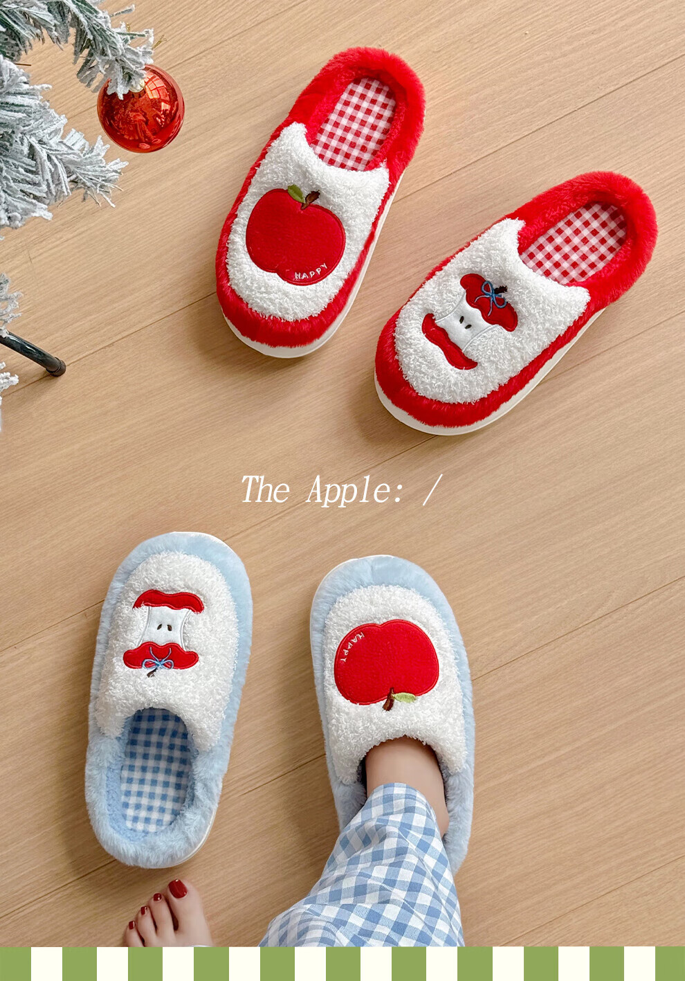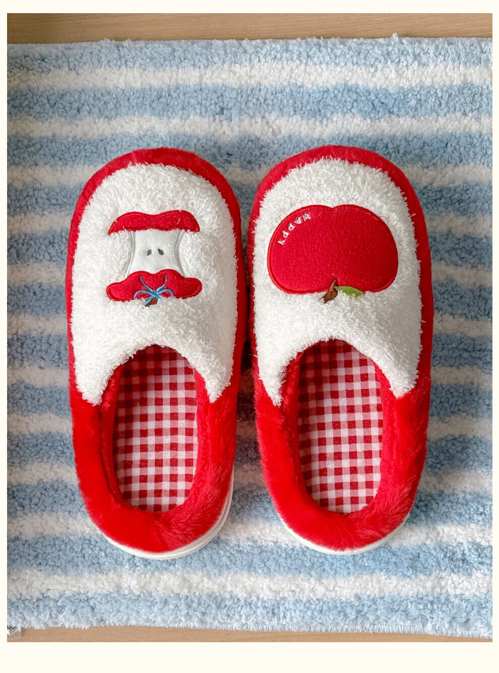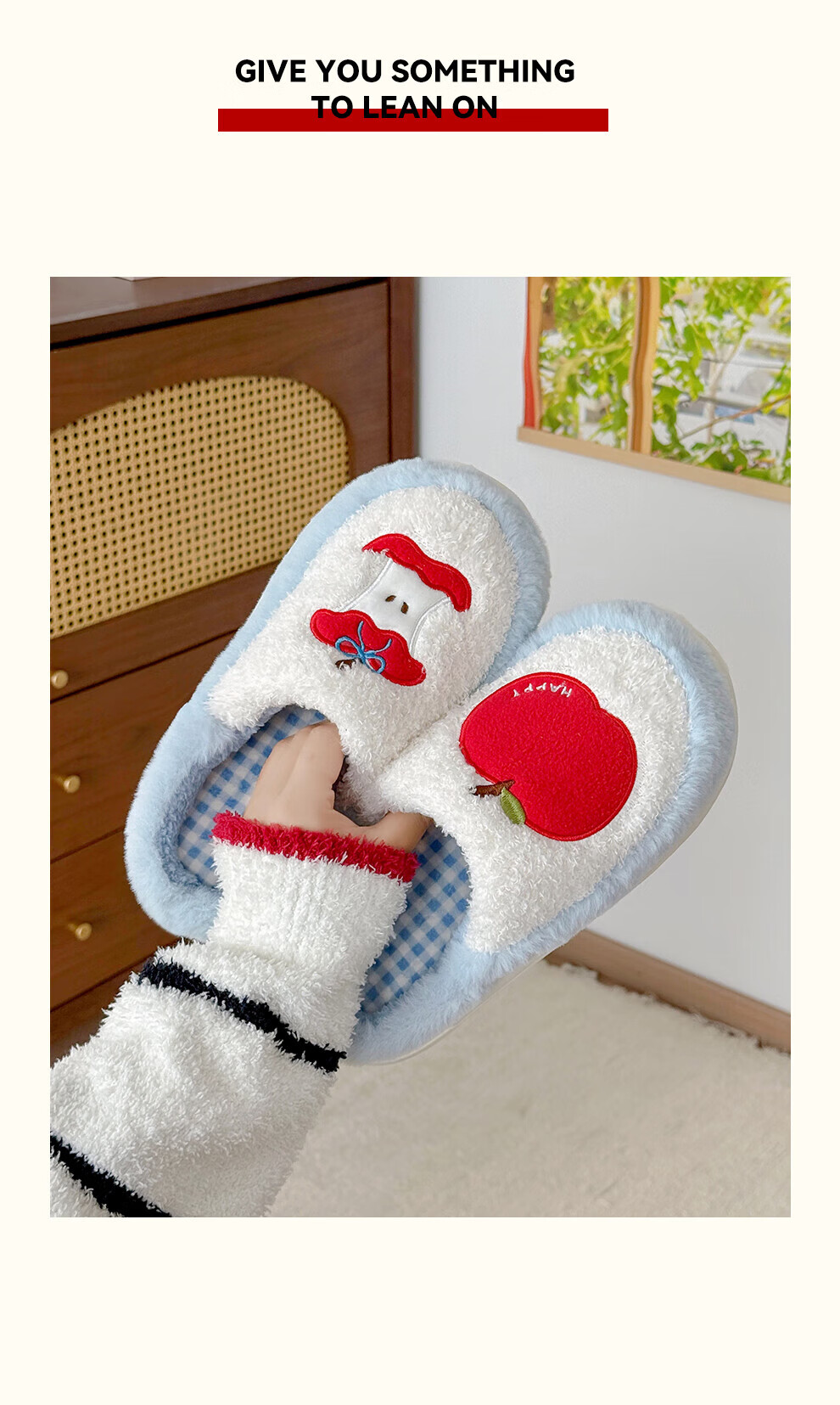 FZT棉拖鞋女款2025秋冬季新款室内家居小苹果加绒保暖厚底防滑棉拖鞋 红色 36-37 适合35-36