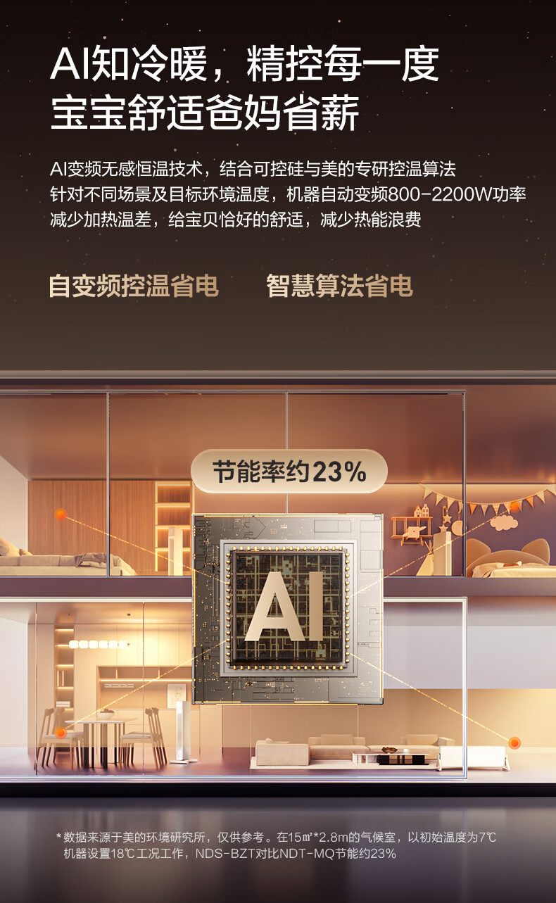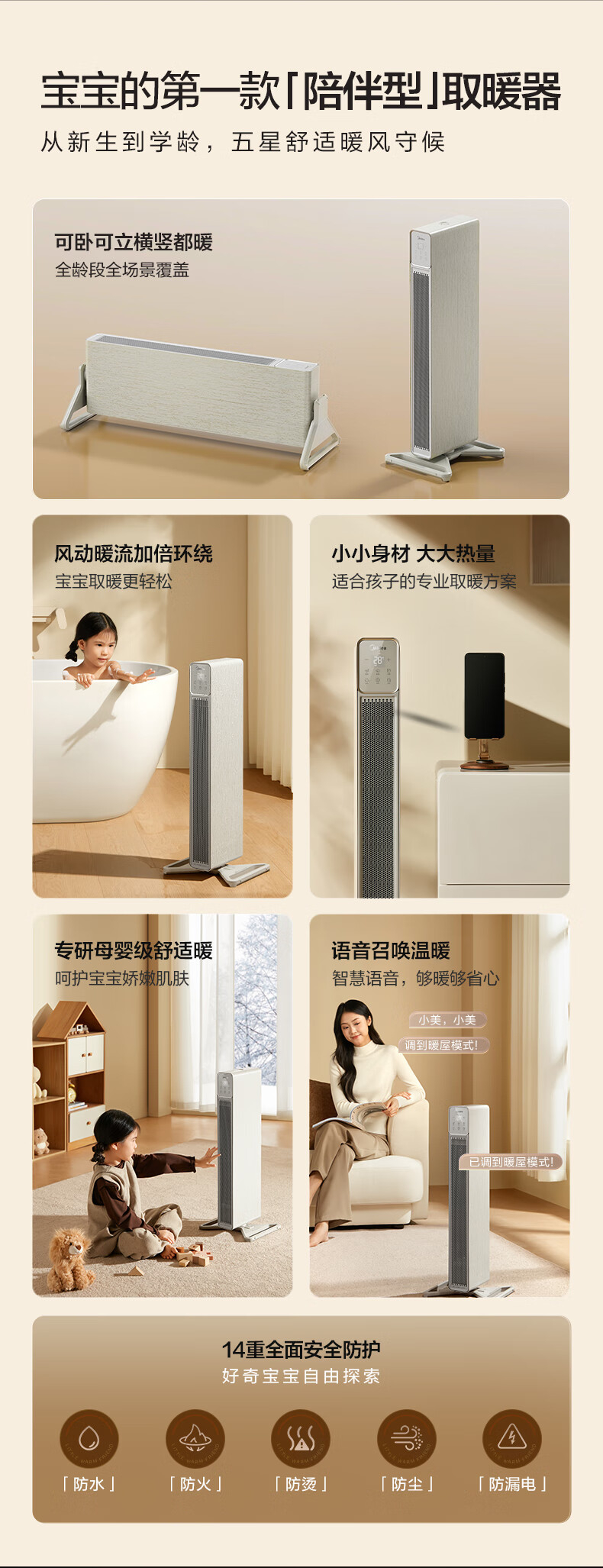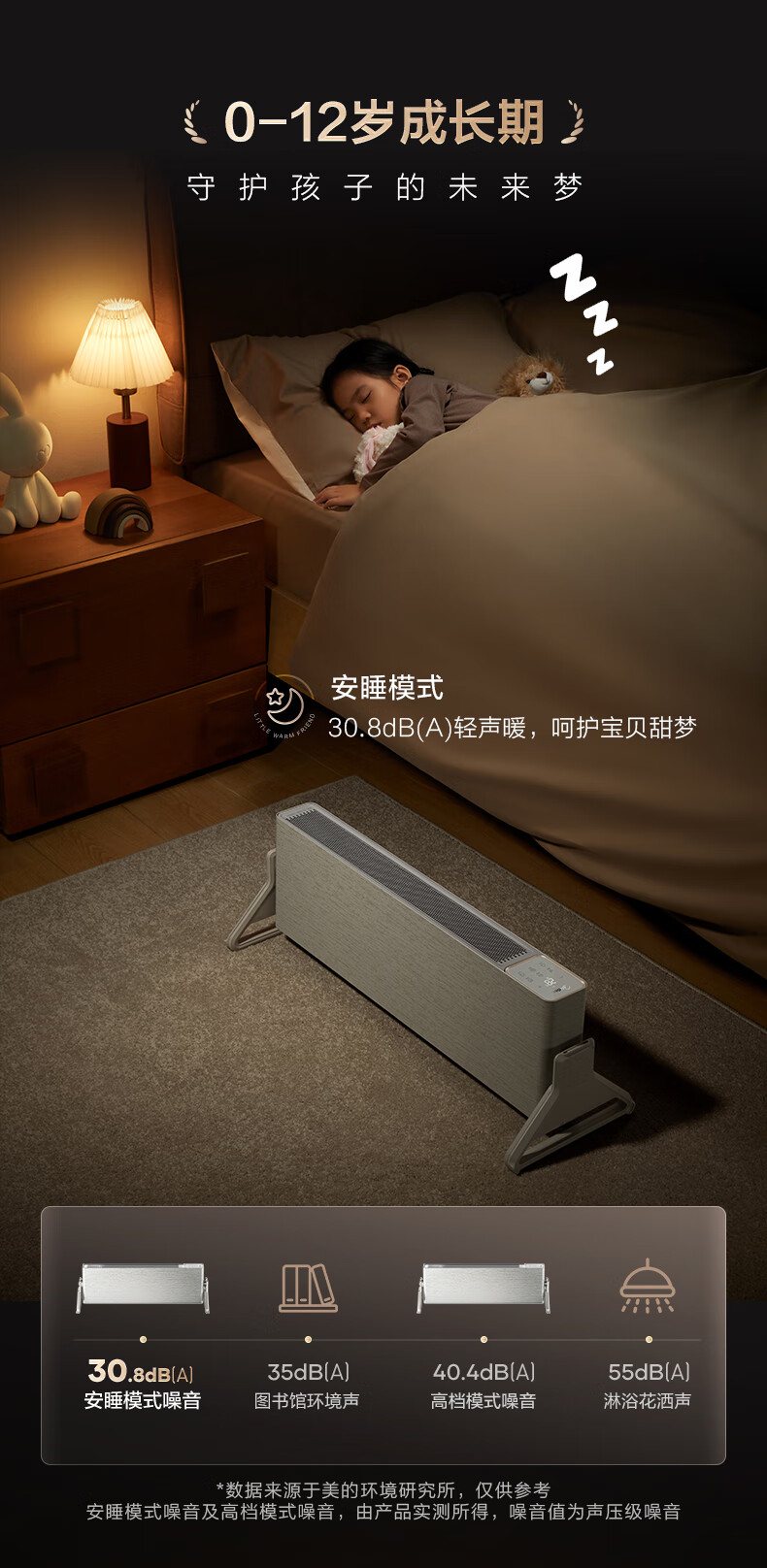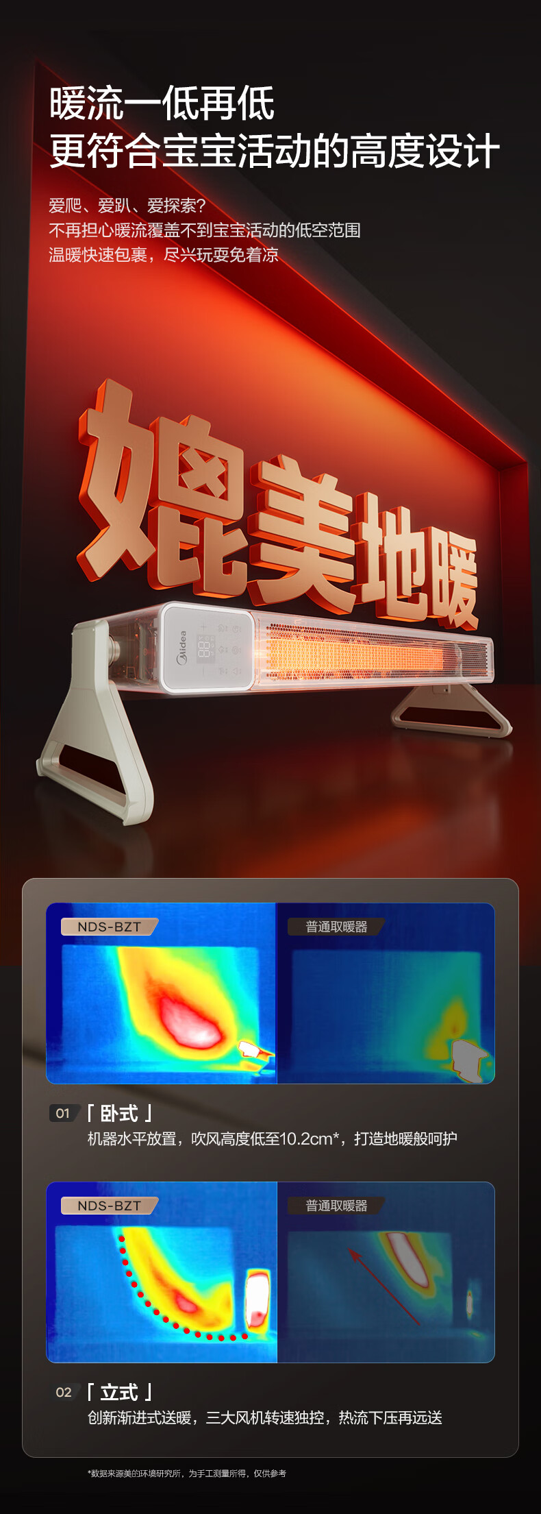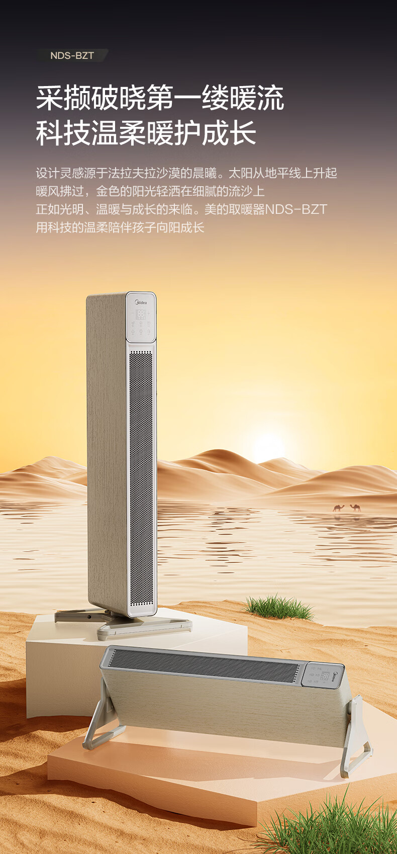 美的(Midea)【随变暖】石墨烯家用踢脚线取暖器/语音智能浴室暖风机/节能电热电暖器/可立可卧电暖气NDS-BZT