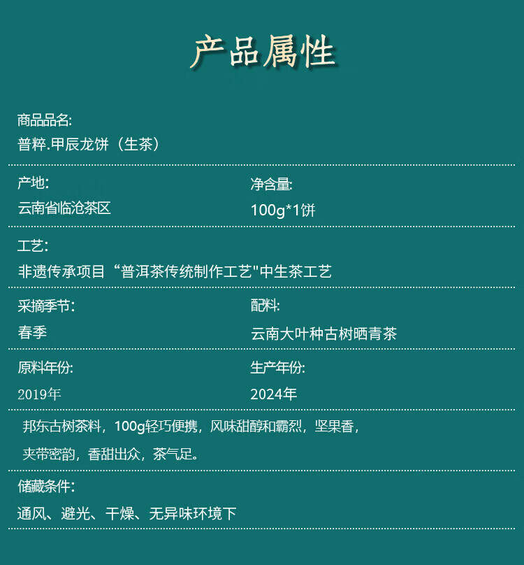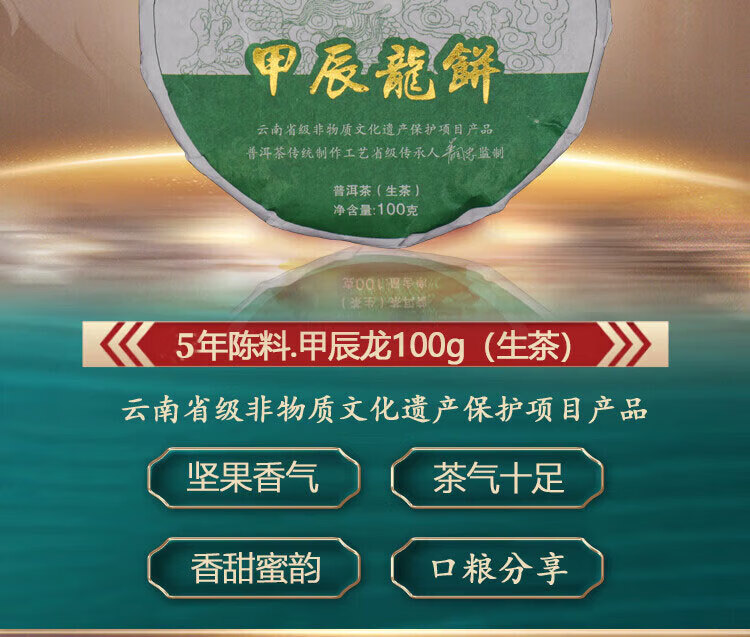 普粹茶叶普洱茶生茶5年陈临沧古树茶甲辰龙饼饼茶盒装100g/饼年货节
