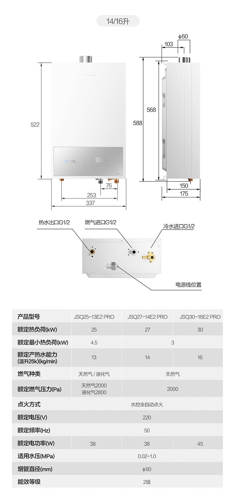 万和【小宇宙E2 PRO】品质爆款 14升天然气 一级恒温 直流变频 三重节能省气静音 14E2 PRO燃气热水器