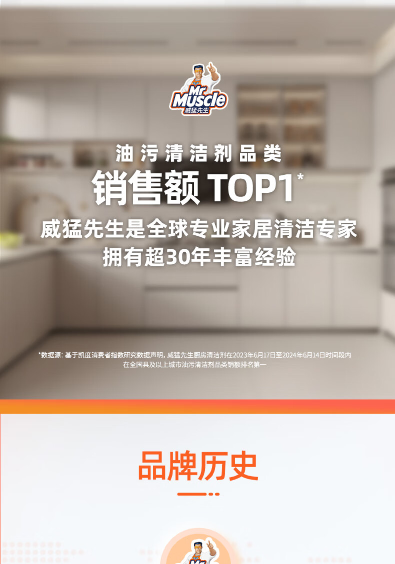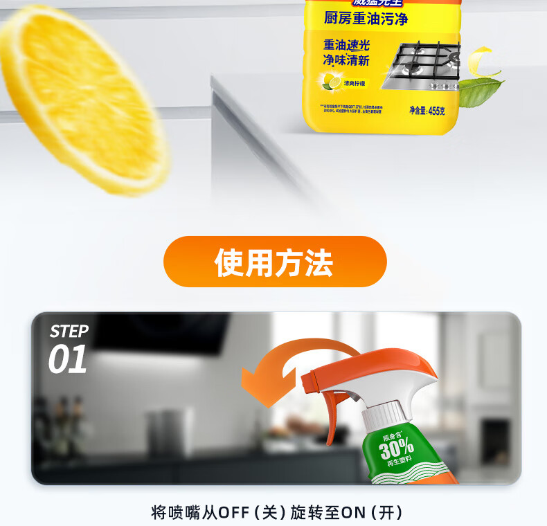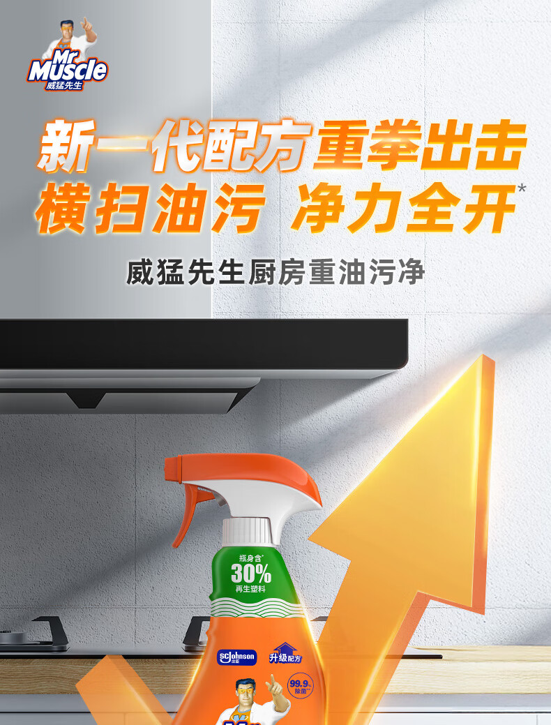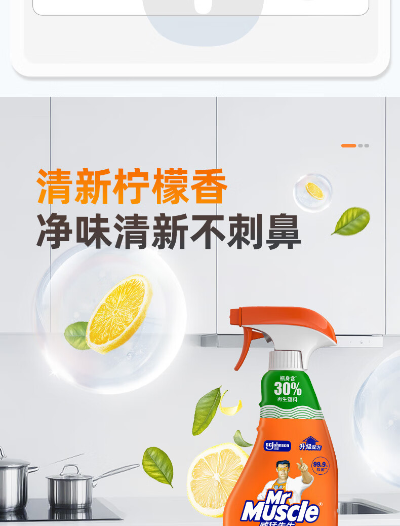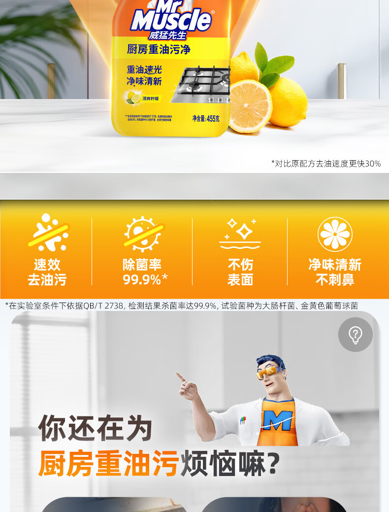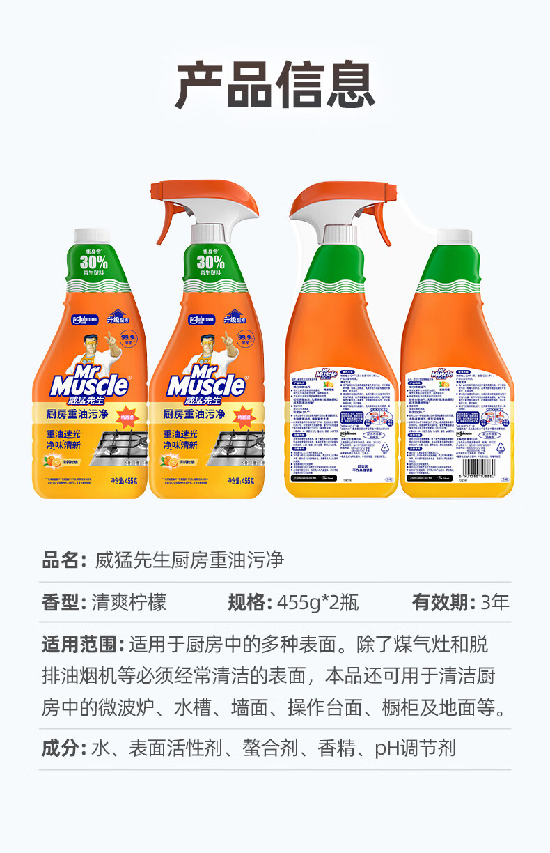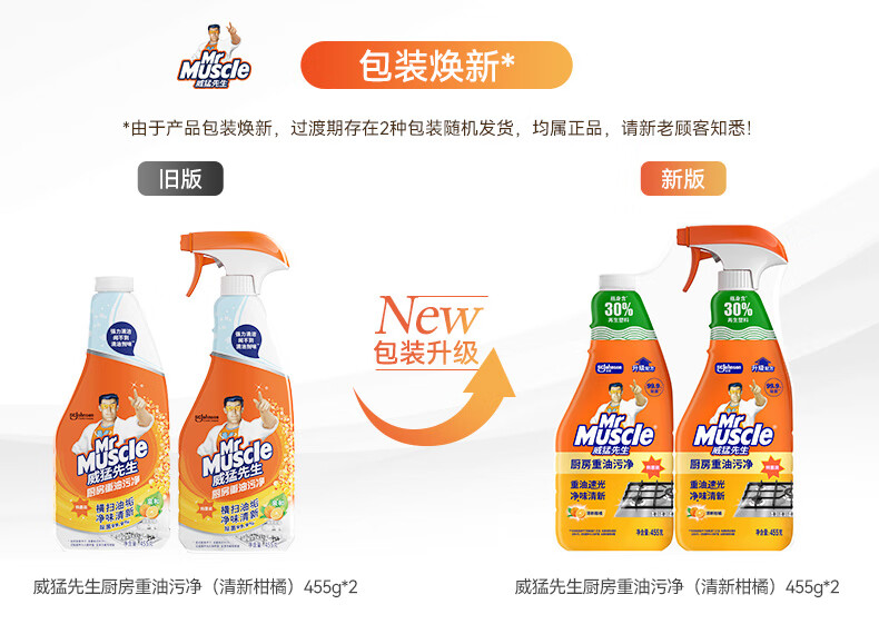 威猛先生(Mr Muscle) 油污清洁剂 455g+455g替换装 柑橘香 厨房重油污净