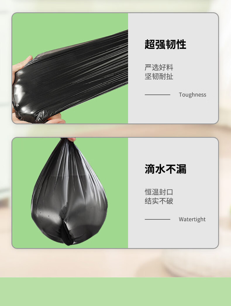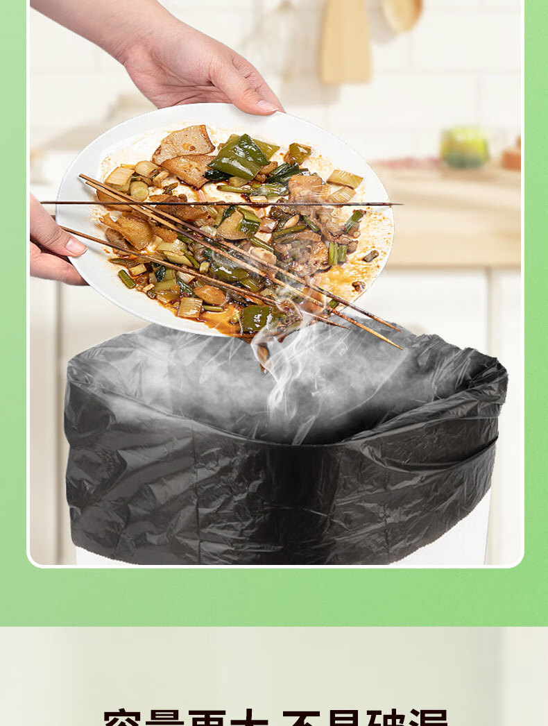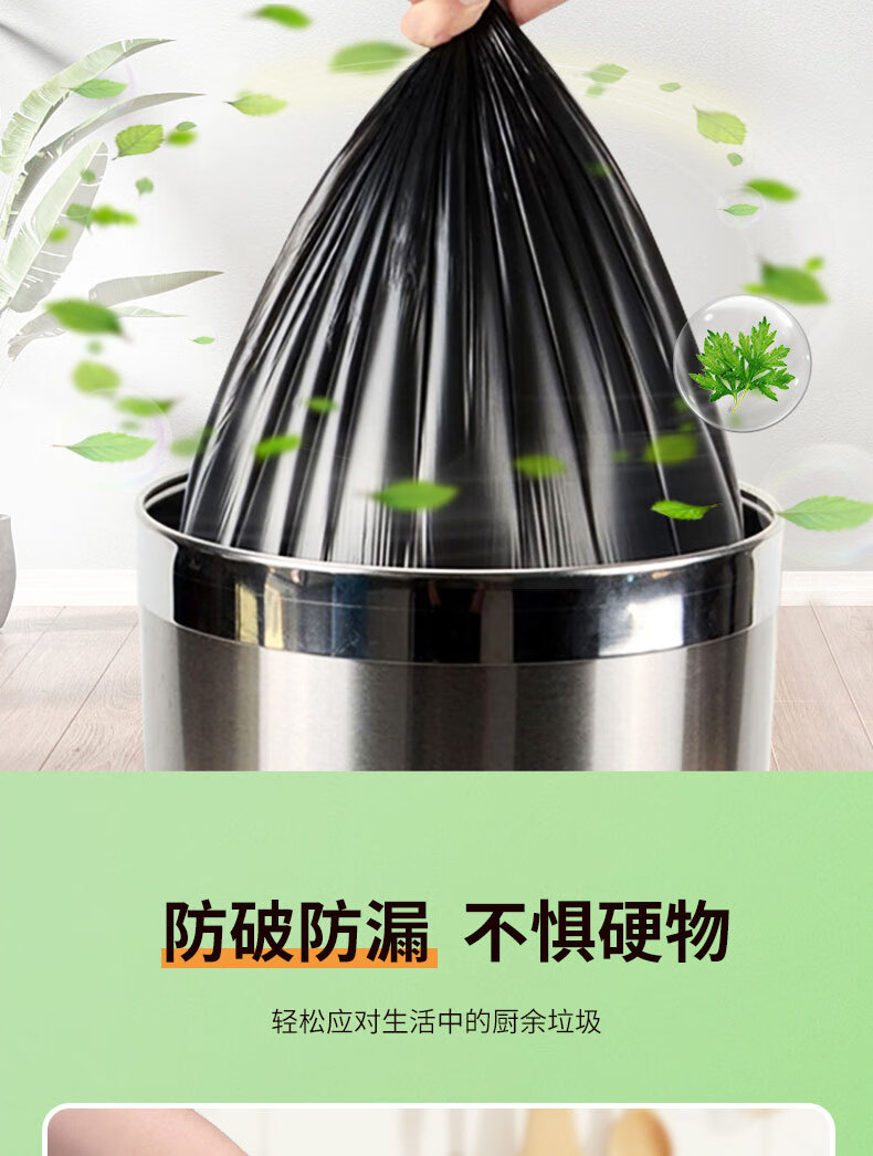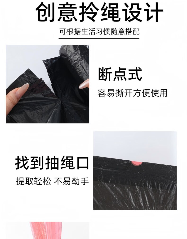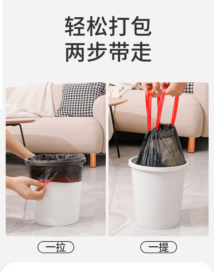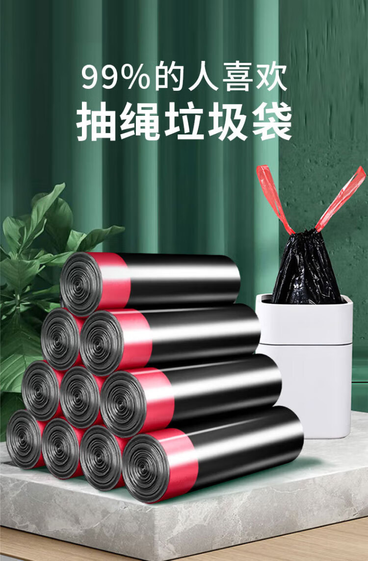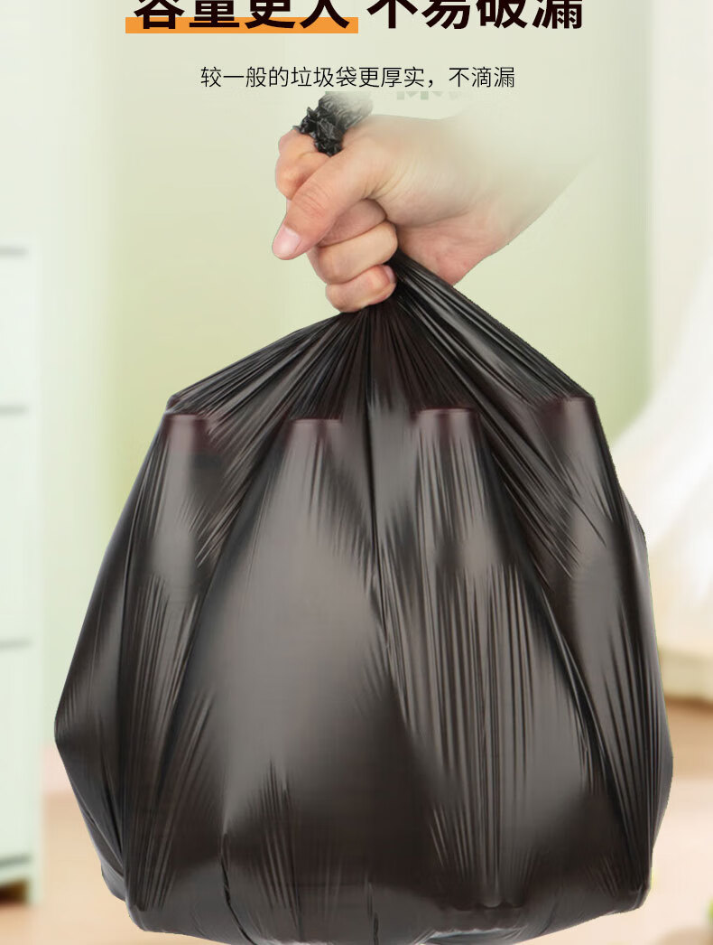 园艺抽绳垃圾袋农用加厚垃圾袋手提式厨房客厅黑色塑料袋垃圾袋子 1卷(15只)