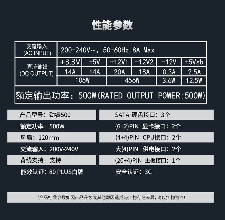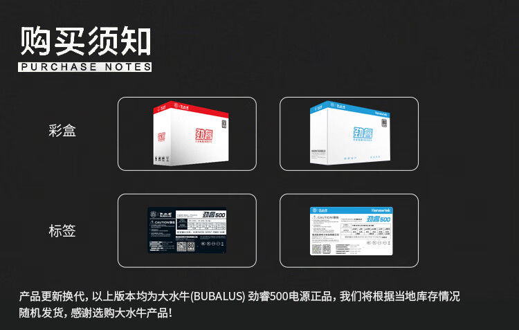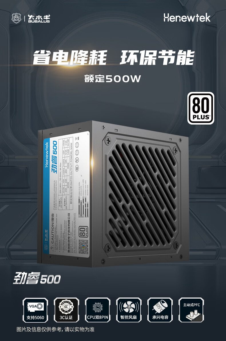 大水牛(BUBALUS)额定500W 劲睿500台式电脑主机电源(80PLUS白牌认证/主动式PFC/12CM温控风扇/支持背线/宽幅)