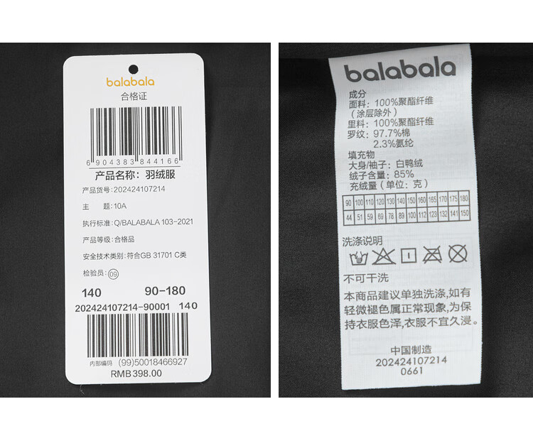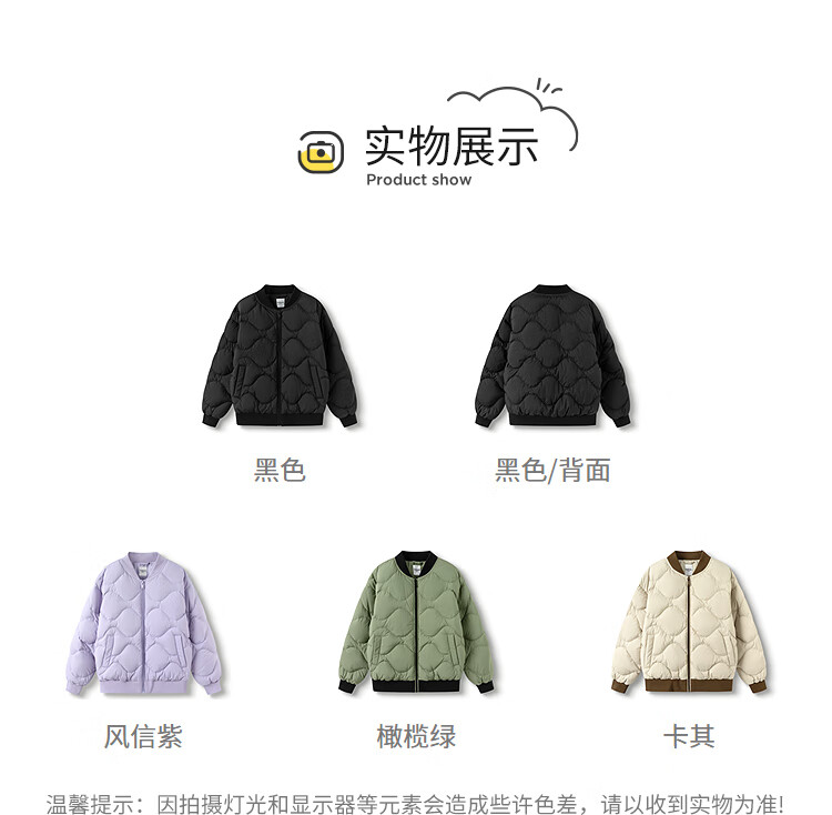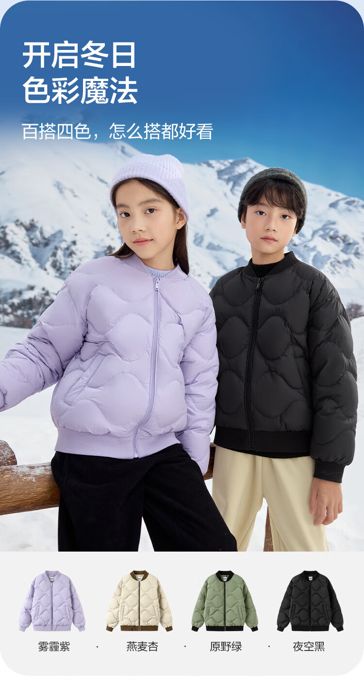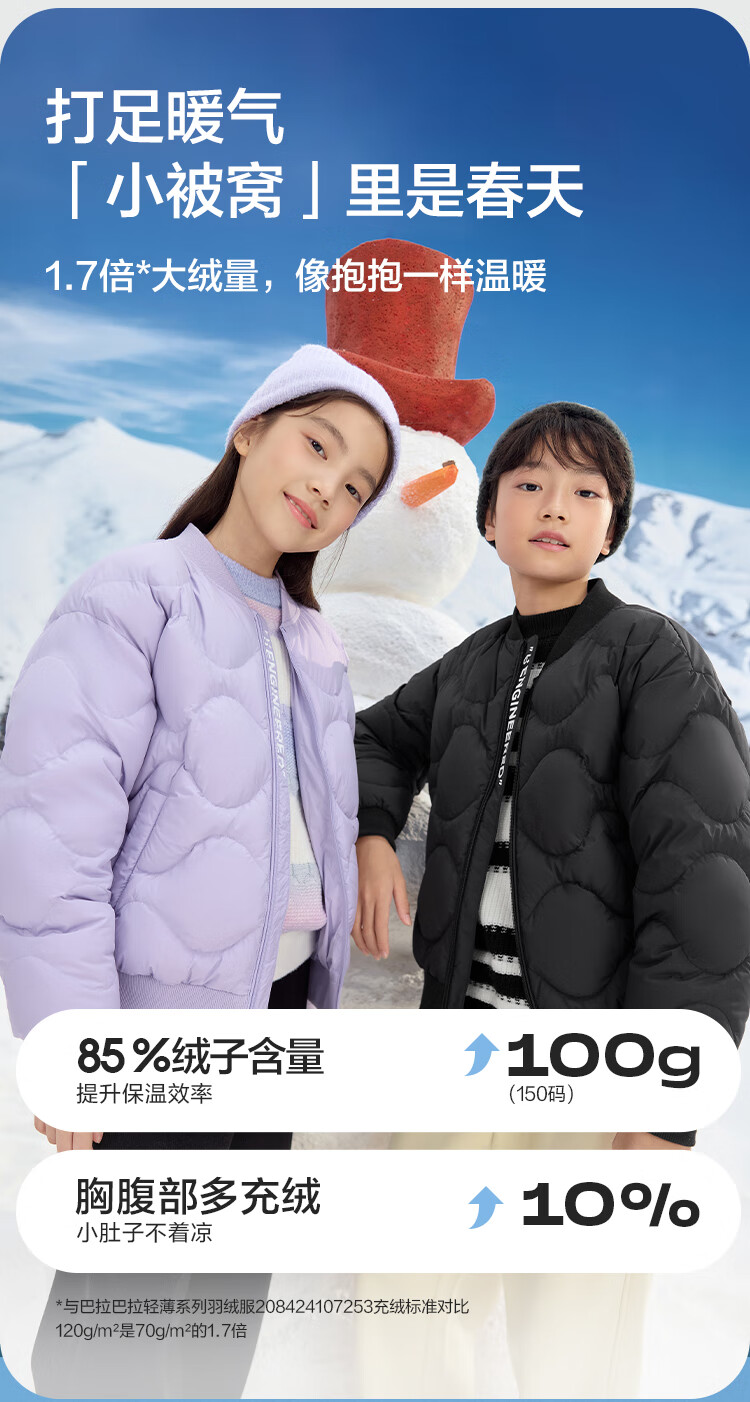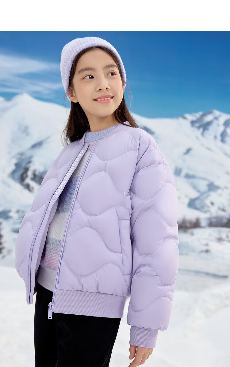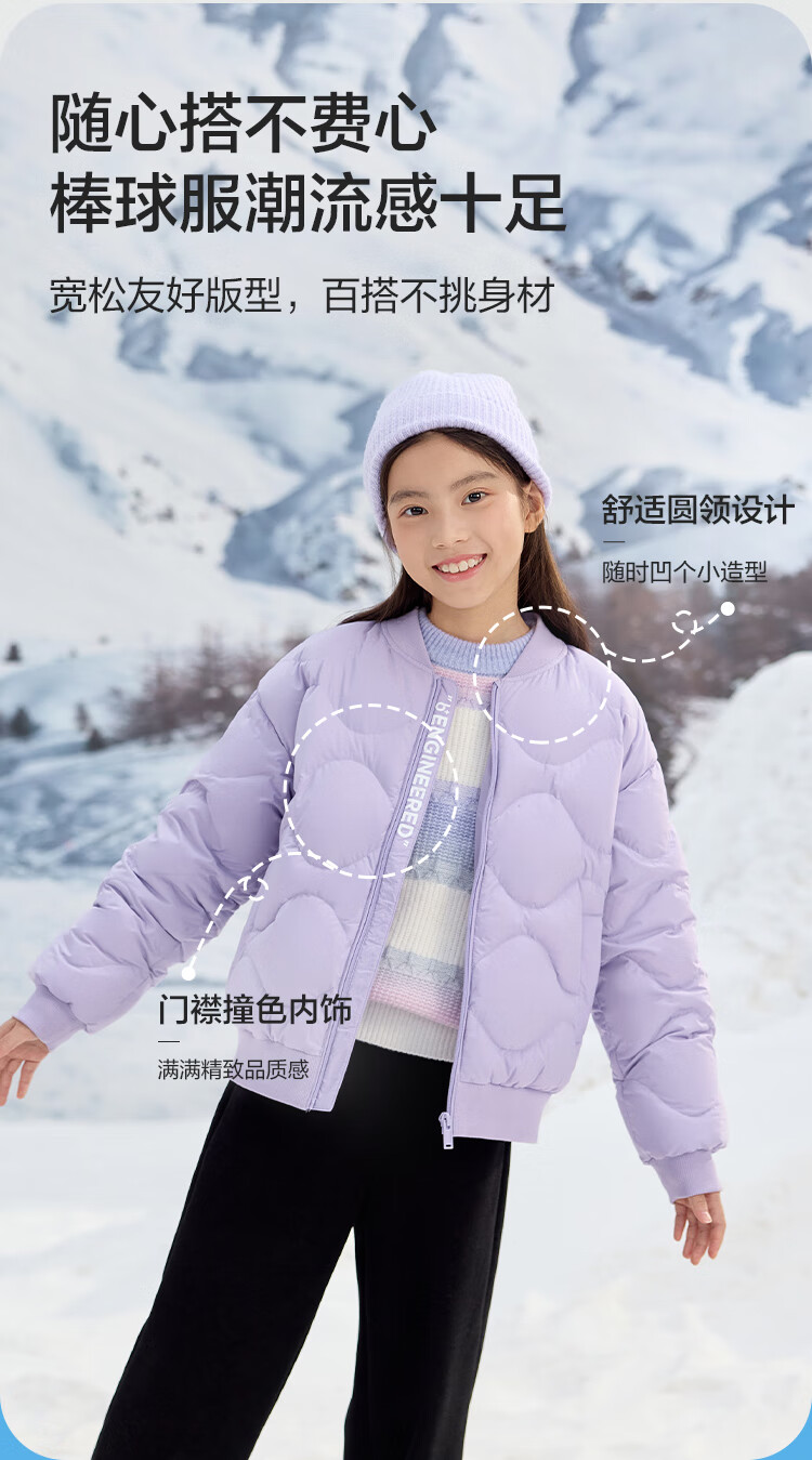 巴拉巴拉童装儿童羽绒服男童女童冬季外套防风防水棒球服时尚百搭 风信紫70601-白鸭绒 140 充绒量89g