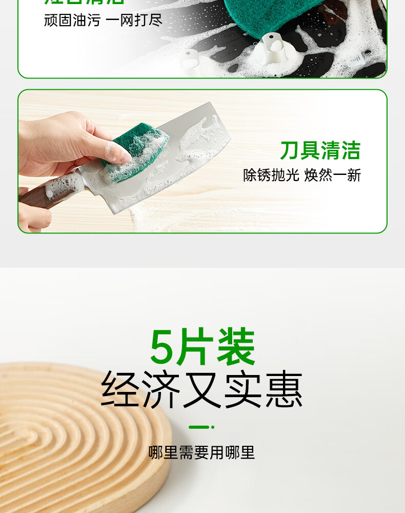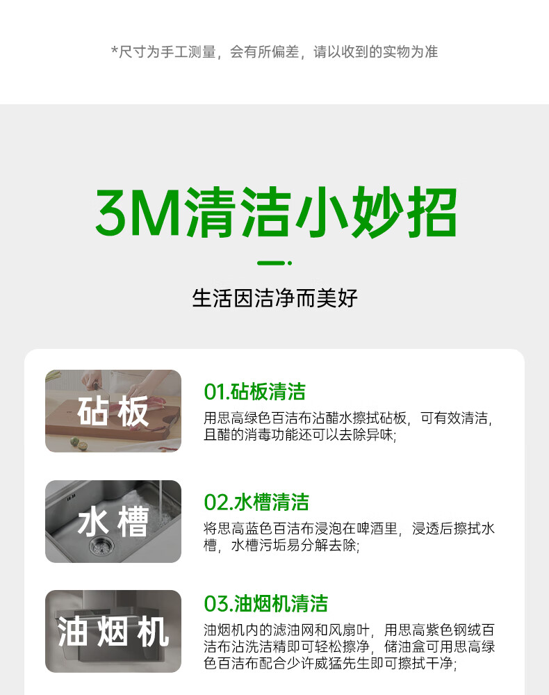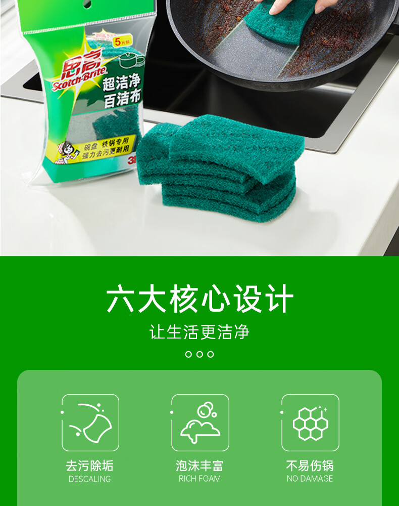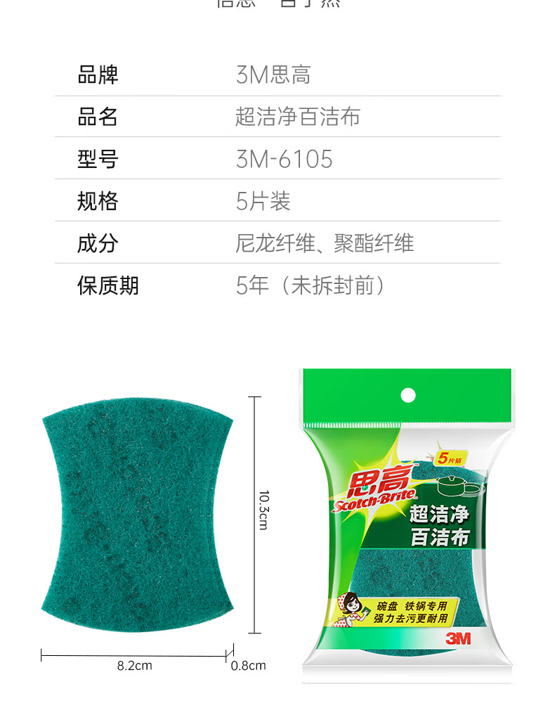 3M思高6105百洁布5片装 洗碗布厨房去油污超洁净内含金刚砂抹布