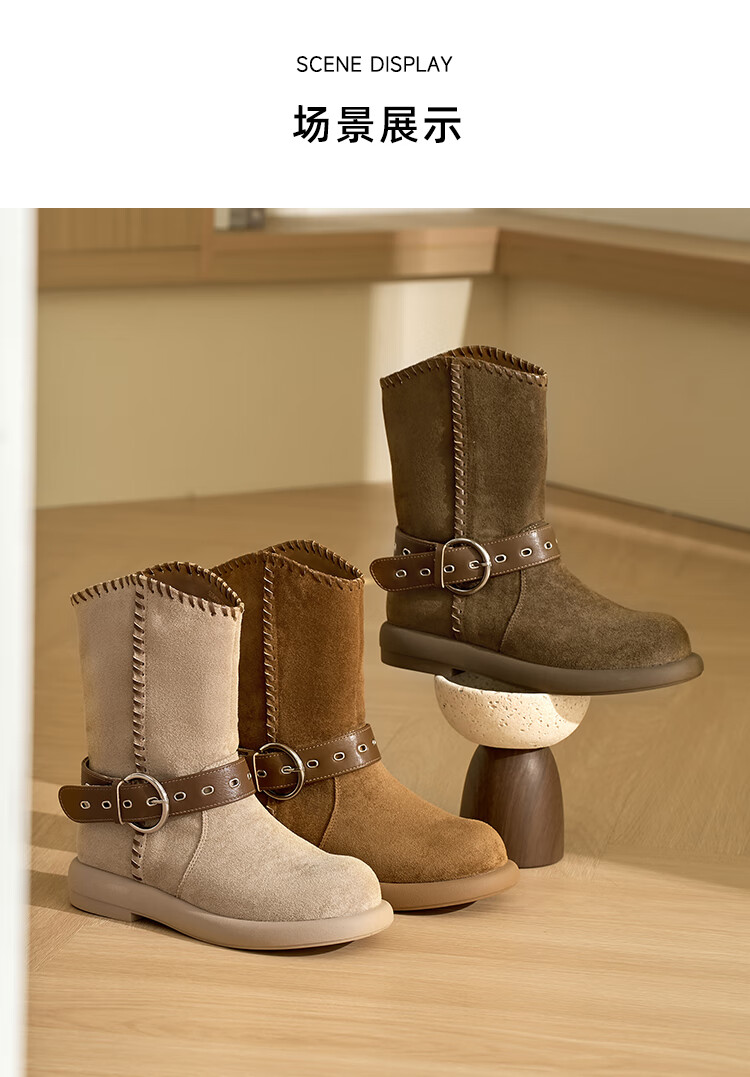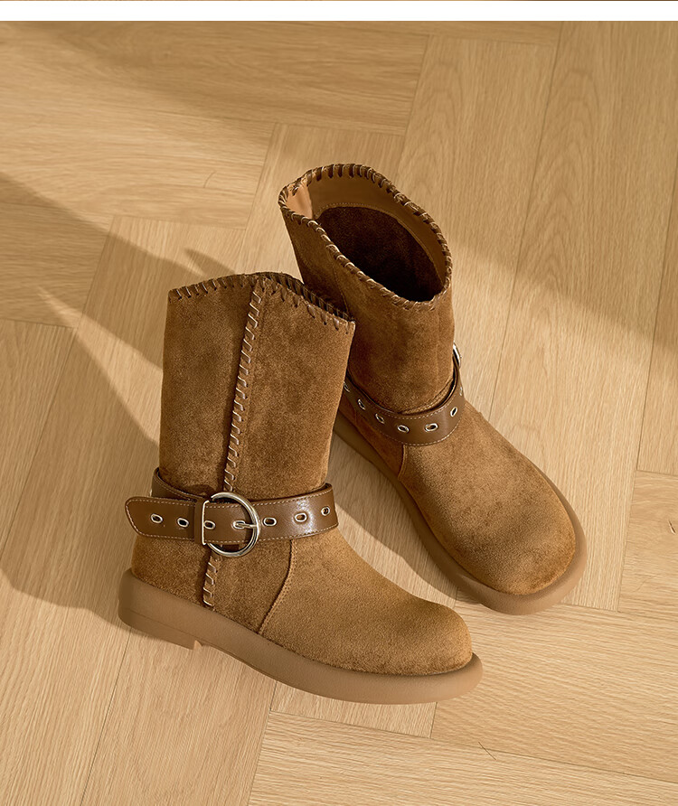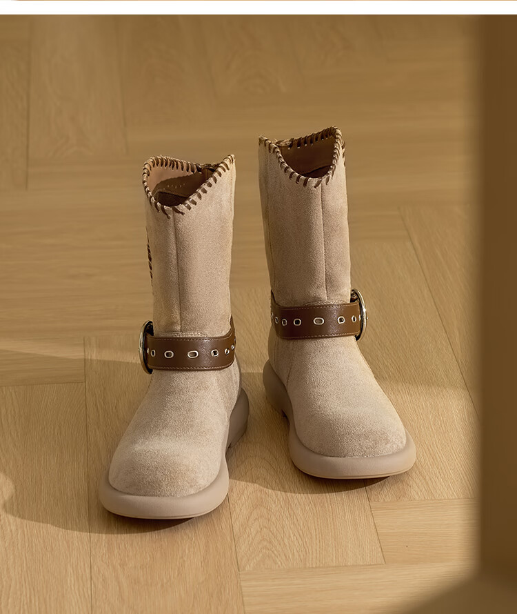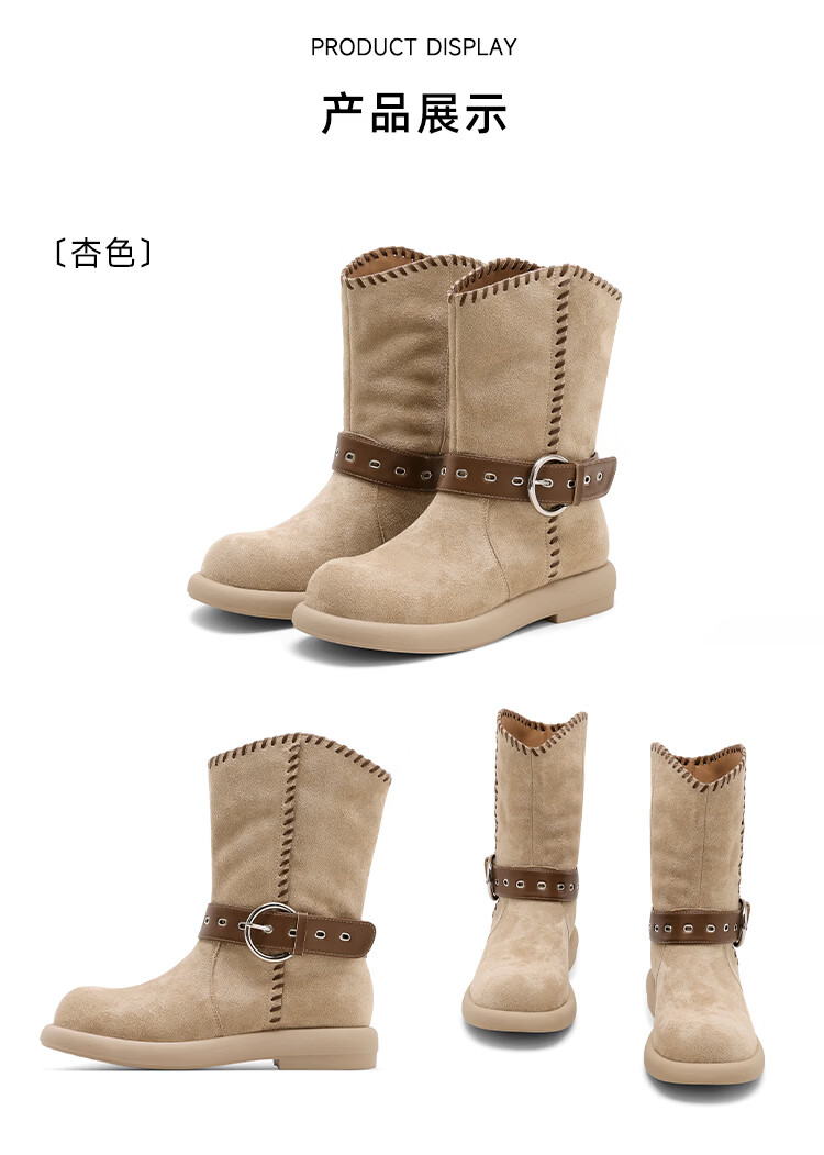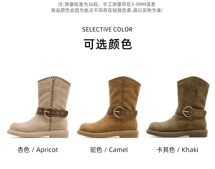 星期六厚底马丁靴女款2025新款秋冬季棕色美拉德靴子西部牛仔短靴 杏色 【时尚百搭】跟高3cm 35