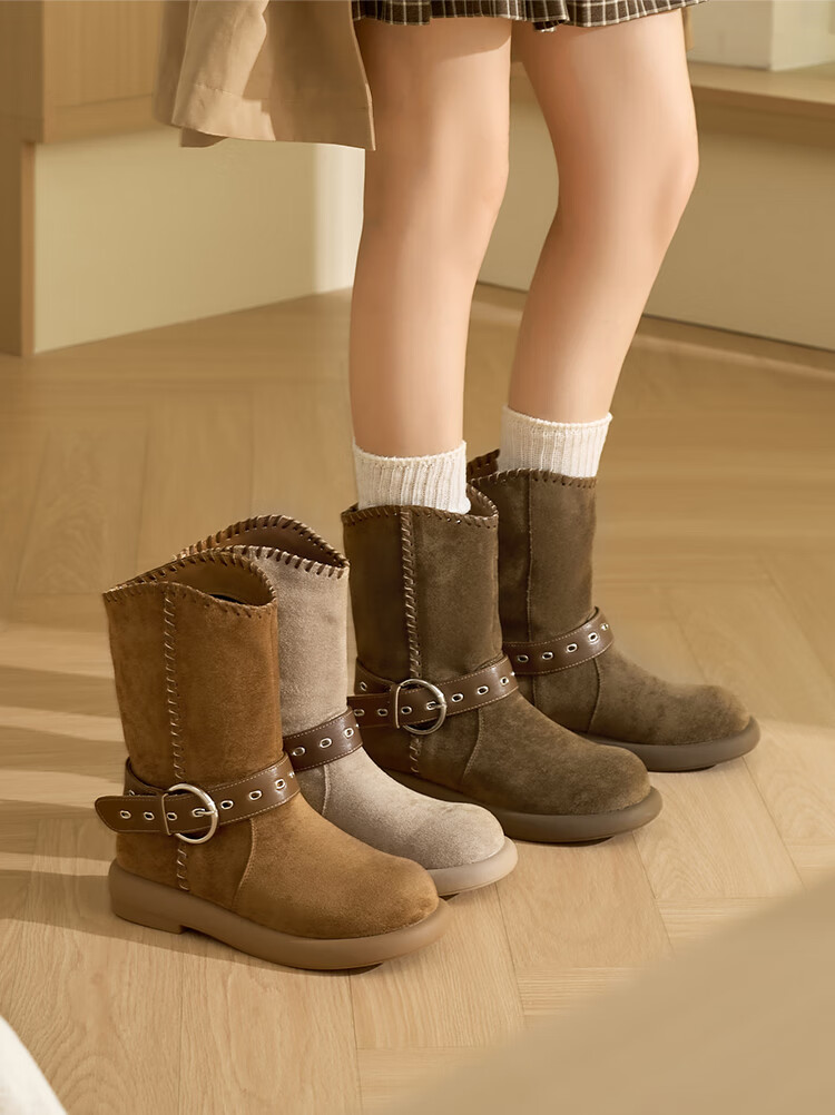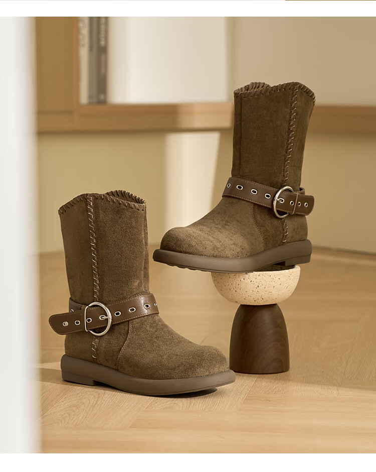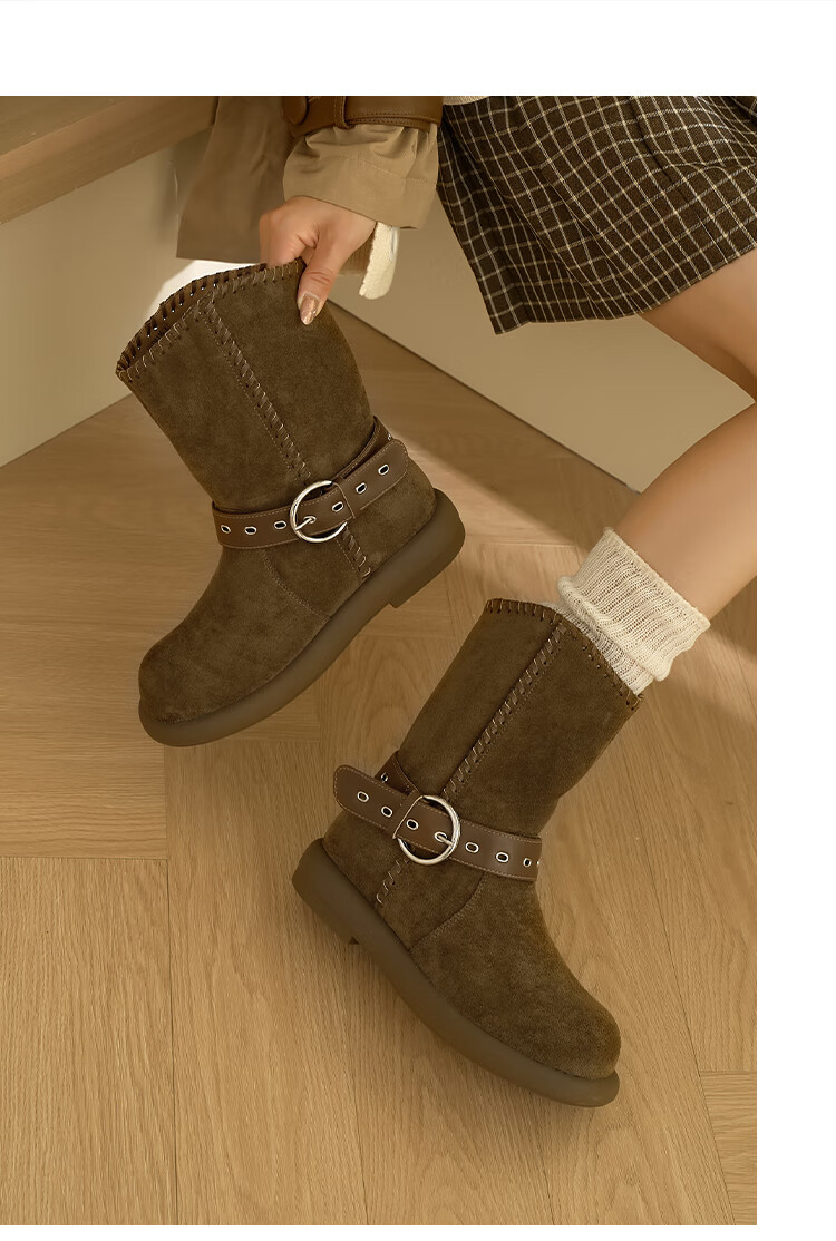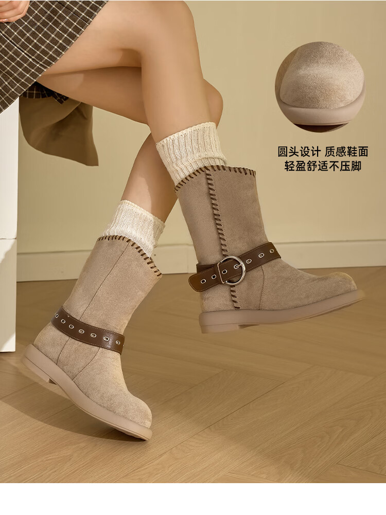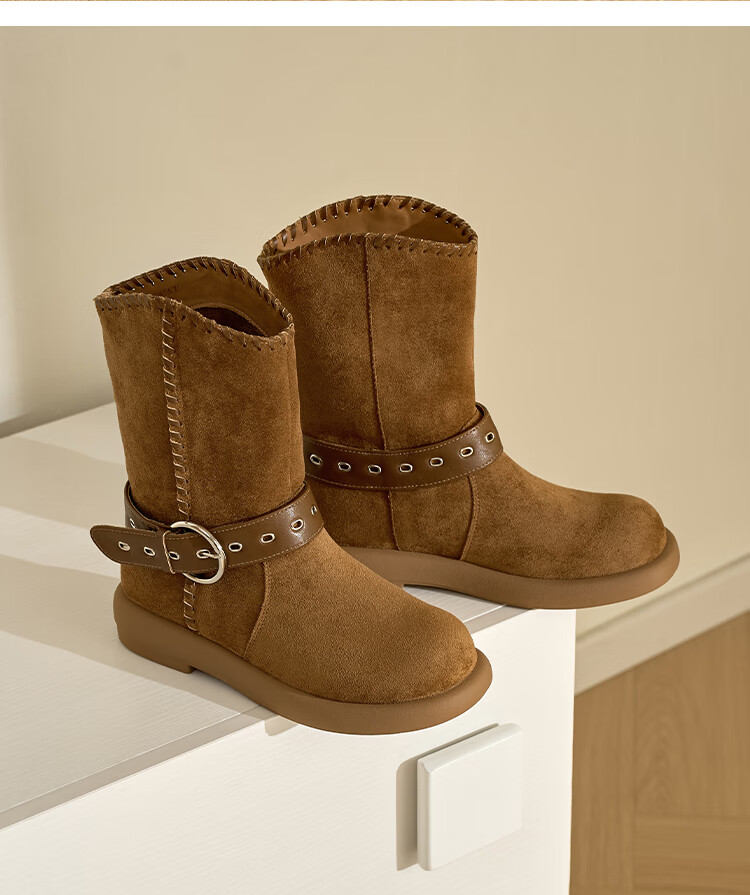 星期六厚底马丁靴女款2025新款秋冬季棕色美拉德靴子西部牛仔短靴 杏色 【时尚百搭】跟高3cm 35