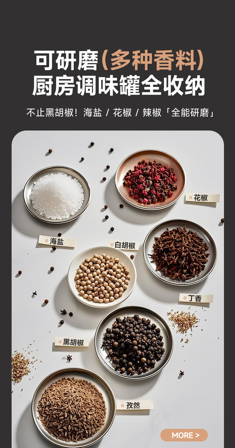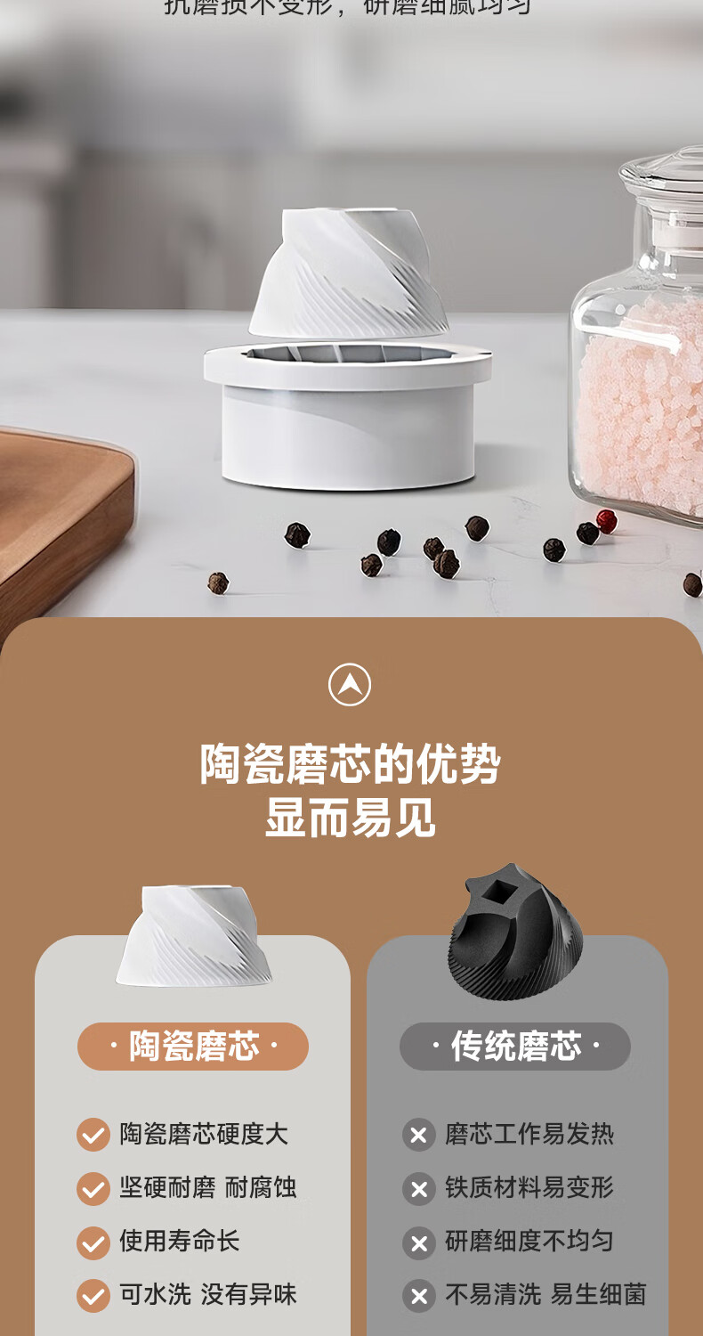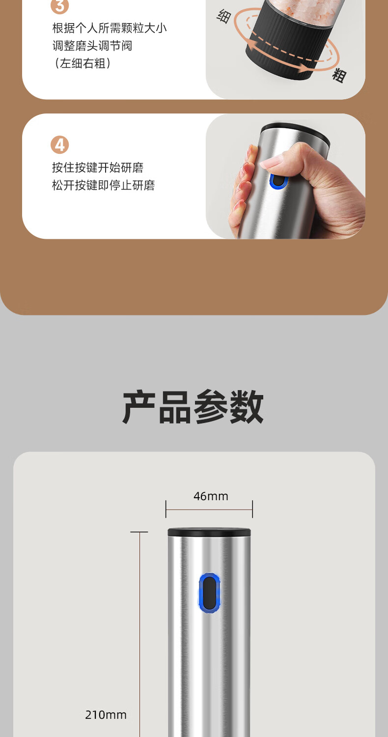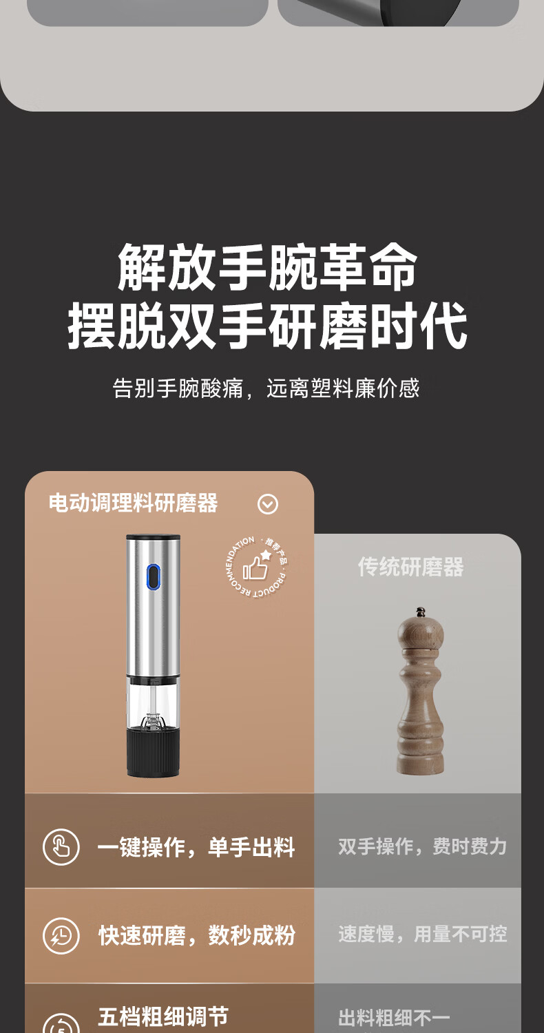双立人德国进口高端同款品质电动胡椒研磨器家用海盐花椒粉自动研磨机黑 【两个装】升级款(5档调节粗细+长续航+细腻研磨)