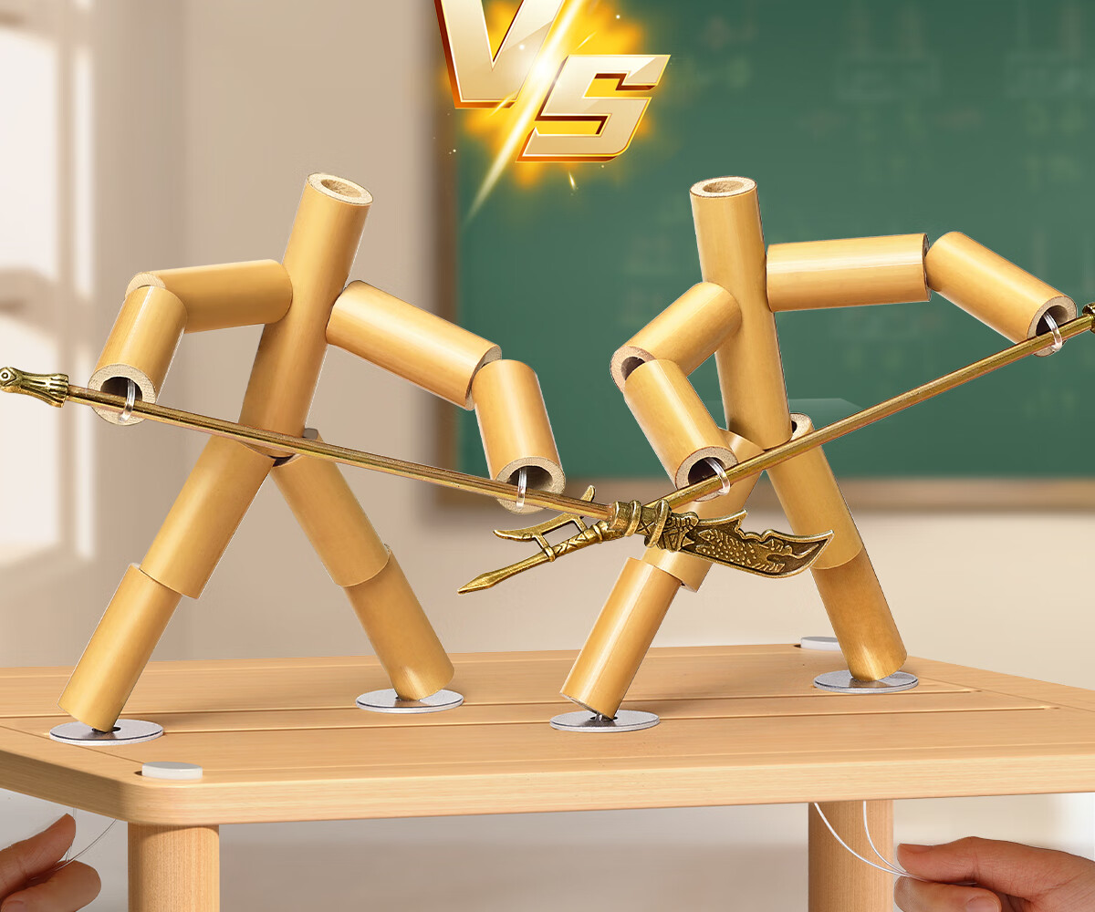 星星舟竹节人材料包六年级双人对战玩具亲子对战桌手工益智玩具擂台桌 【全套】竹节人2套+合金武器18把+PK桌