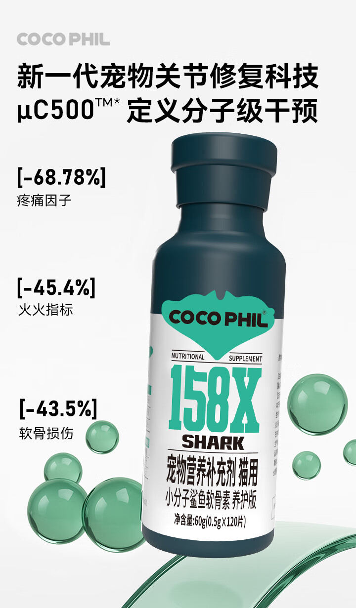 COCO PHIL158倍小分子 鲨鱼软骨素猫用 猫咪关节保护 宠物营养补充剂 猫用小分子鲨鱼软骨素专业版