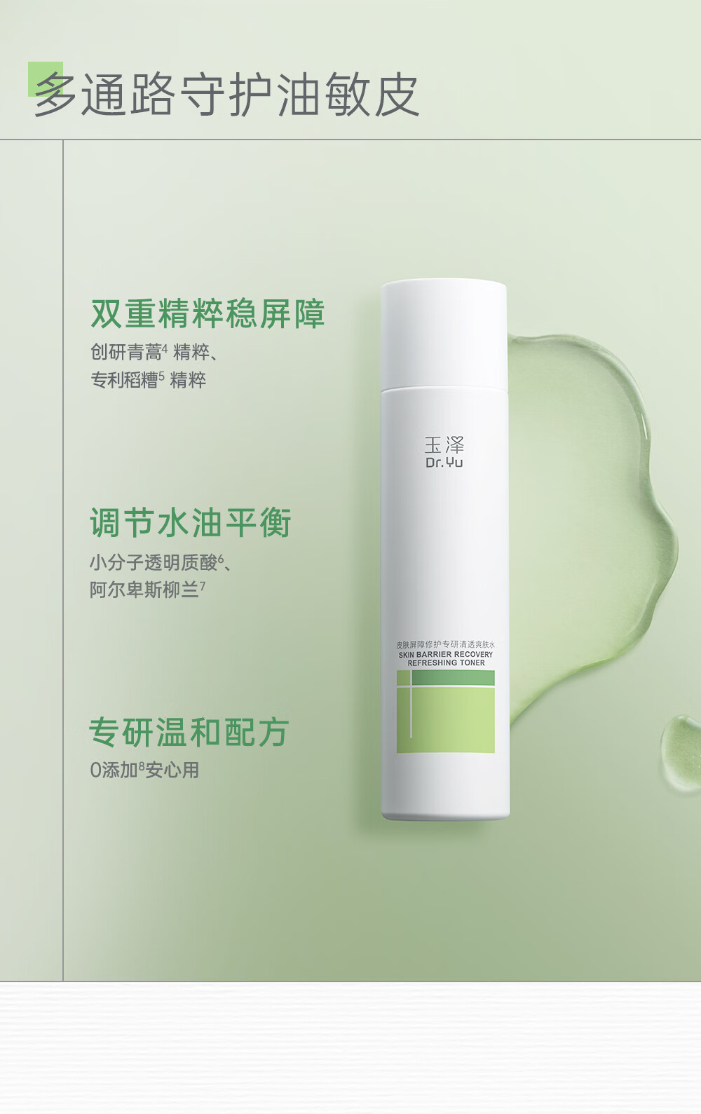 玉泽(Dr.Yu)爽肤水 皮肤屏障修护专研清透爽肤水 补水保湿平衡水油 清爽修护 第一代油敏水80ml