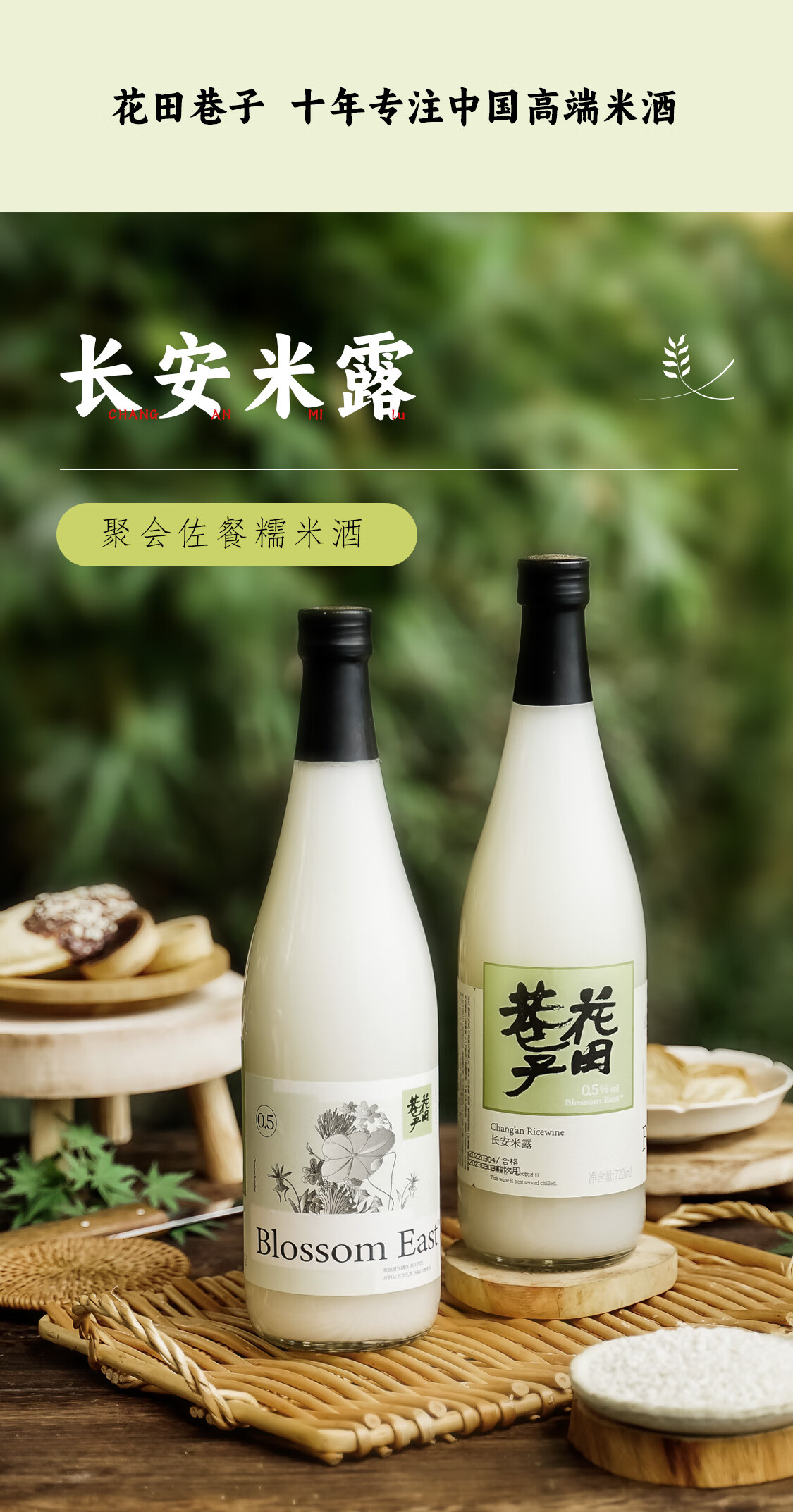 花田巷子0.5度长安米露720ml瓶装微醺糯米酒稠酒甜酒清酒烧酒 0.5度 720mL 2瓶