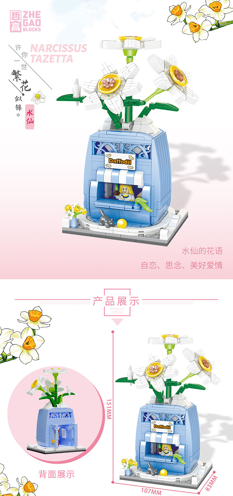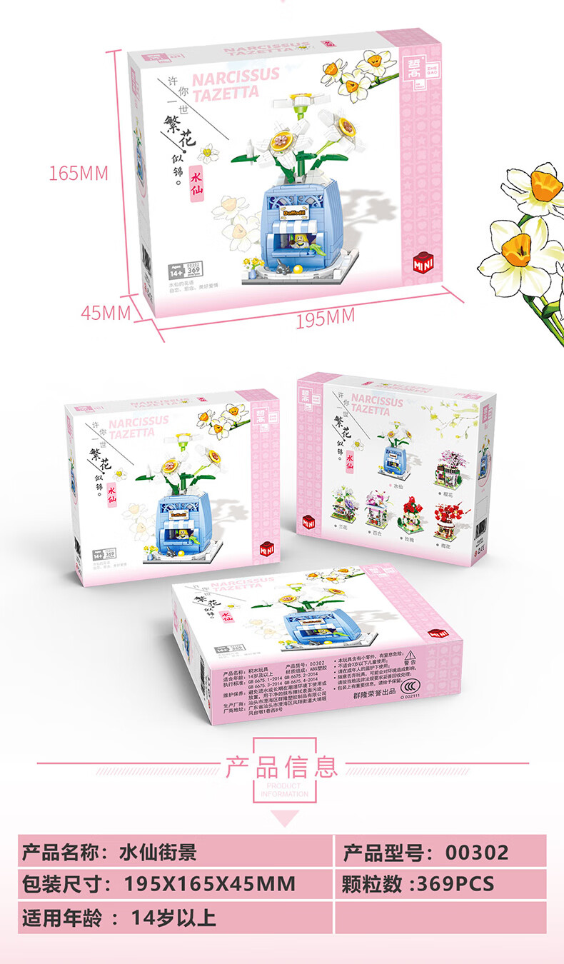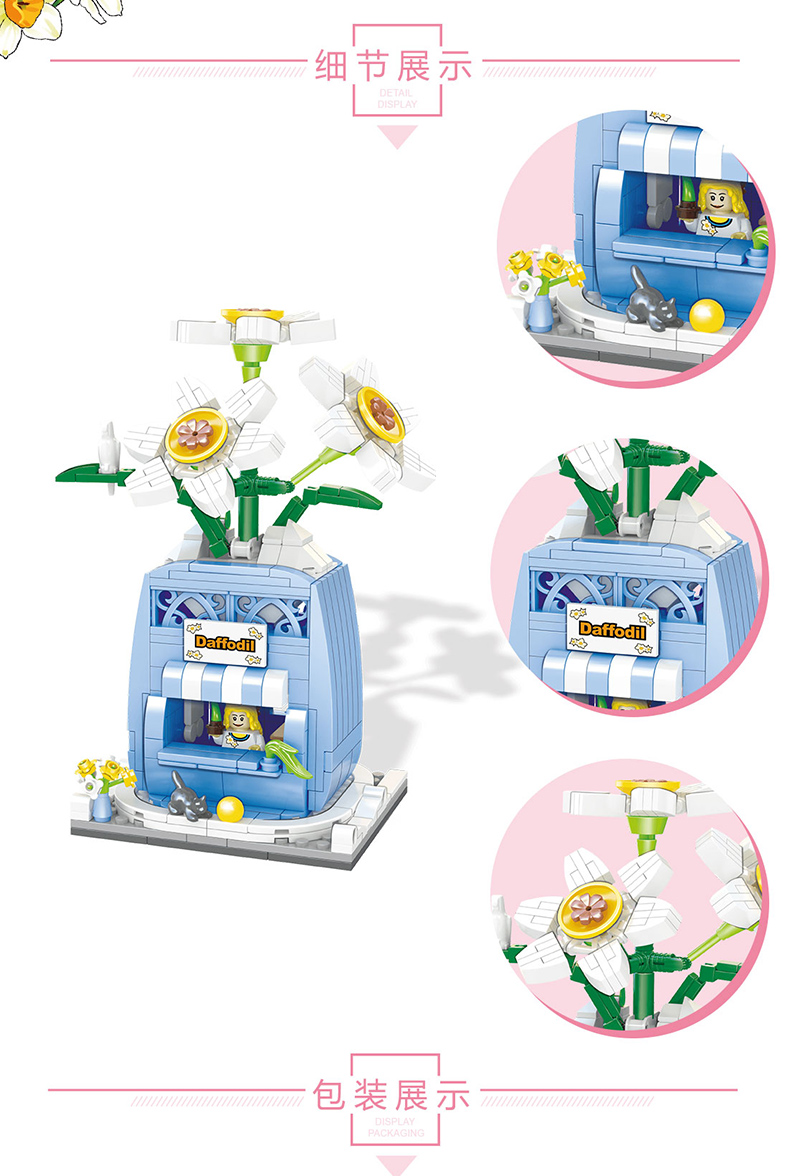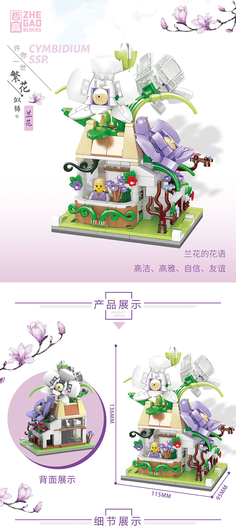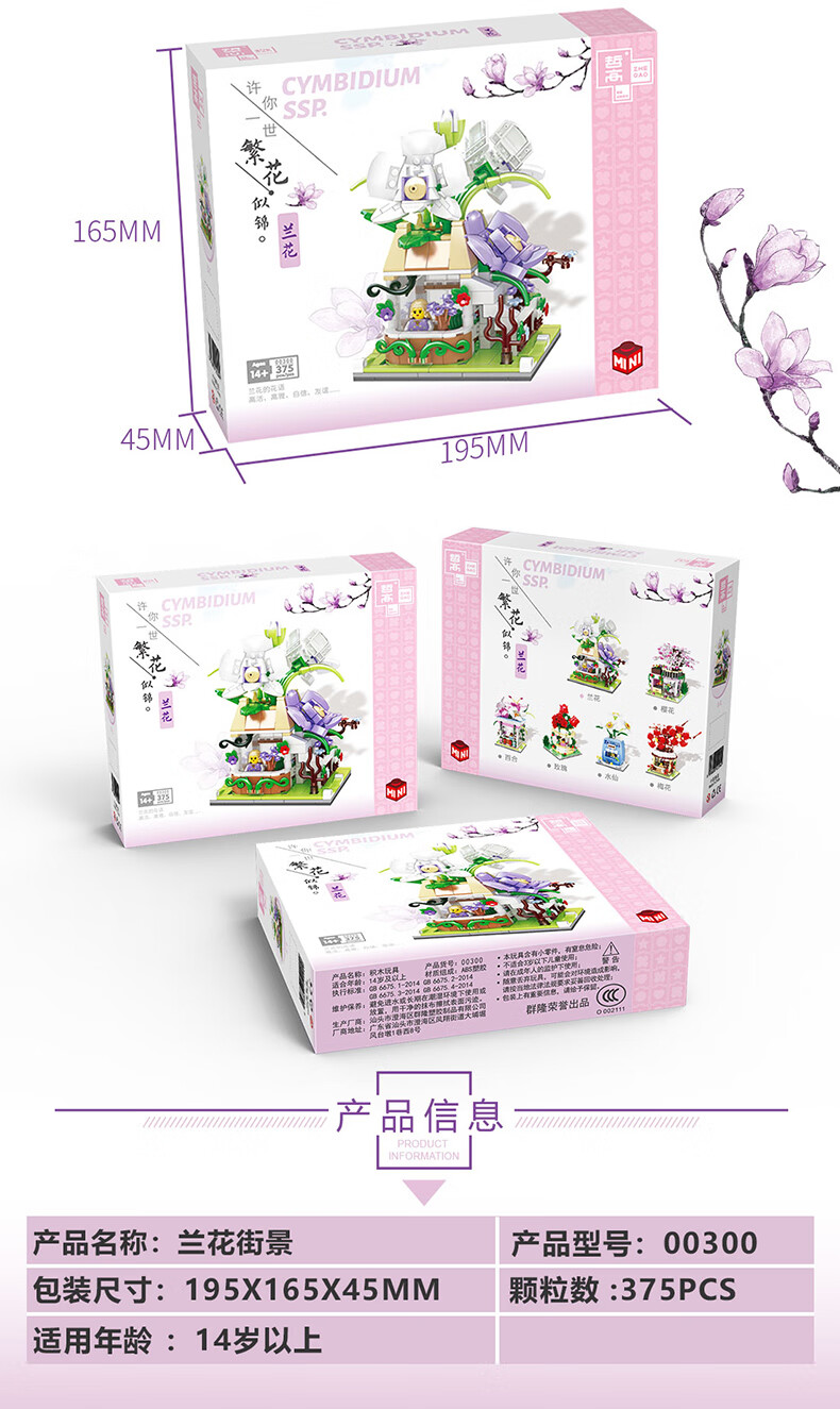 哲高 积木拼装玫瑰花店街景小颗粒鲜花小店玩具送女友女孩生日礼物 00300-兰花街景-375PCS