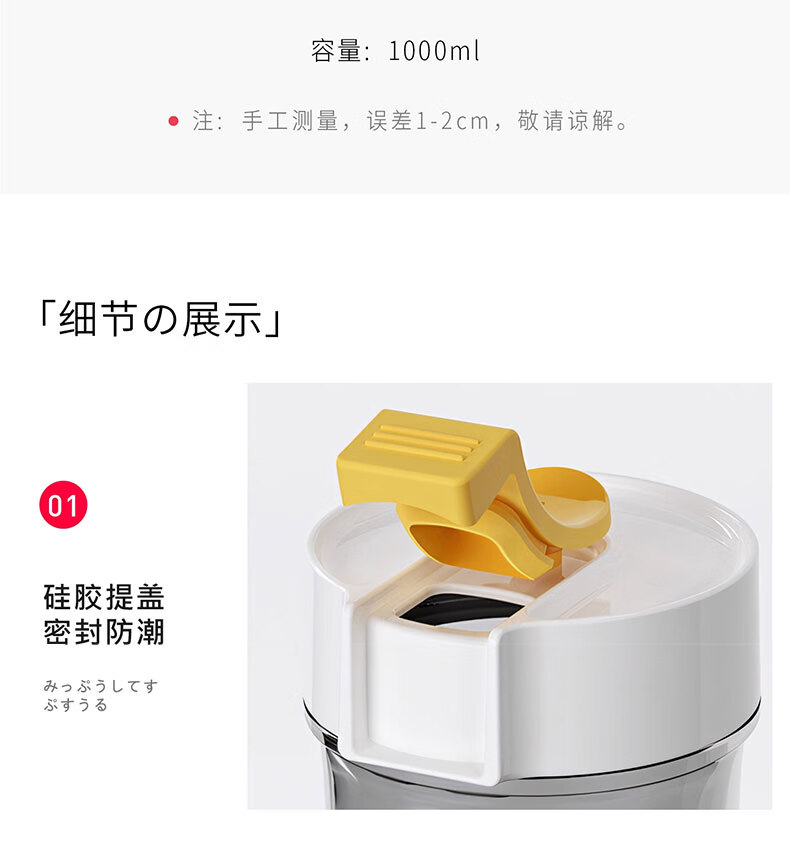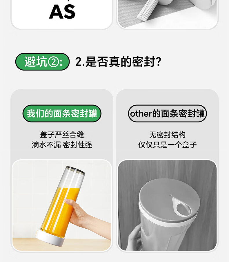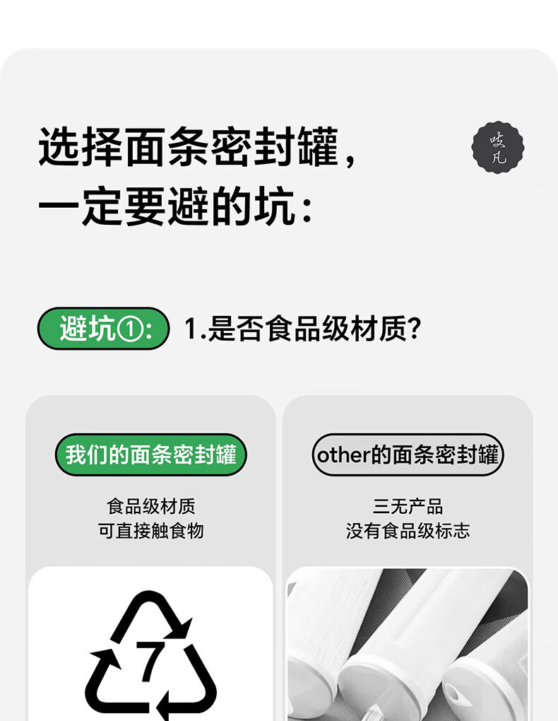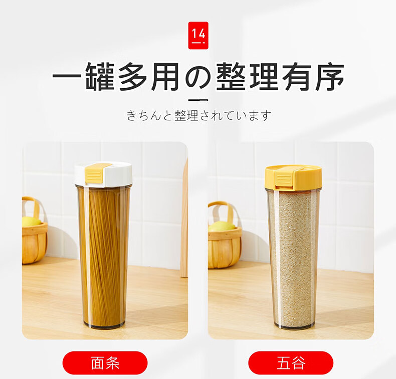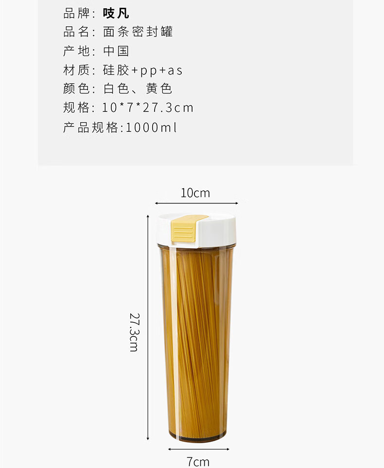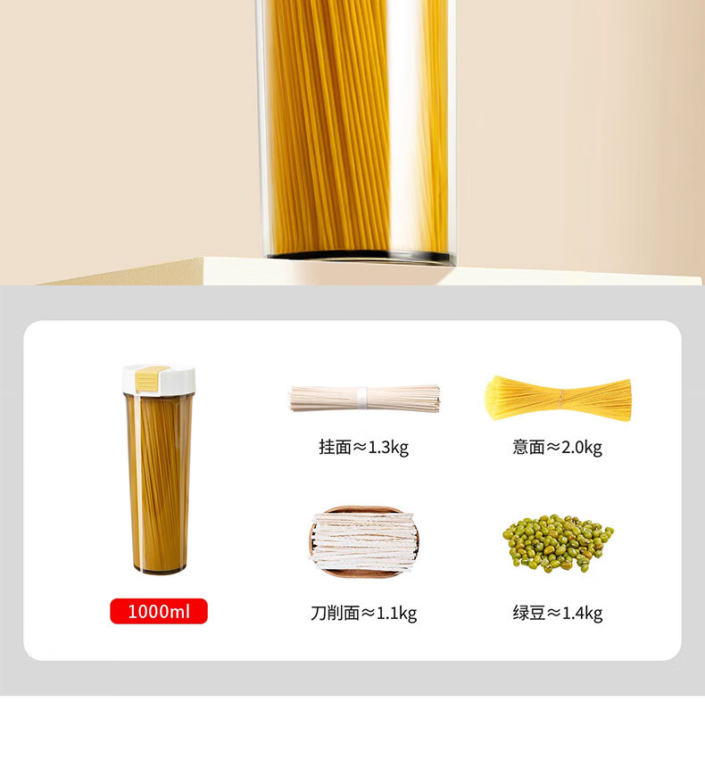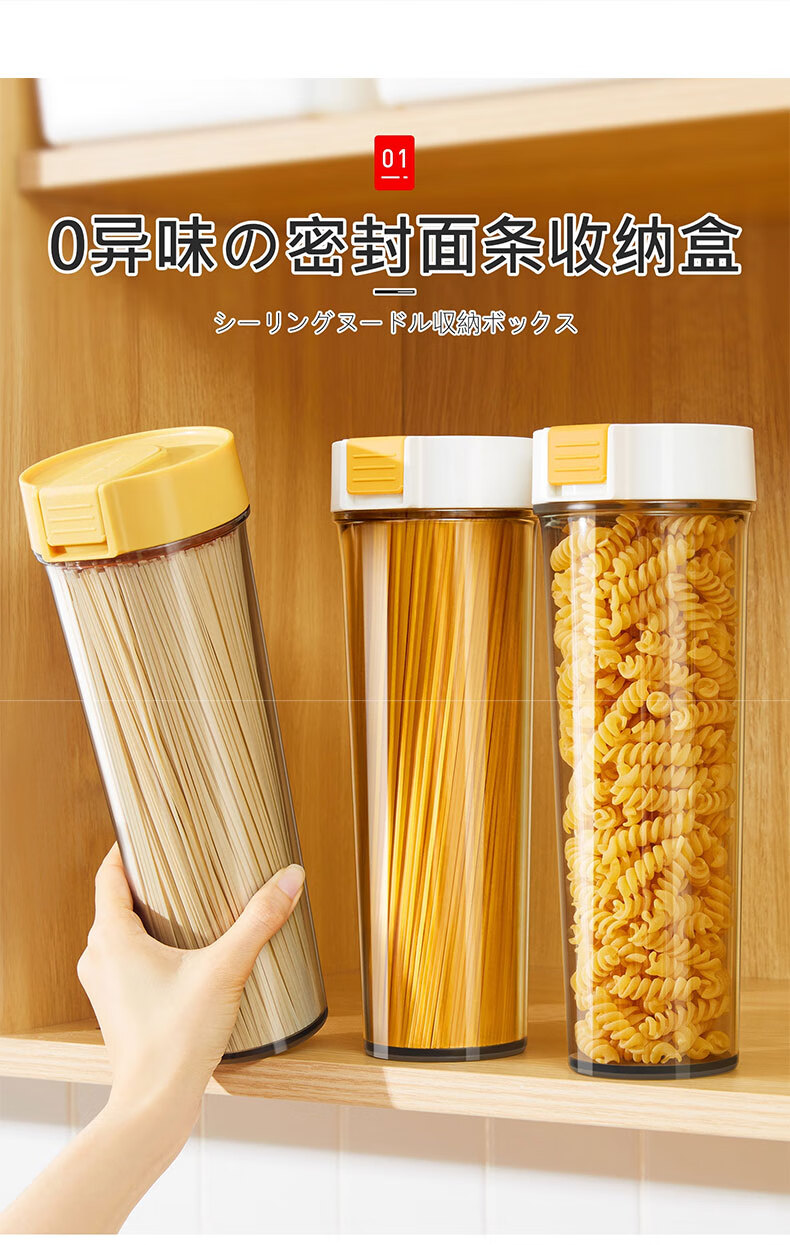 吱凡日本面条收纳盒食品级挂面收纳桶厨房家用专用装面条的密封盒罐筒 白色【2个装】1000ml【密封防虫】