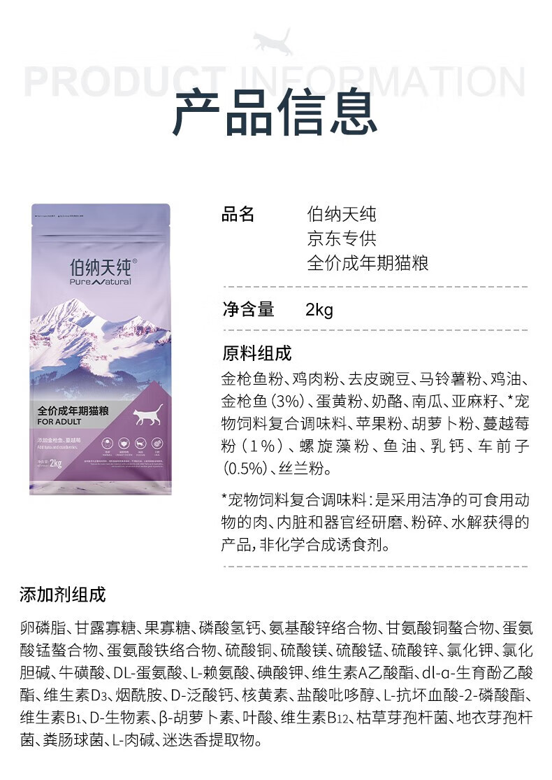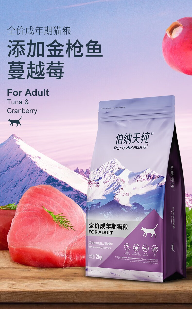 伯纳天纯经典优选宠物猫粮专供款全价成猫粮通用 成猫金枪鱼口味2kg*3