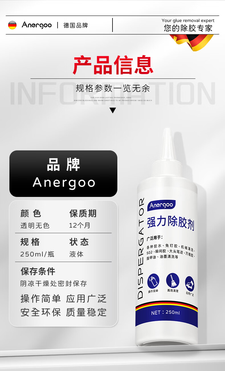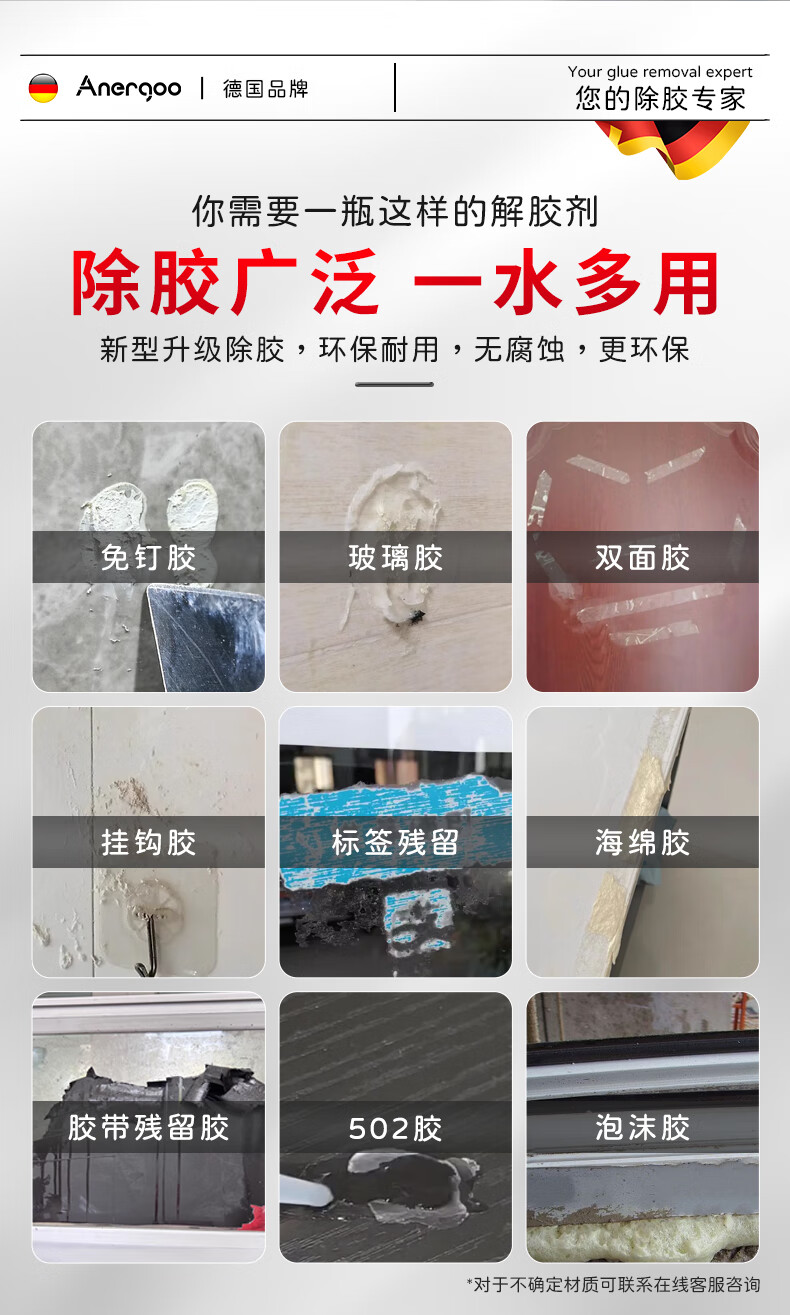 ANERGOO 安尔固免钉胶去除剂 502解胶剂强力万能溶胶剂京东自营双面胶清洁瓷砖发泡胶玻璃胶不干胶除胶剂去胶神器