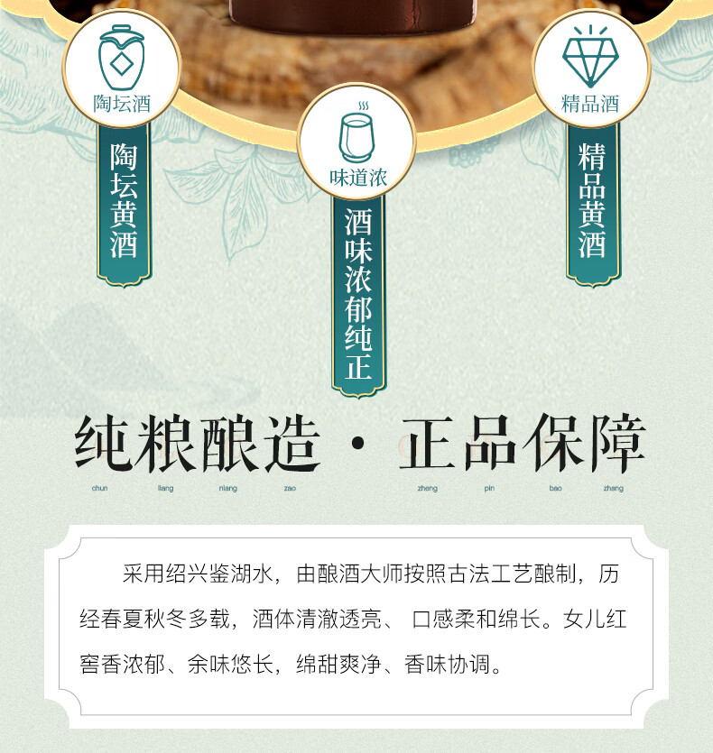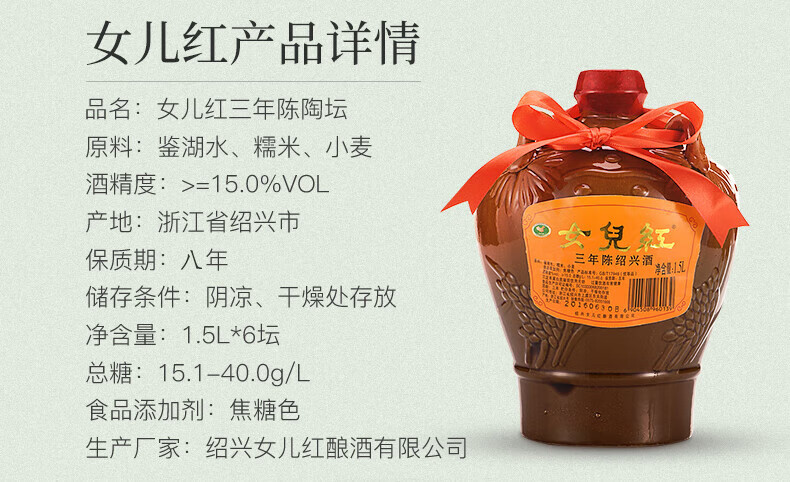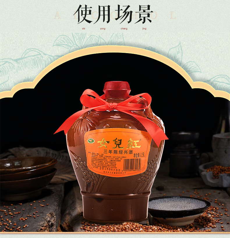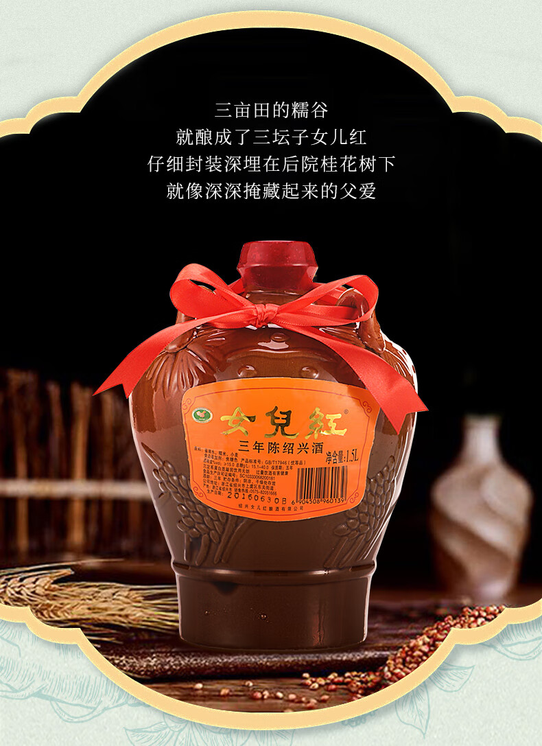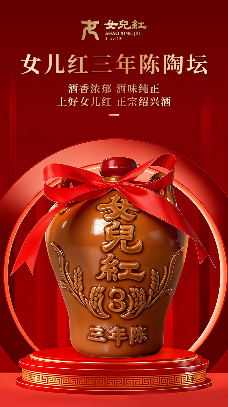 女兒红 陶坛三年 半干型 绍兴黄酒 1.5L*6坛 整箱装 小坛冬酿 送礼 年货