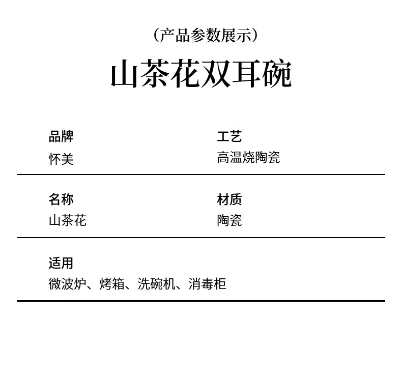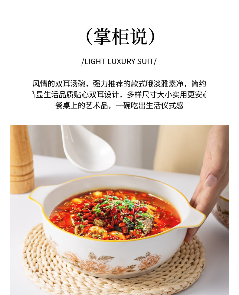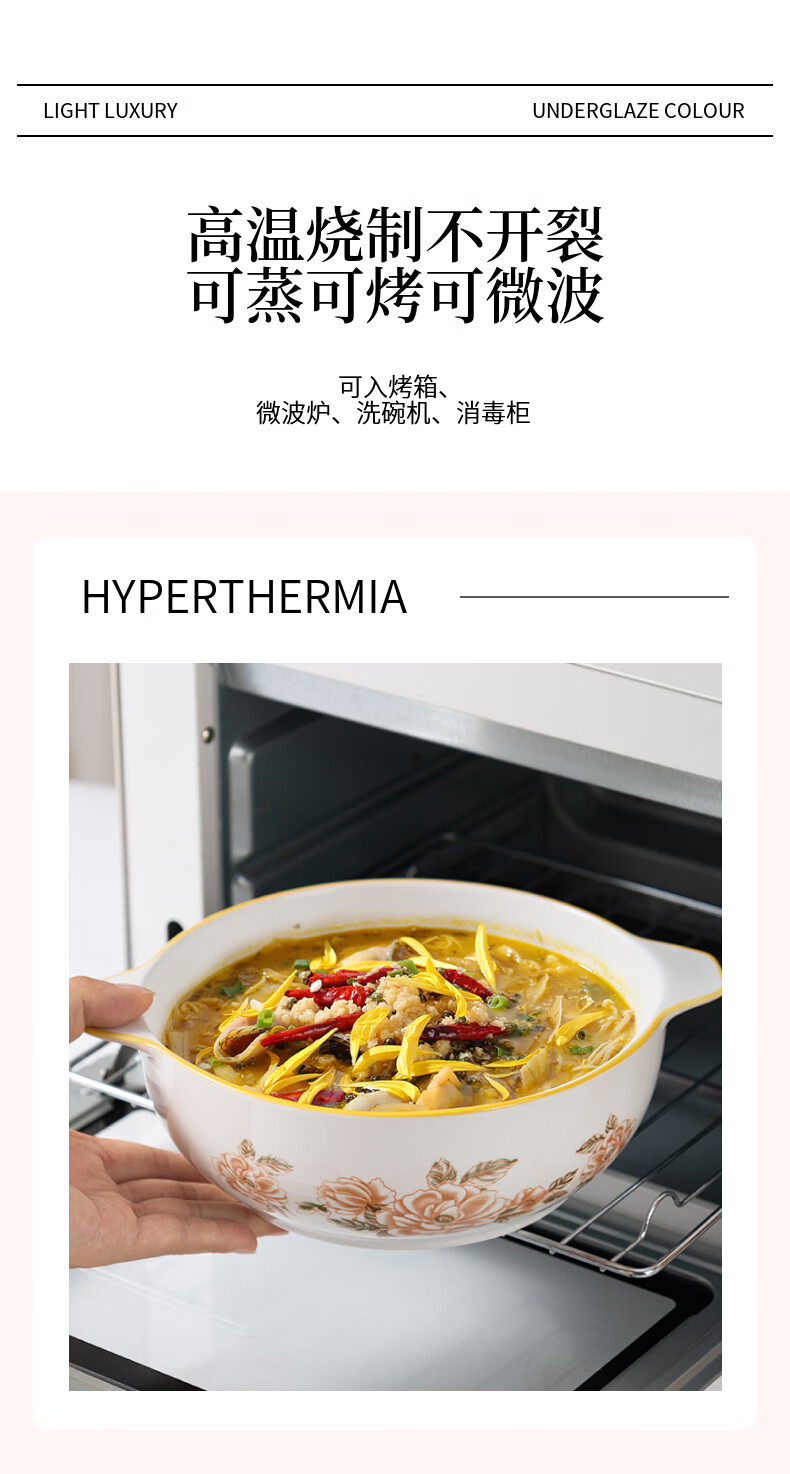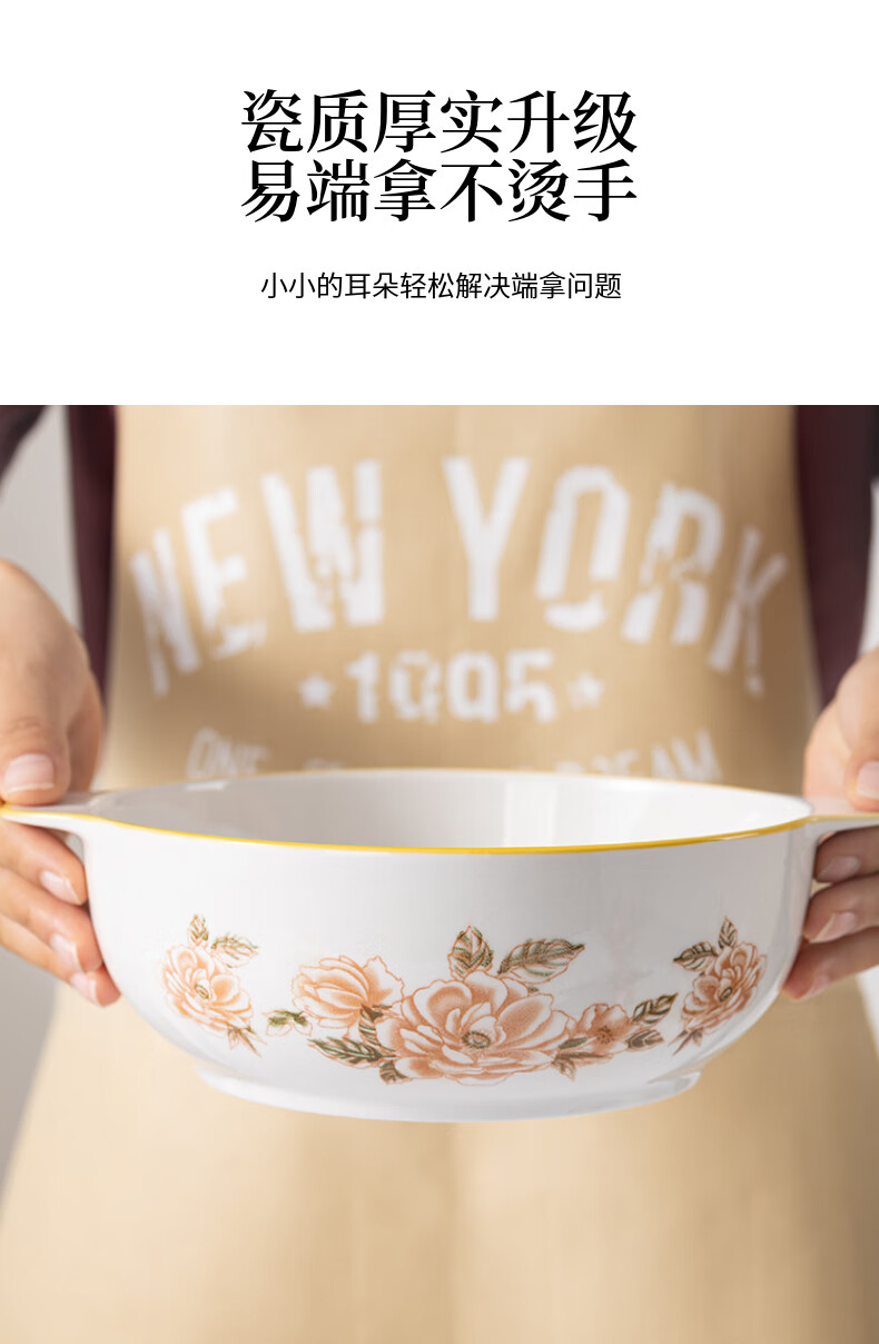 山茶花双耳加厚汤碗9.5英寸耐高温陶瓷水煮鱼碗大盆碗酸菜鱼汤碗 山茶花9.5英寸大汤碗【1个装】 无规格
