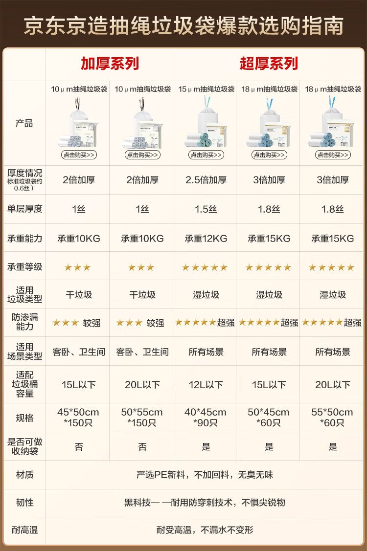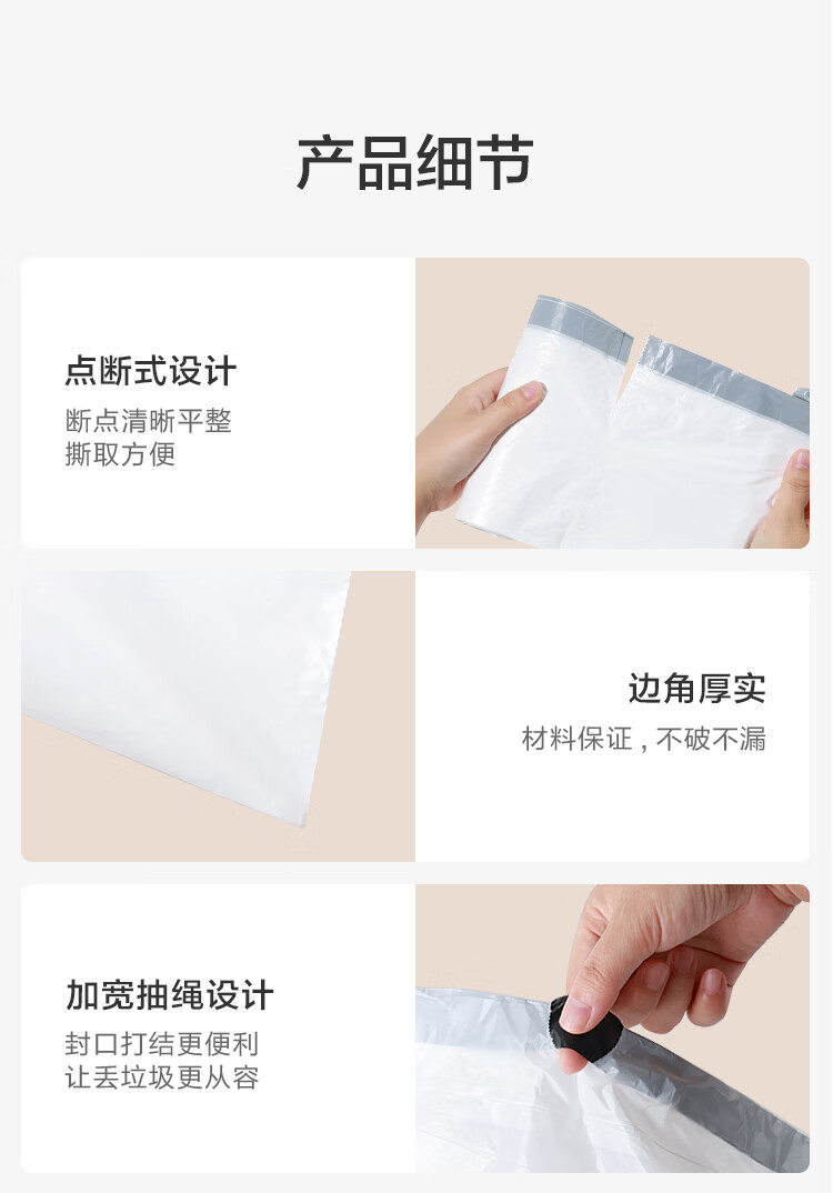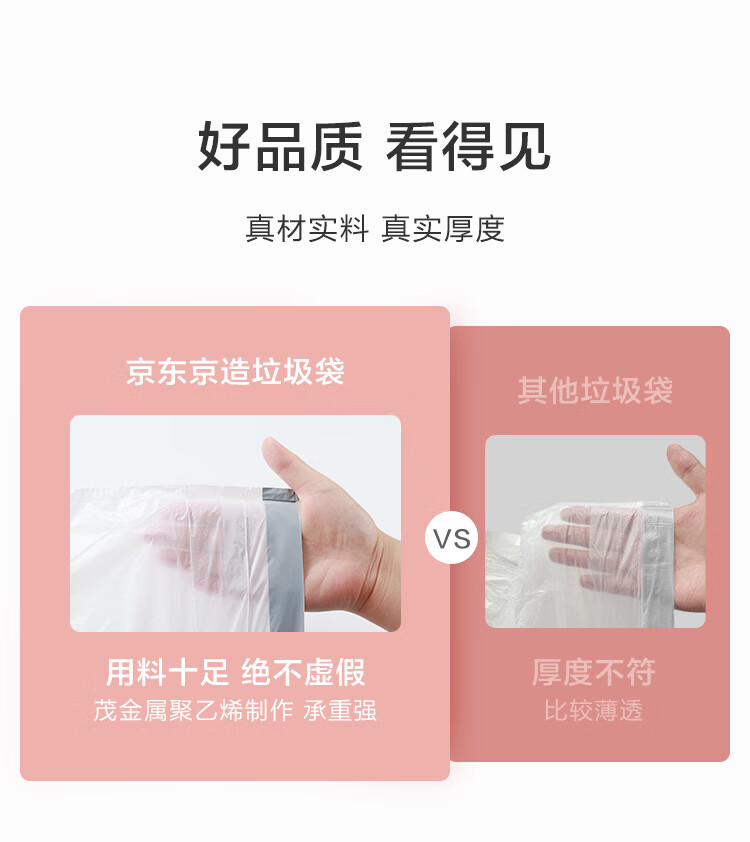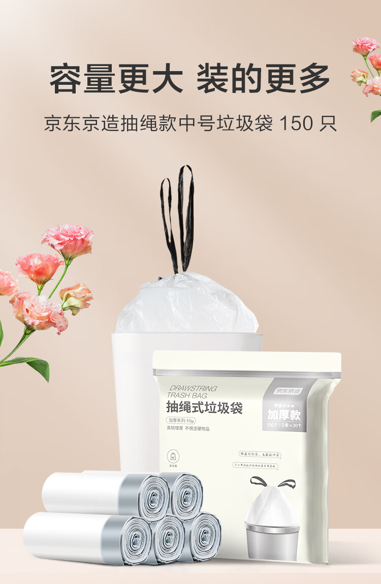 京东京造 抽绳式垃圾袋45*50cm*150只 10μ1丝 手提厨房家用加厚袋中号
