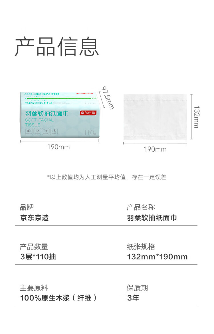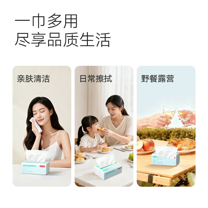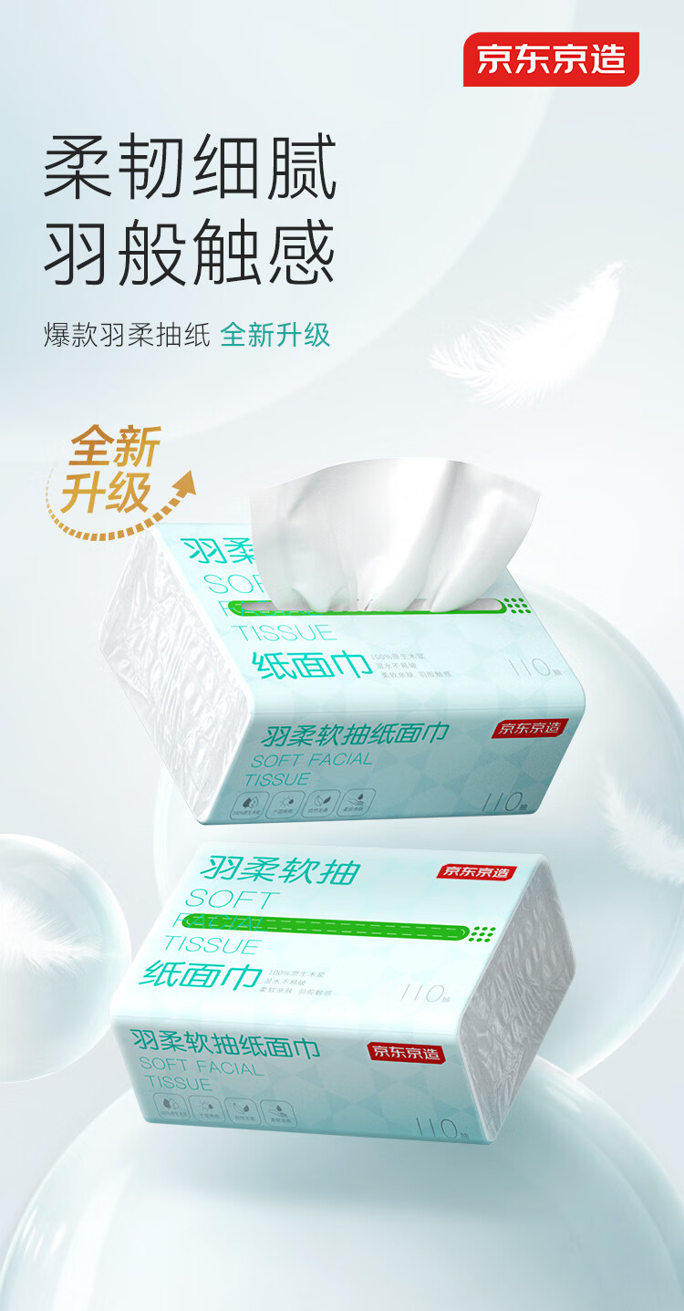 京东京造 羽柔纸巾 3层110抽*24包 卫生纸 餐巾纸擦手纸 整箱抽纸京东自营