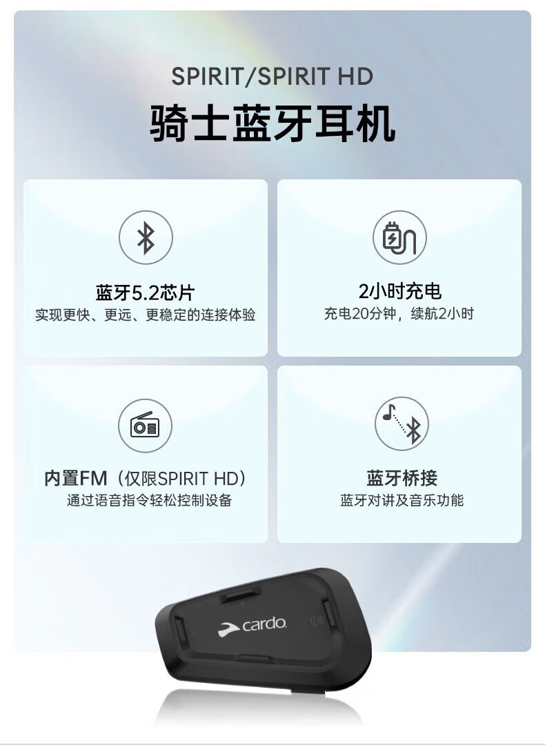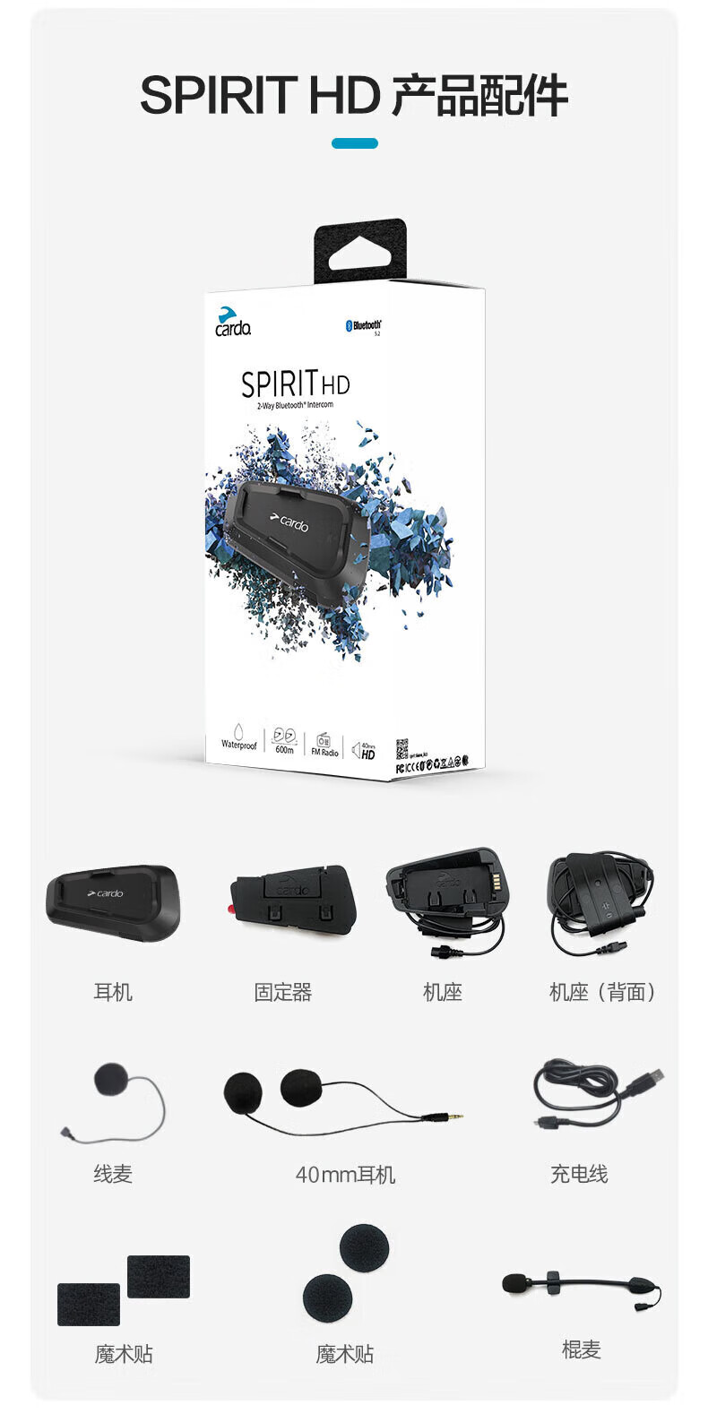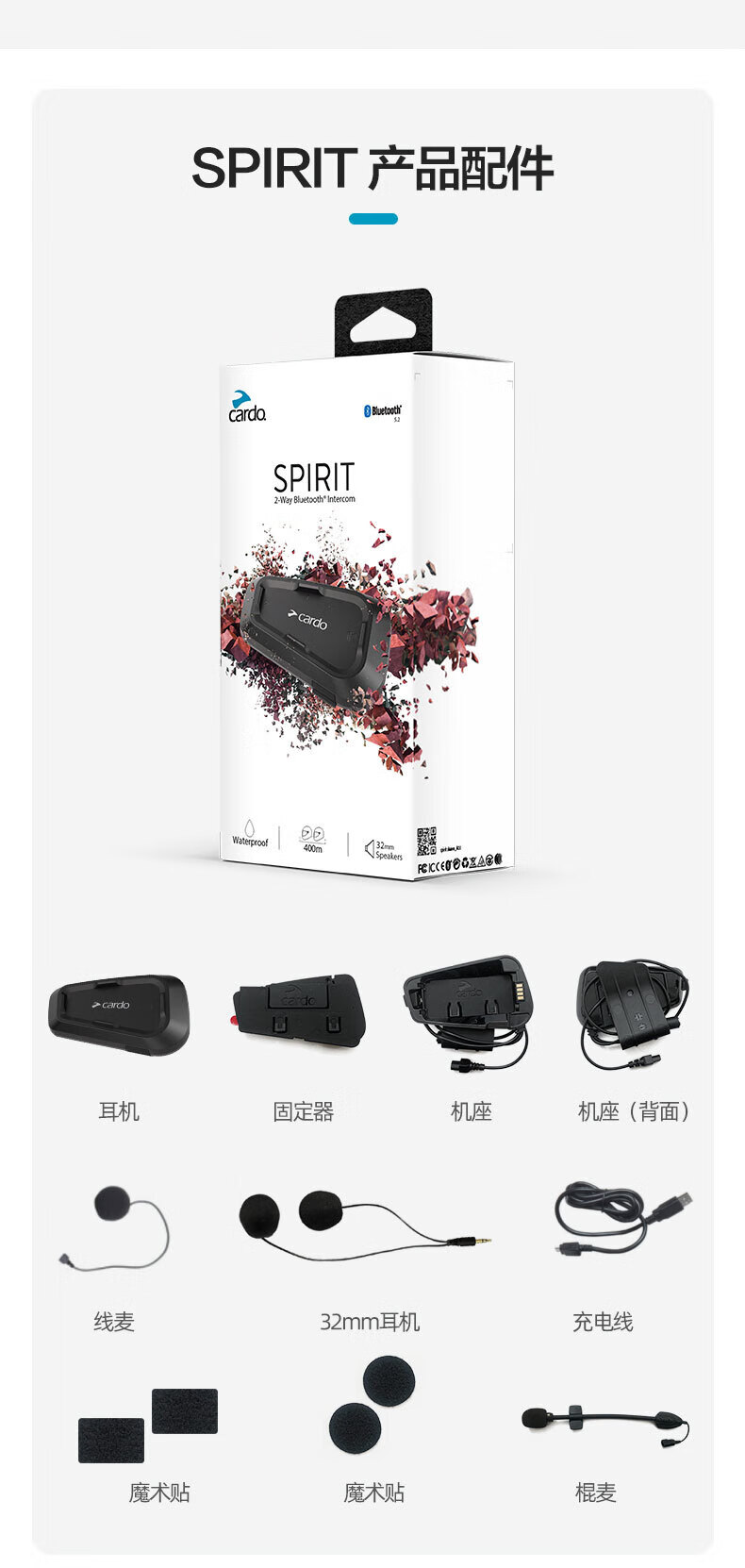 CARDO摩托车头盔蓝牙耳机降噪防水全盔半盔 SPIRITSINGLE原装原盒