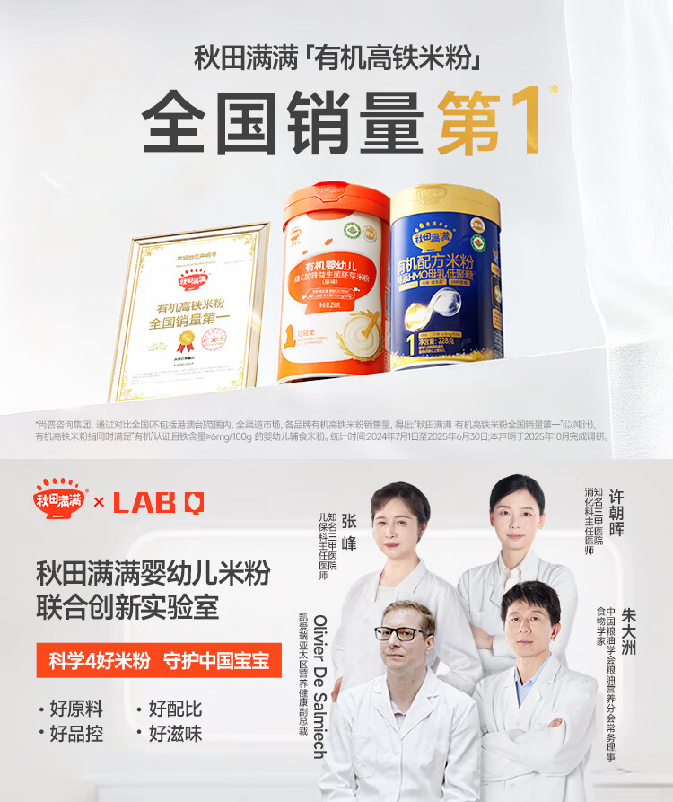 秋田满满有机婴幼儿高铁营养米粉(牛肉番茄)258g加锌米糊宝宝辅食 10月+