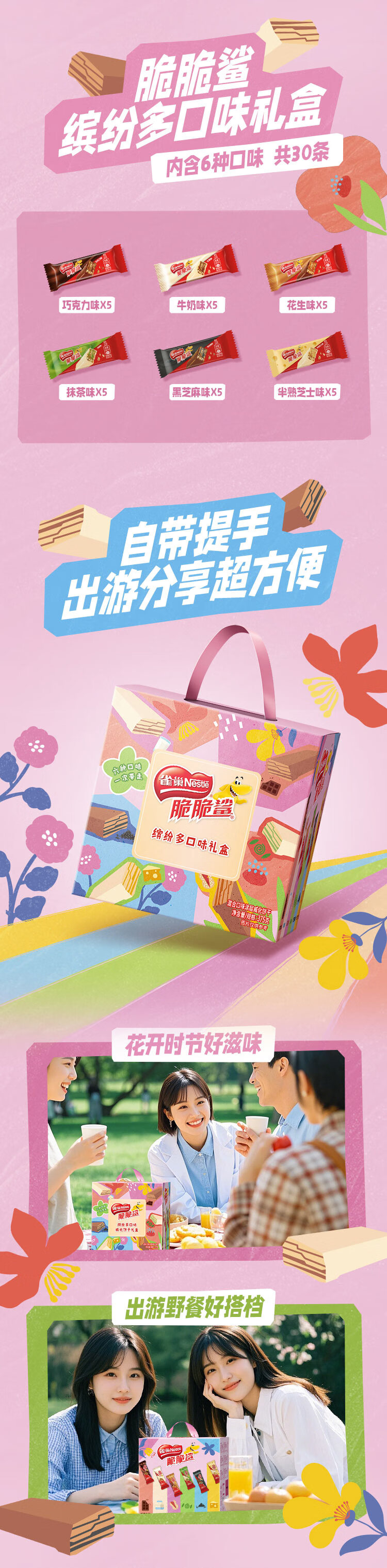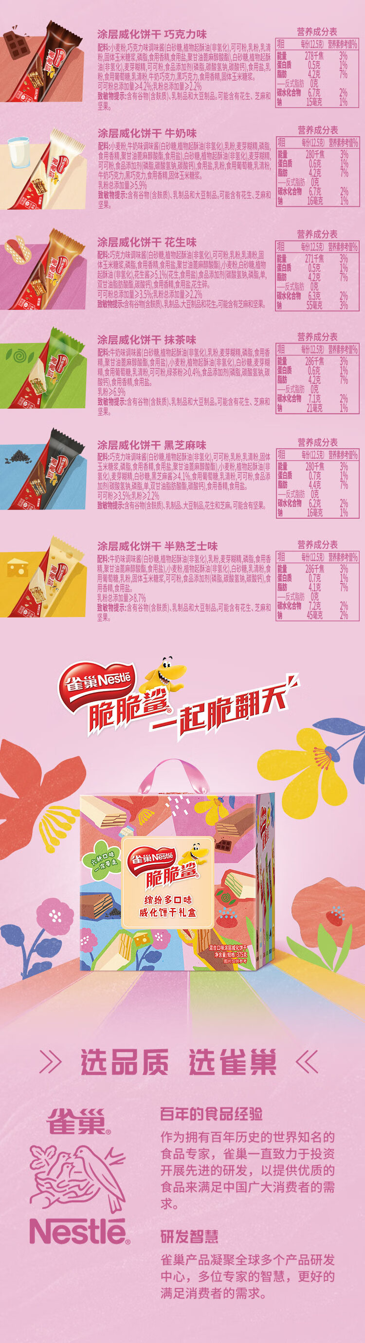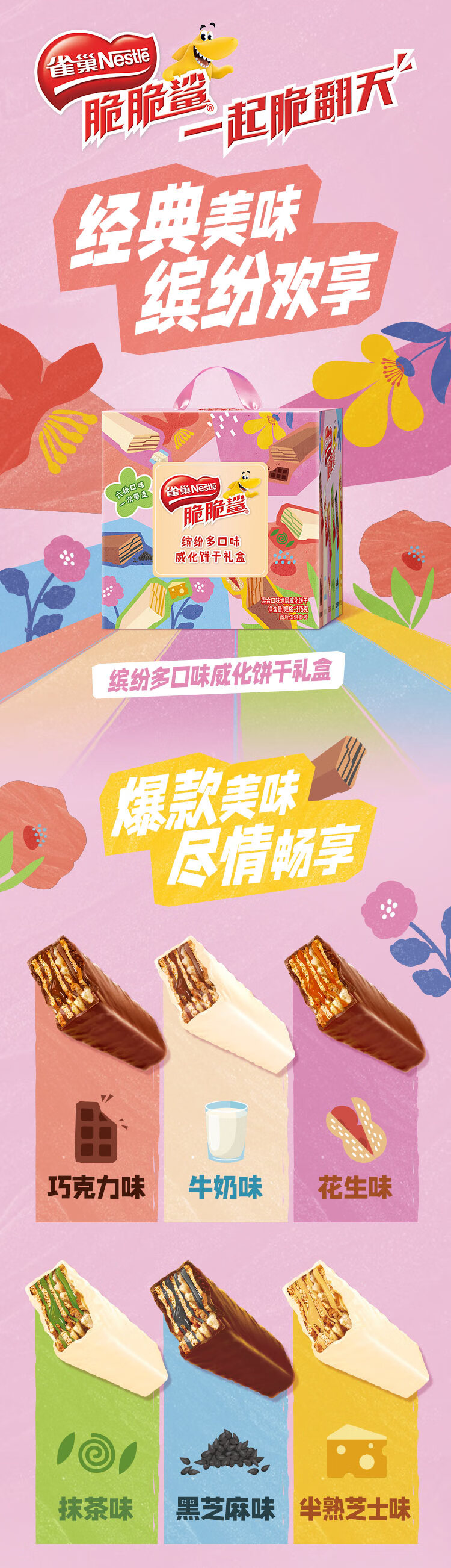 雀巢(Nestle)脆脆鲨混合多口味涂层威化饼干分享礼盒375g送礼礼品团购新年礼物