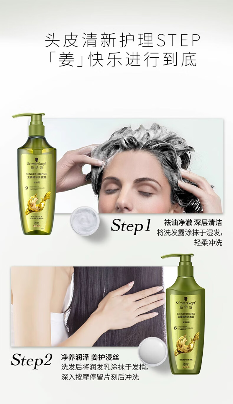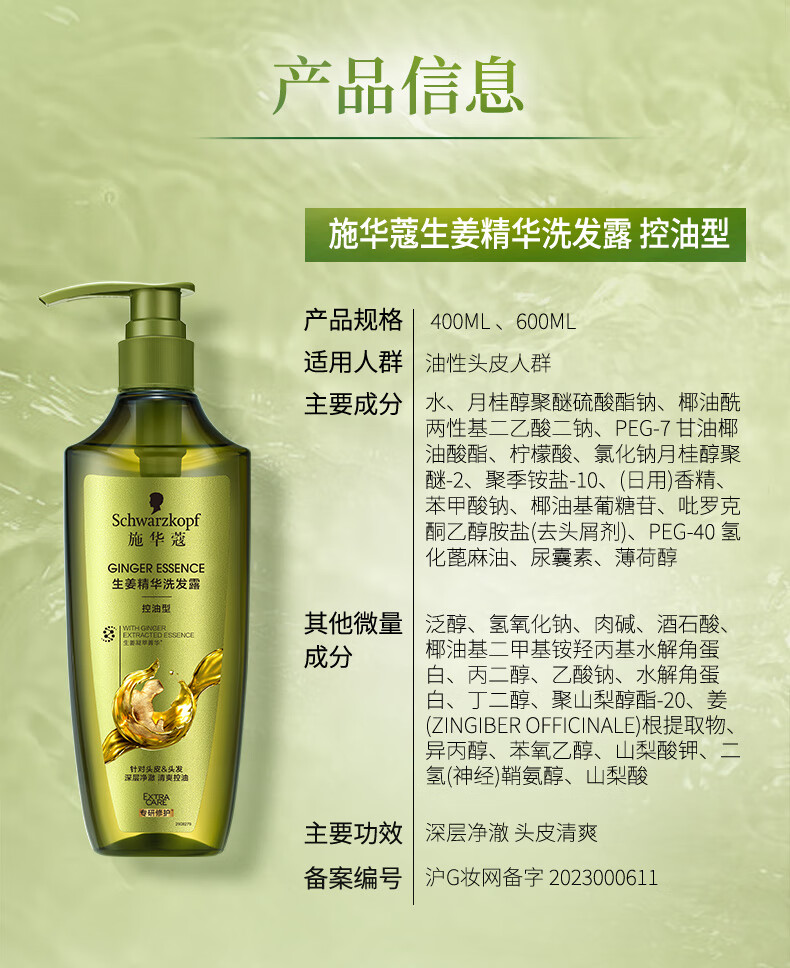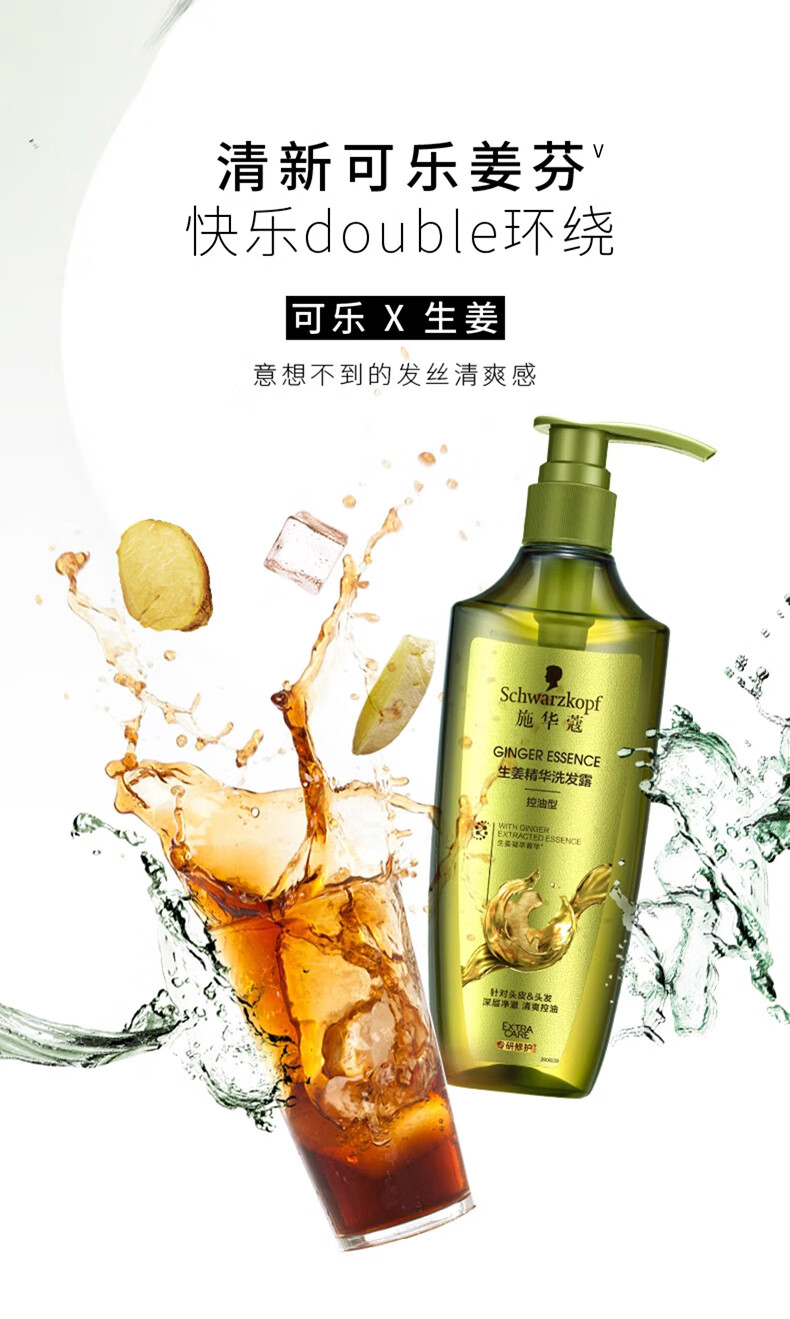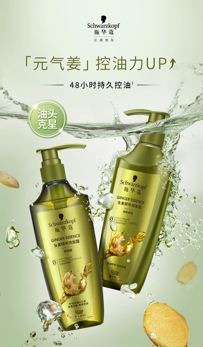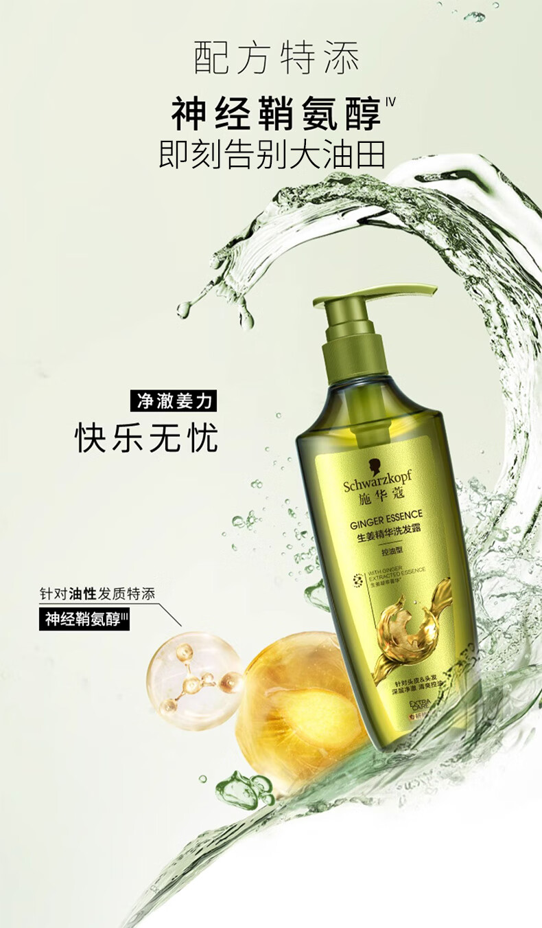 施华蔻(Schwarzkopf)生姜精华洗发露400ml 净爽控油蓬松柔顺洗发水 无硅油洗头膏