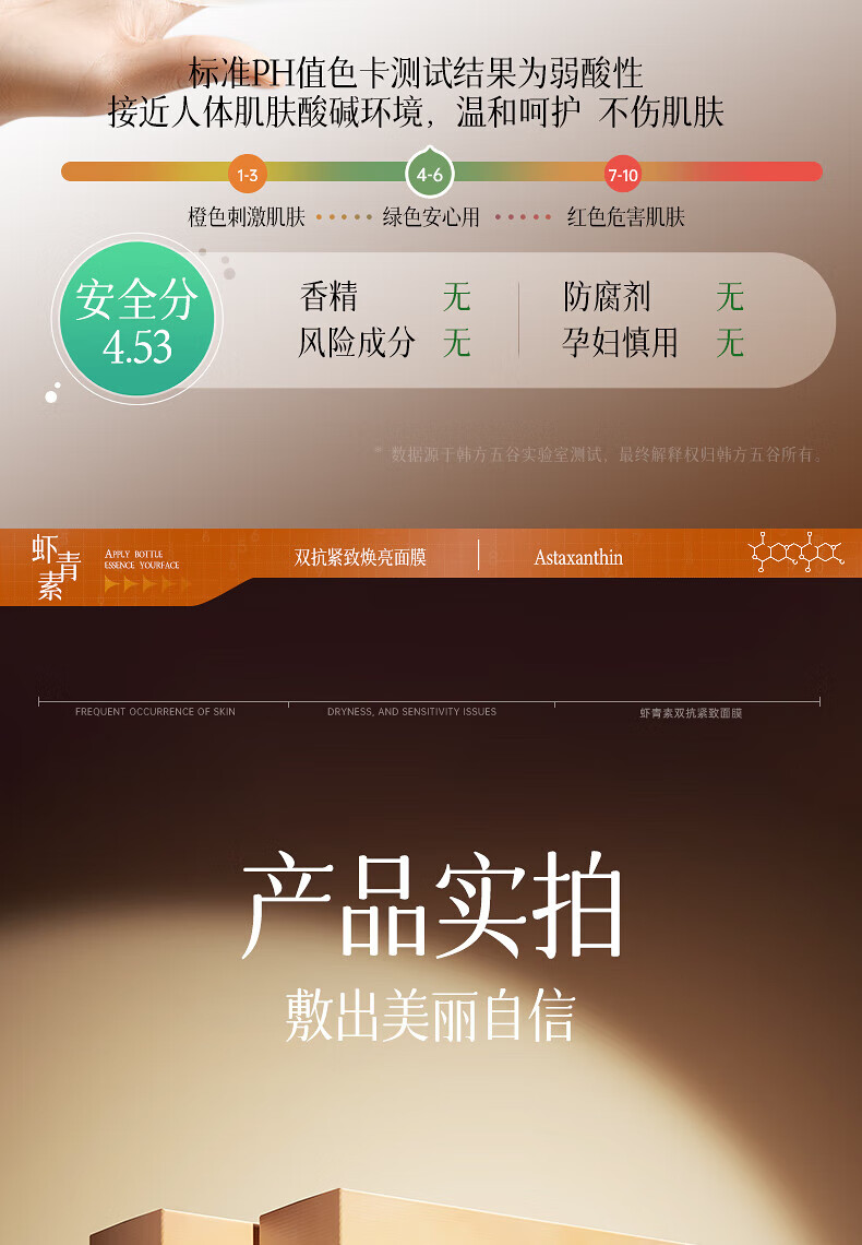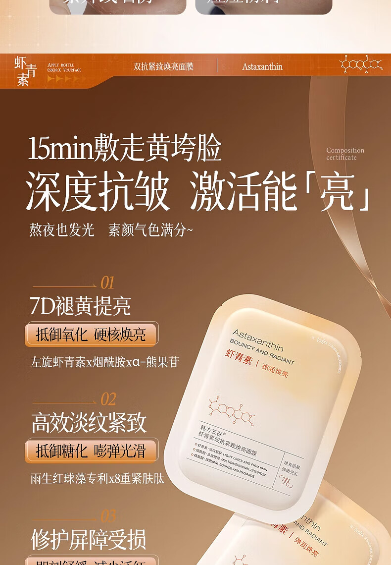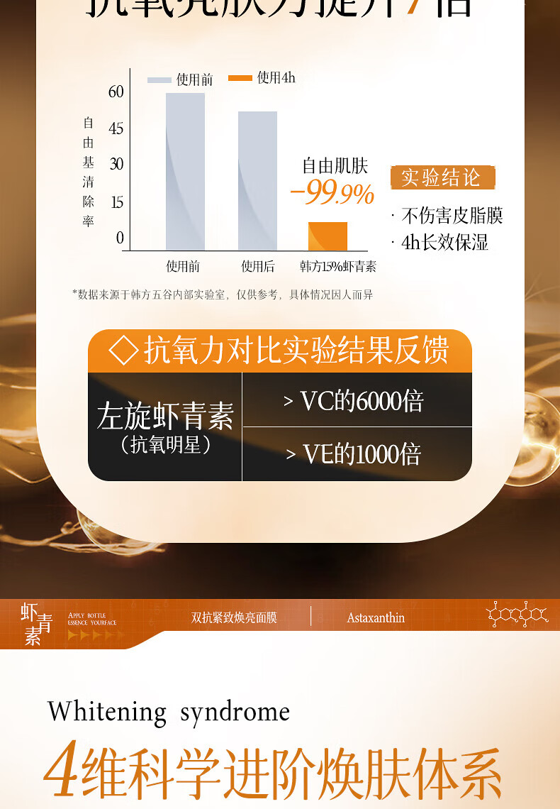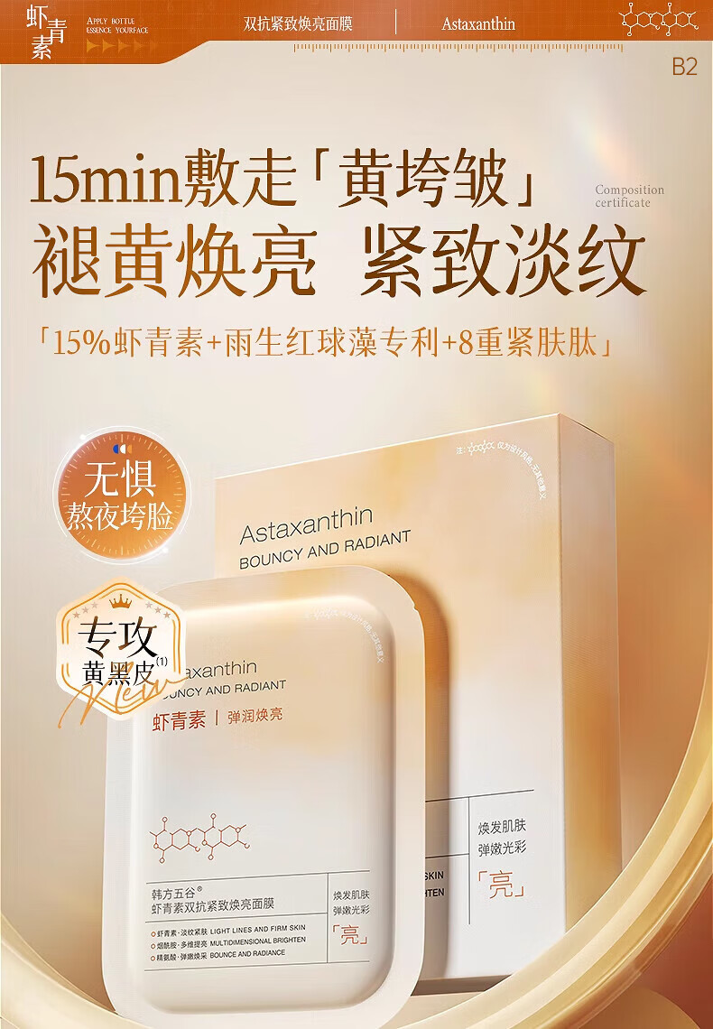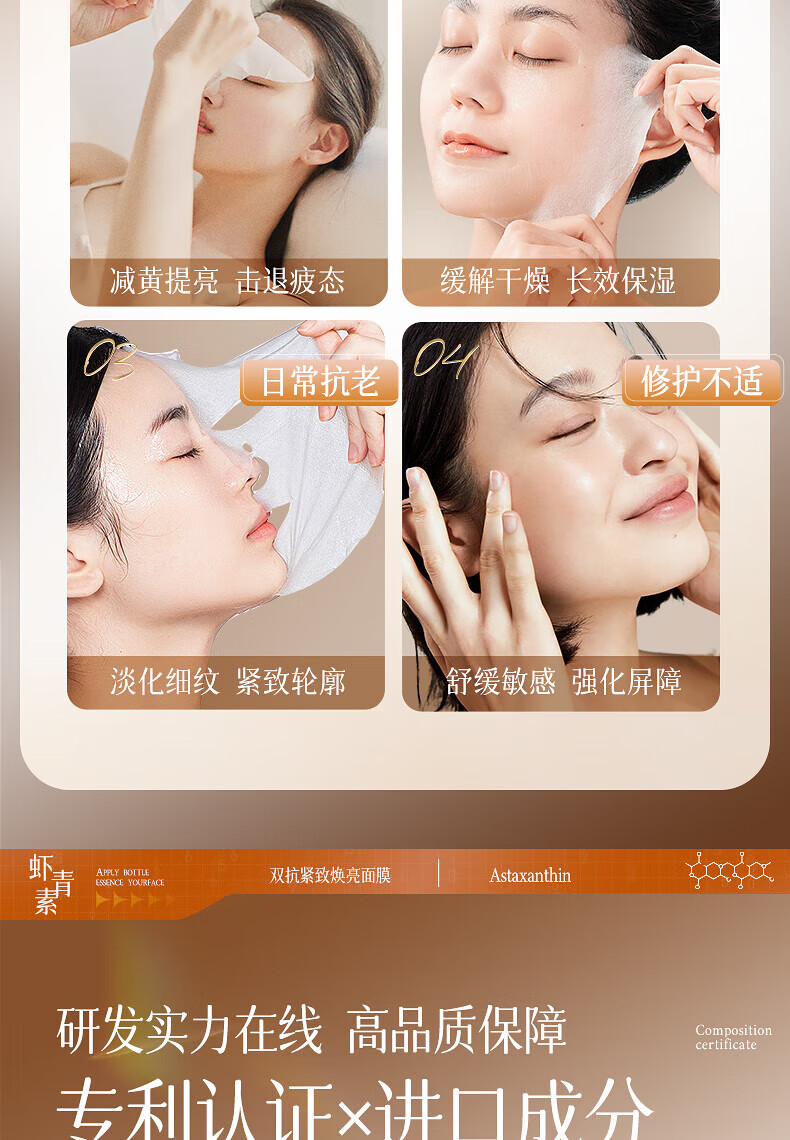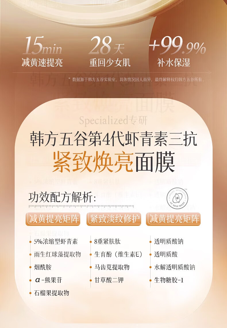 韩方五谷虾青素面膜补水保湿淡斑抗皱紧致美去黄气暗沉提亮肤色白收缩毛孔