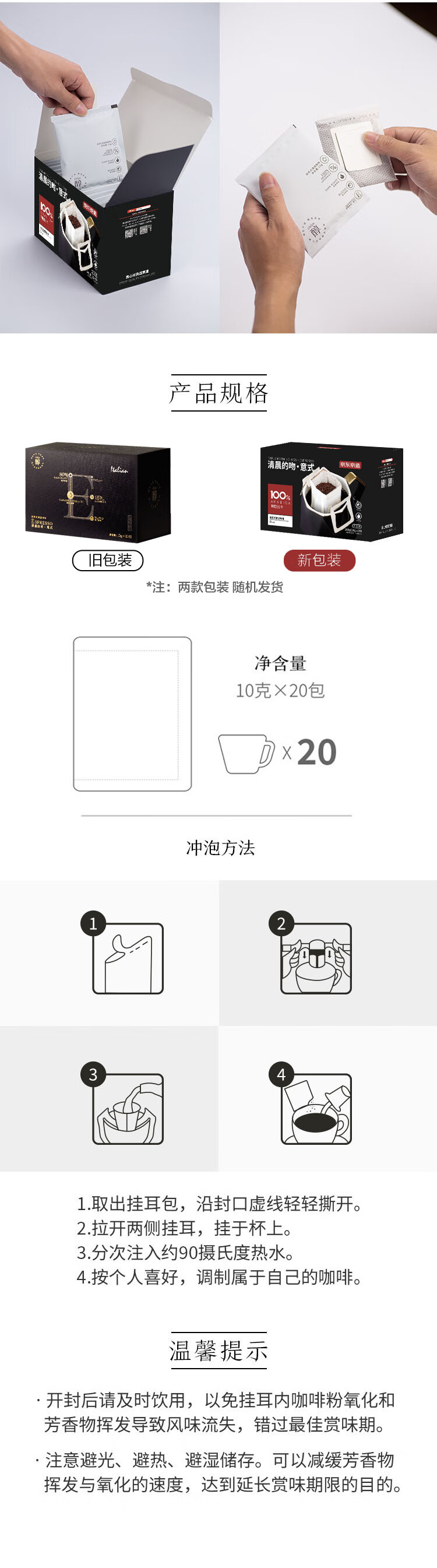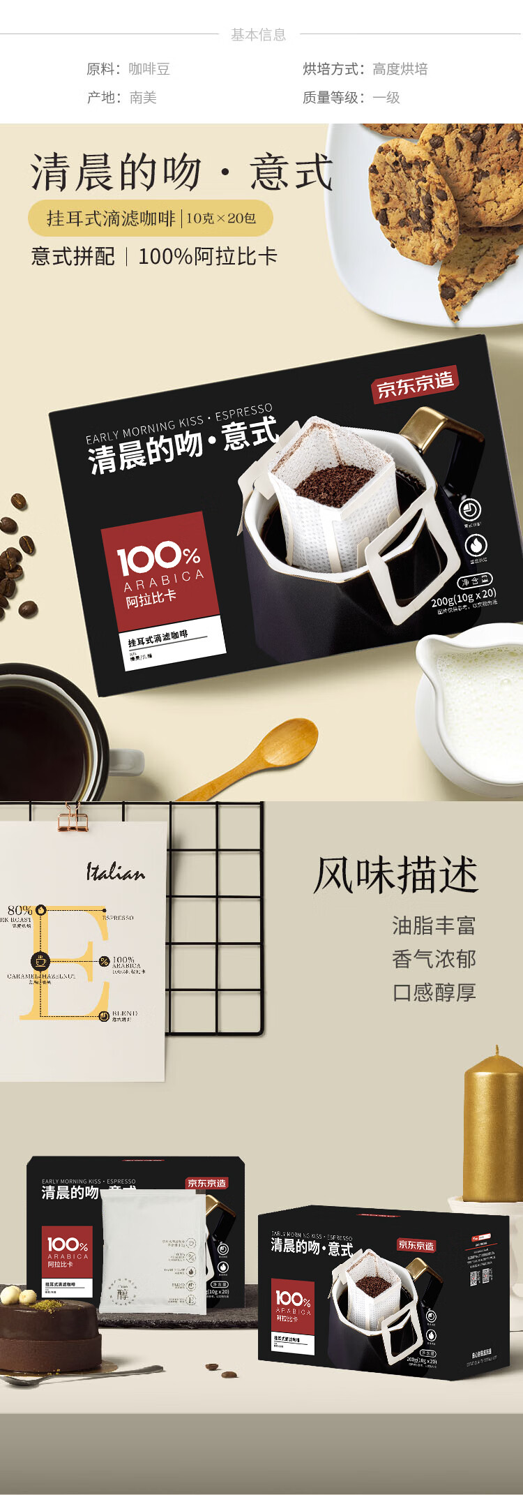 京东京造意式挂耳咖啡10g*20包 100%阿拉比卡高度烘焙黑咖啡自己喝送人