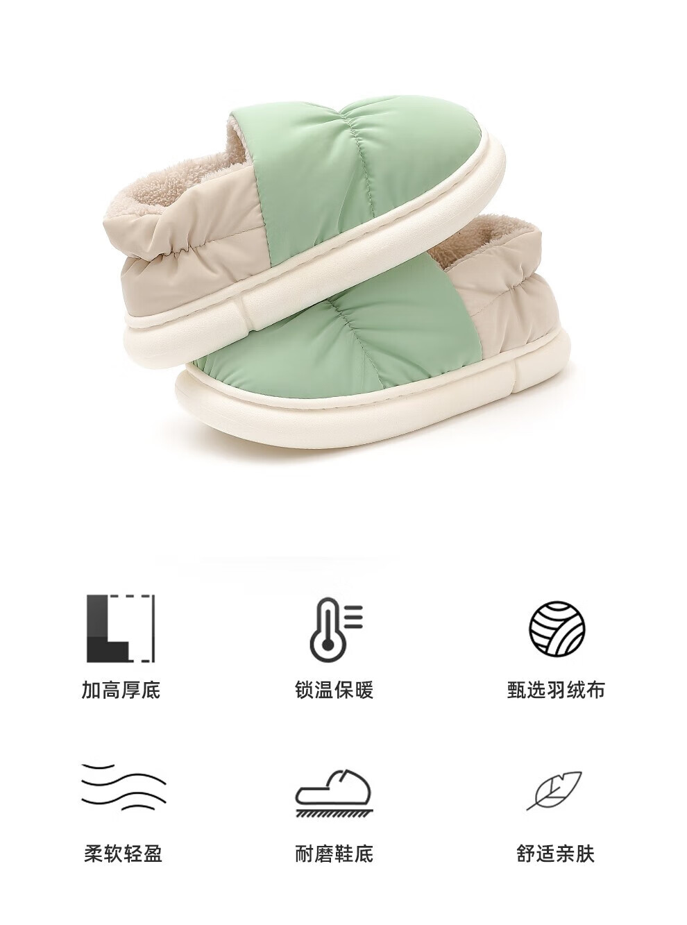 FZT包跟保暖棉拖鞋女士2025秋冬季新款居家可外穿防滑简约时尚棉鞋男 黑绿色 36-37 适合35-36